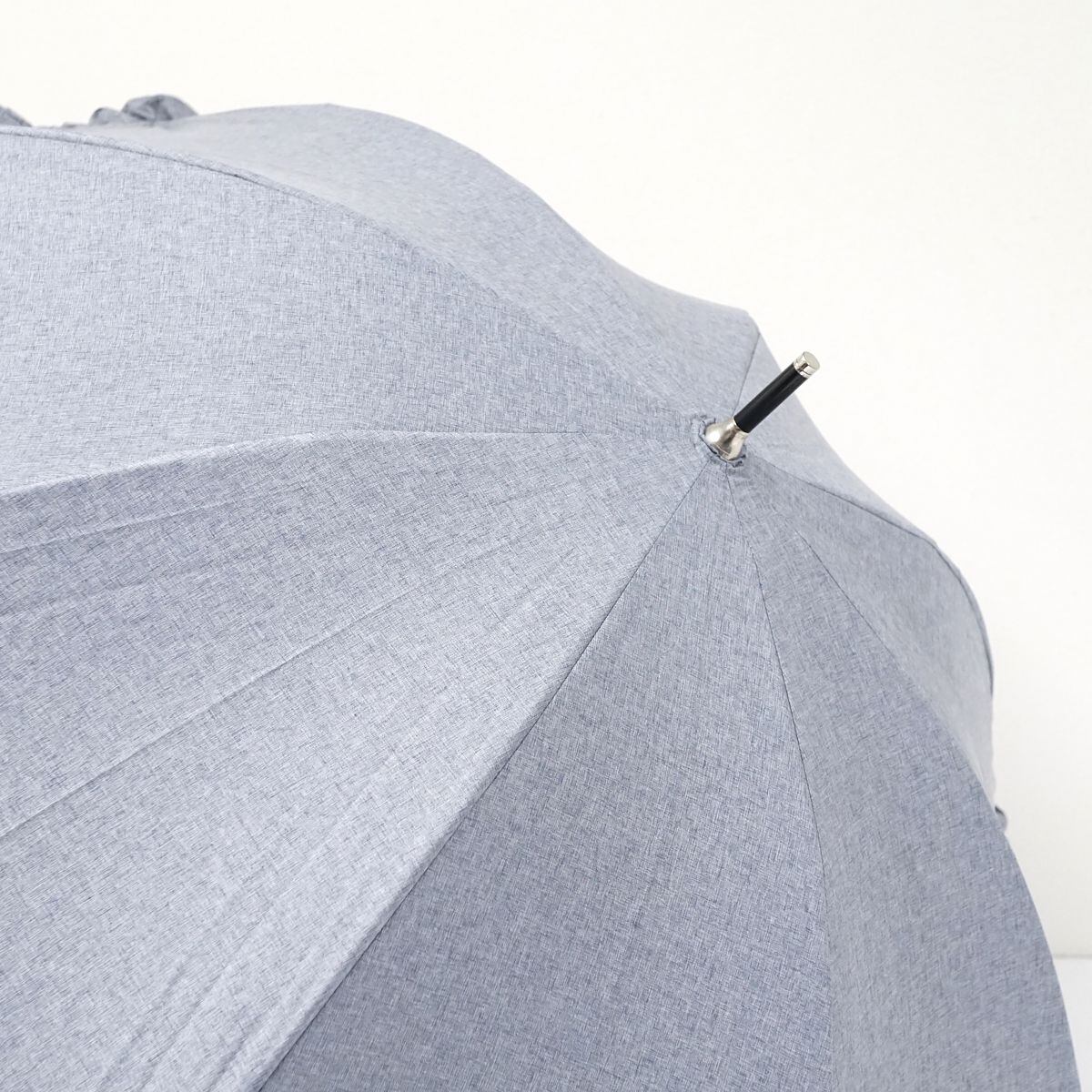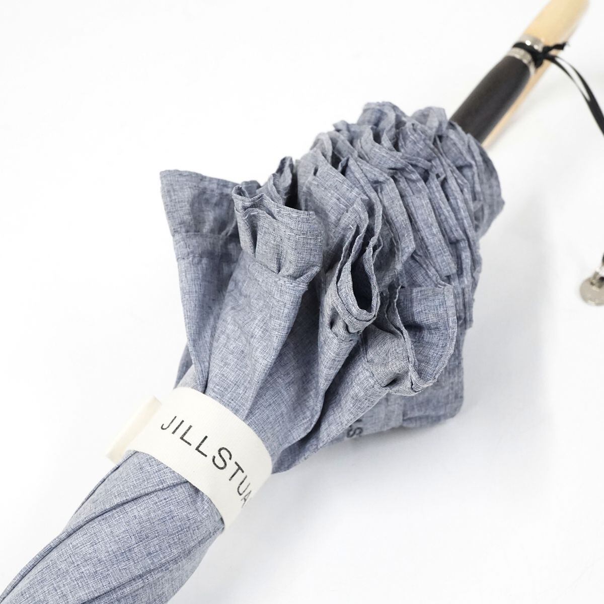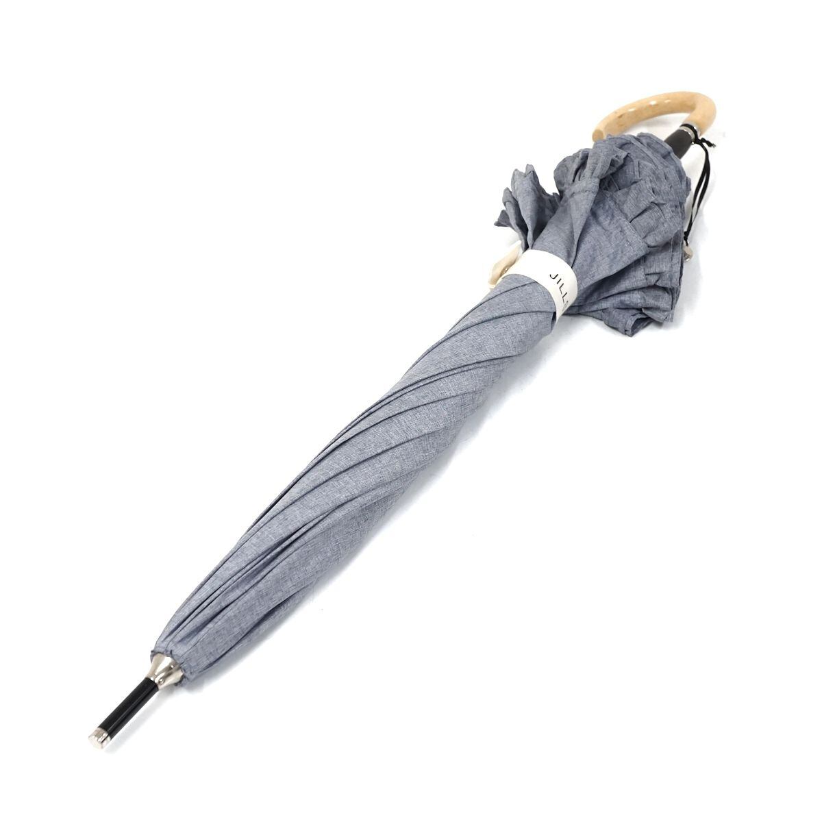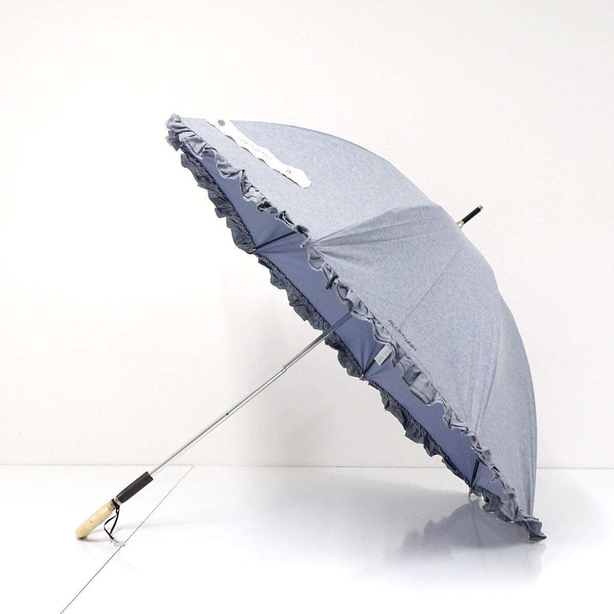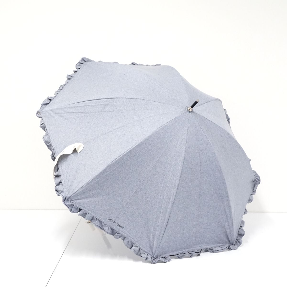 晴雨兼用日傘 JILL STUART ジルスチュアート USED美品 2段フリル ロゴ刺繍 シャンブレー UV グラス骨 軽量 47cm S1021
