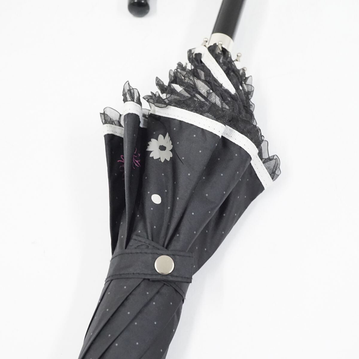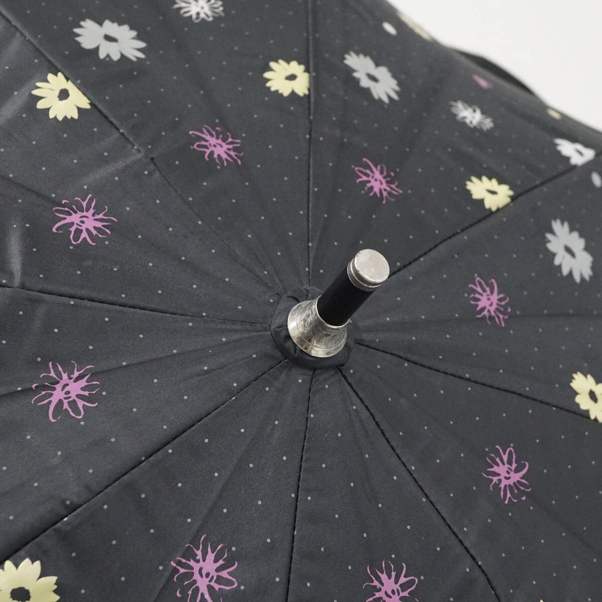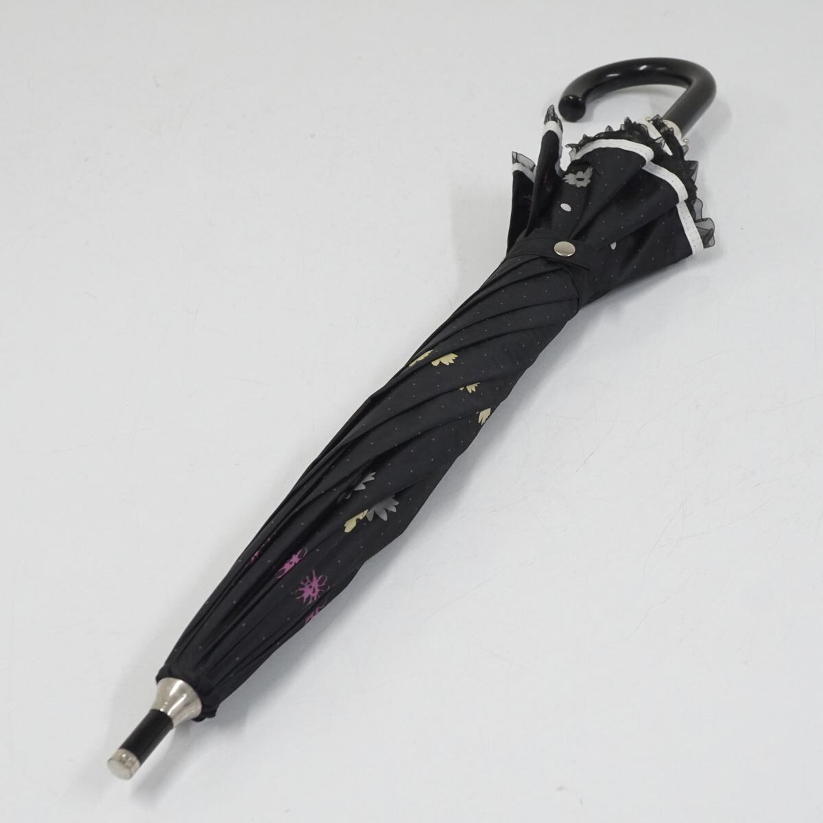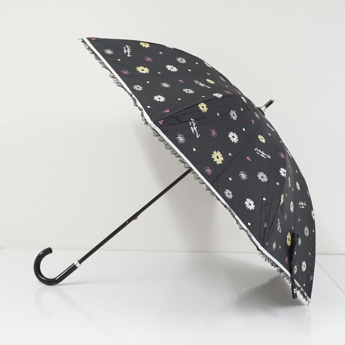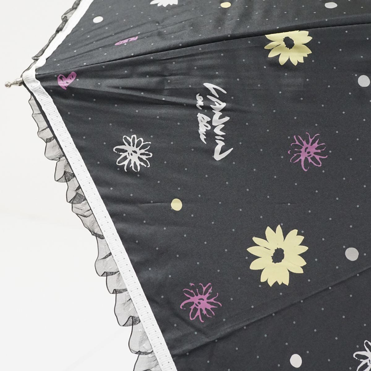 晴雨兼用日傘 LANVIN en Bleu ランバンオンブルー USED美品 ブラック フラワープリント ブランド UV 47cm A0996