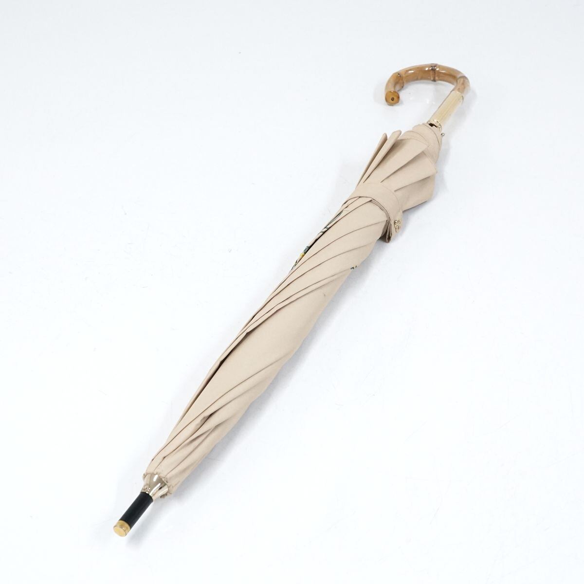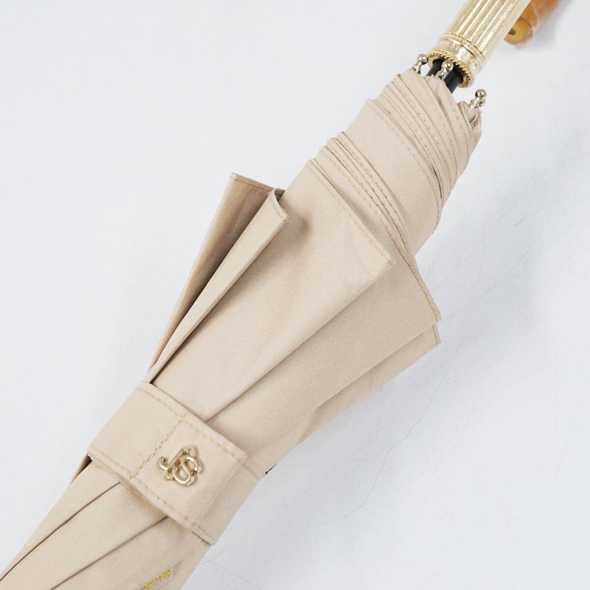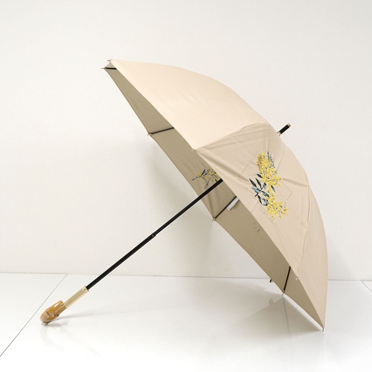 晴雨兼用日傘 JILL STUART ジルスチュアート USED品 ミモザ 花柄刺繍 箔プリント ベージュ UV グラス骨 50cm A1023