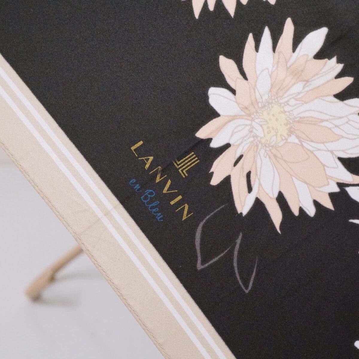 耐風傘 LANVIN en Bleu ランバンオンブルー USED美品 マーガレット ブラックxベージュ ラインボーダー ジャンプ 風に強い 60cm A2765