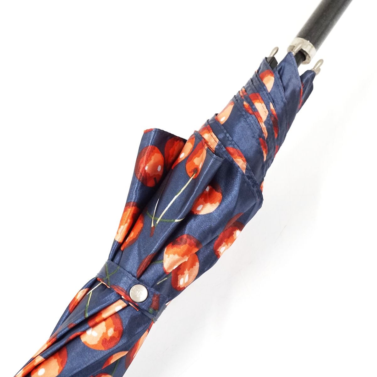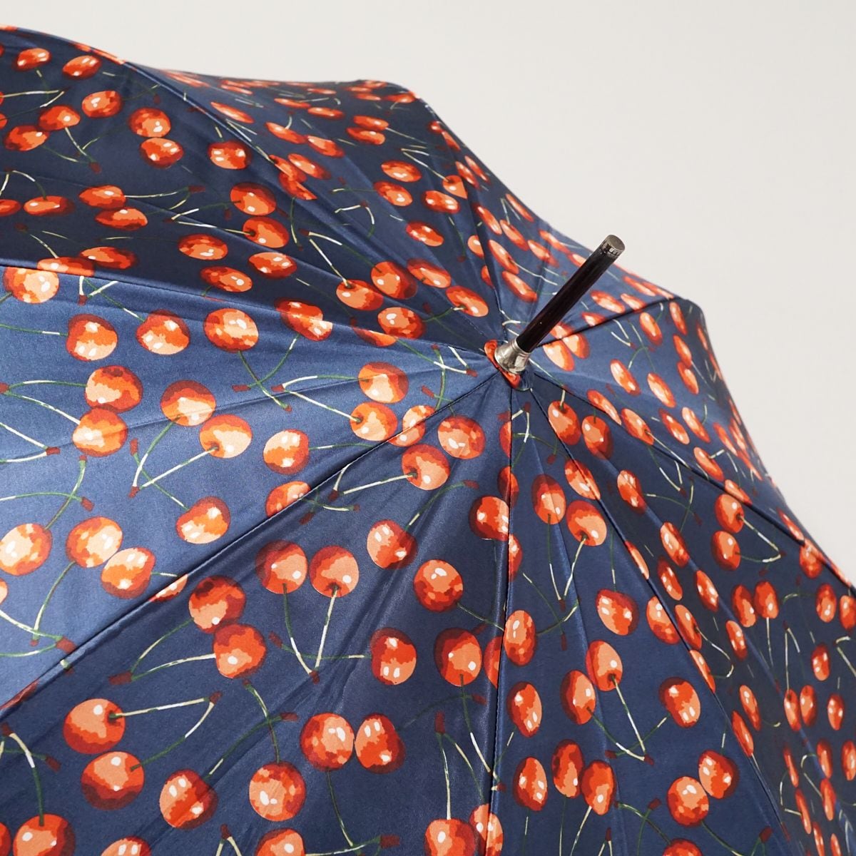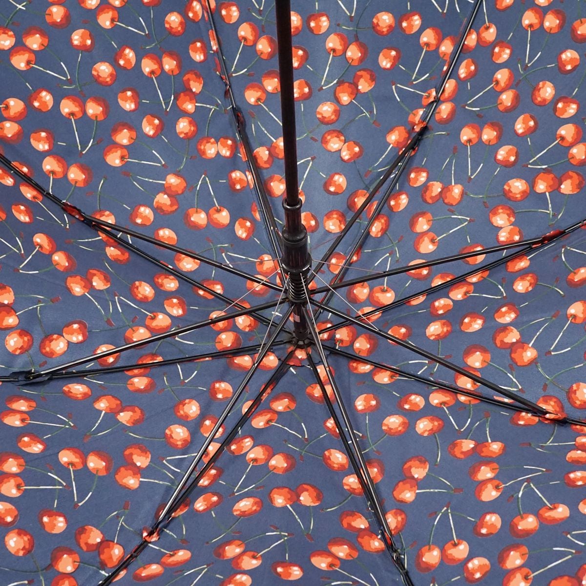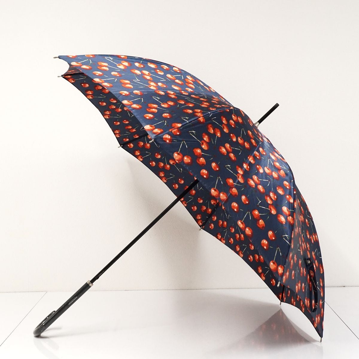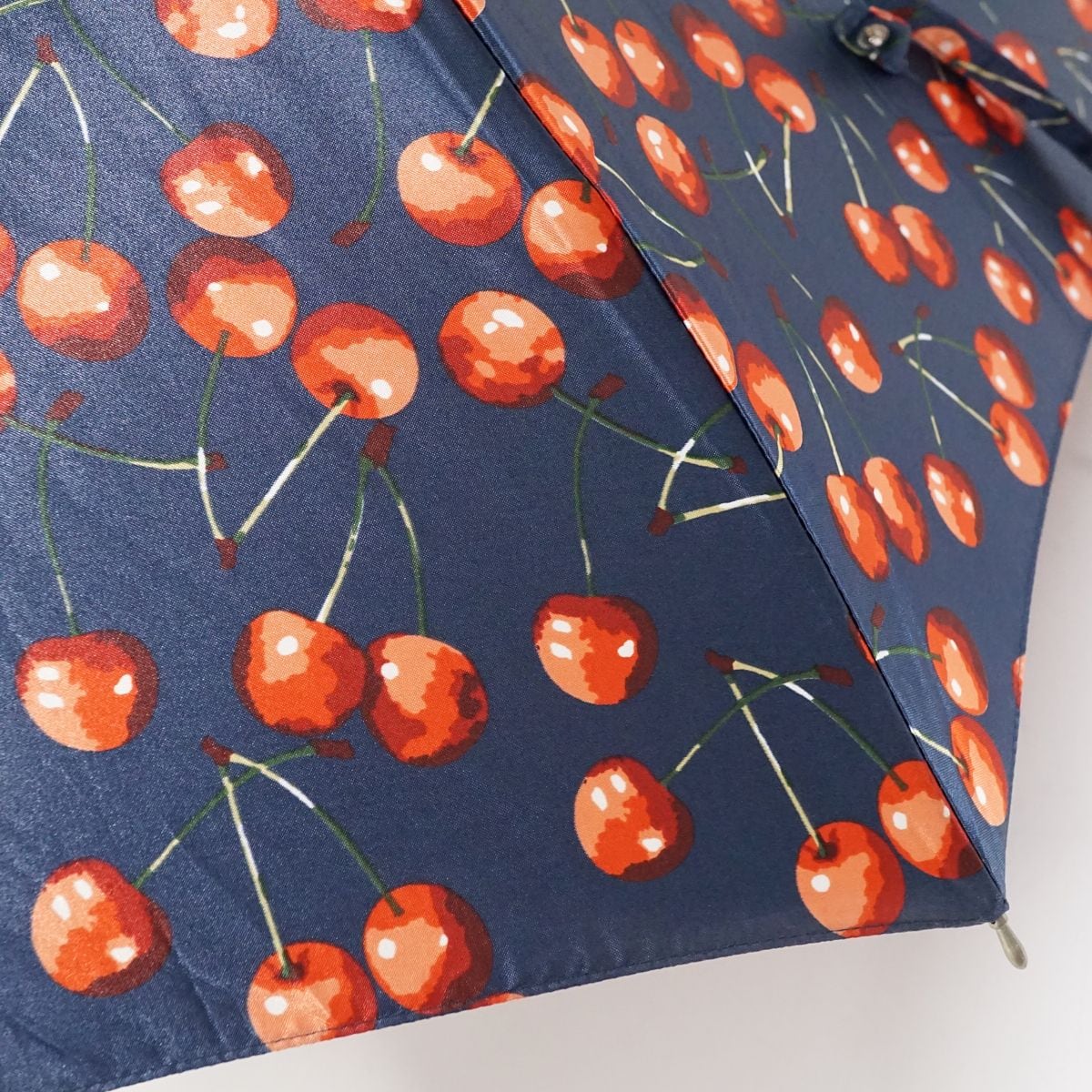 ネイビーの生地にさくらんぼ柄を描いたキュートなアンブレラです。