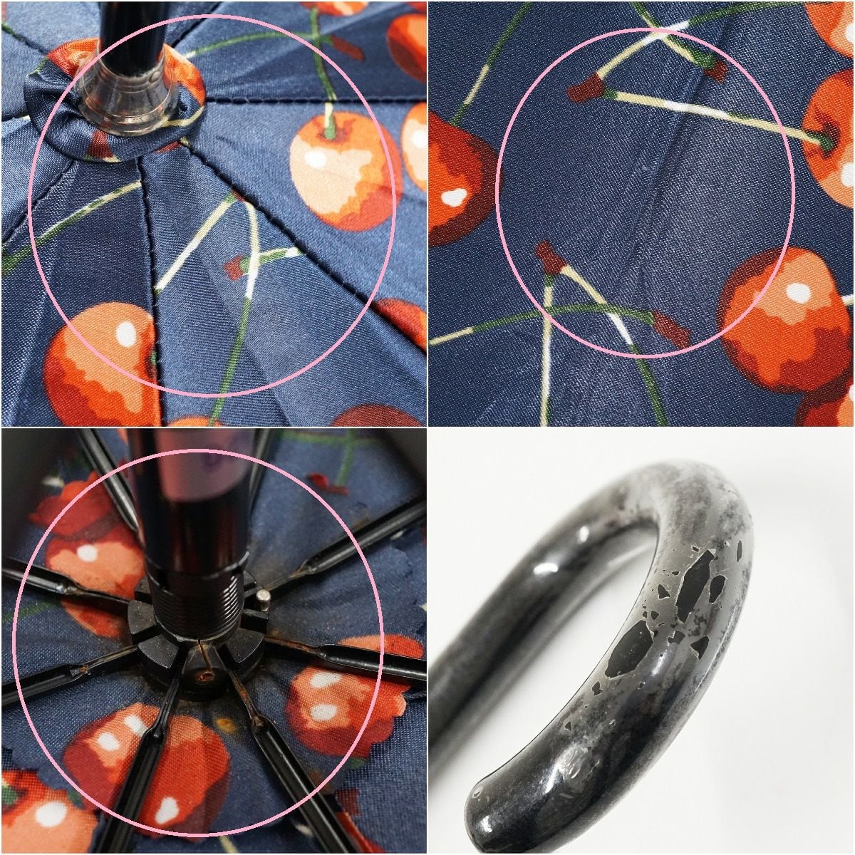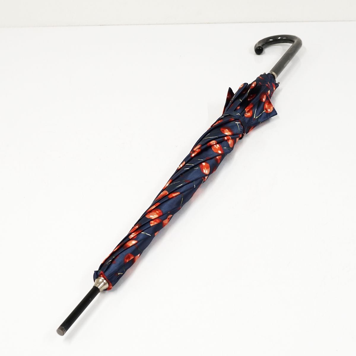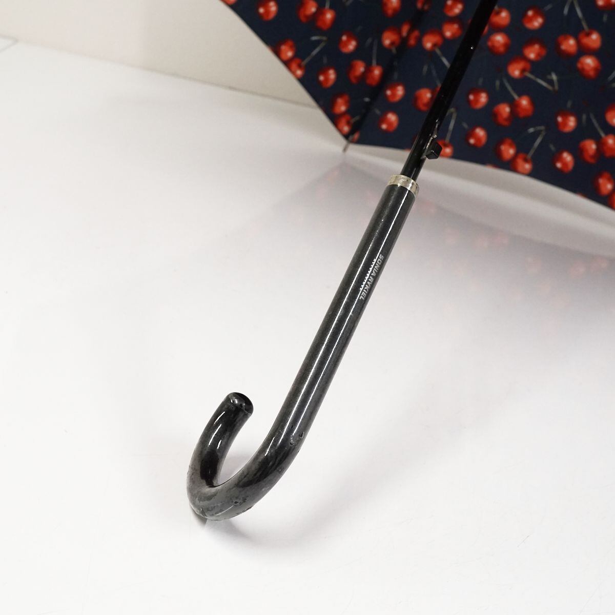 傘 SONIA RYKIEL ソニアリキエル USED美品 ネイビー さくらんぼ チェリー ジャンプ かわいい 果実 60cm A1036