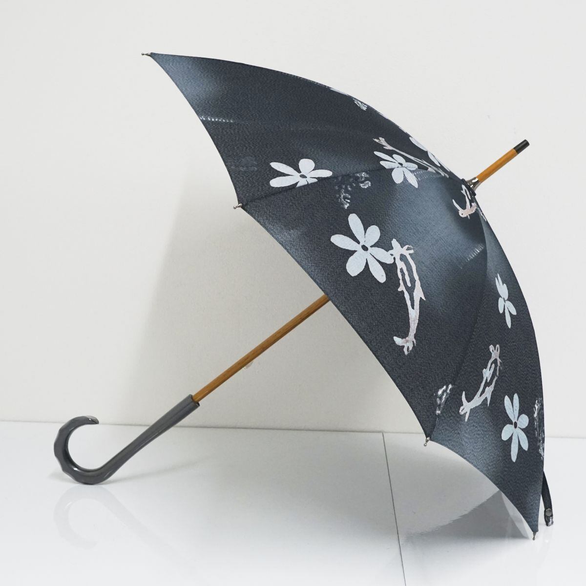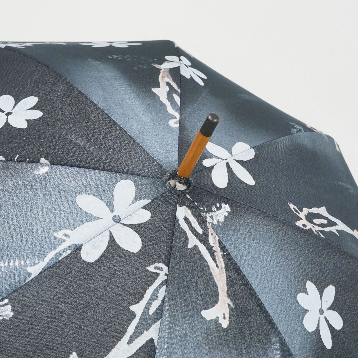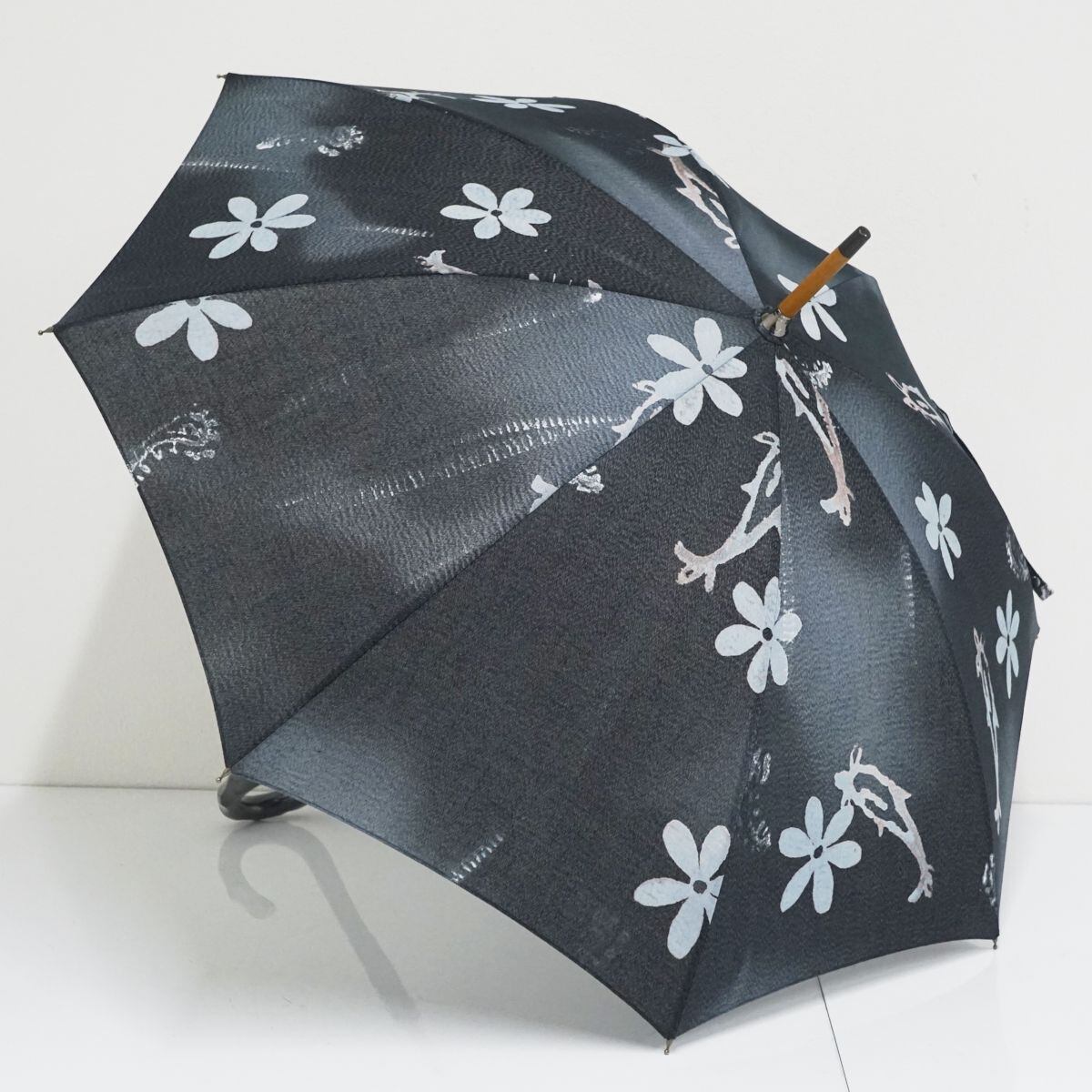 柴田(株)高級日傘 USED美品 ちりめん ネイビー 和モダン 水彩 日本製 遮光 47cm S1028