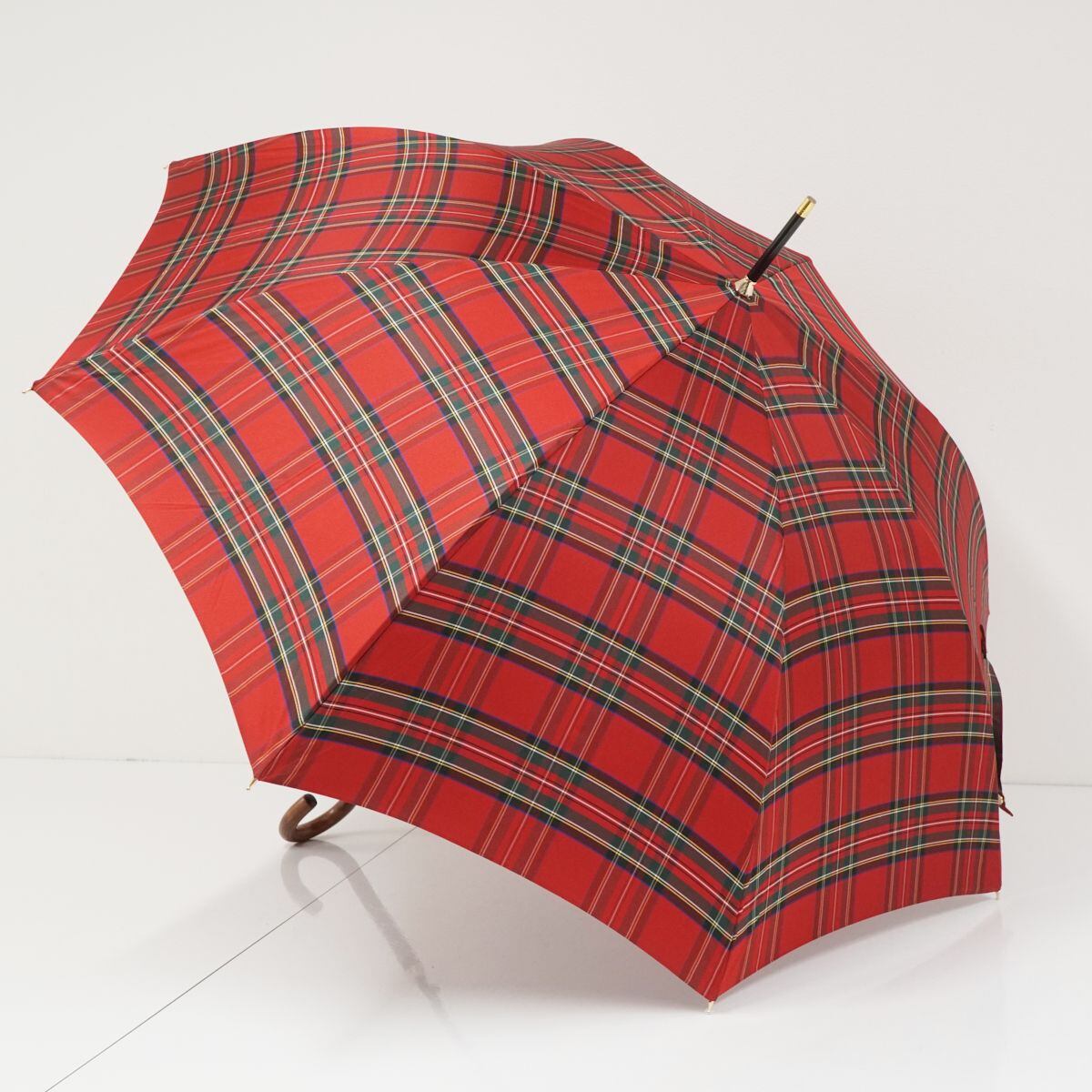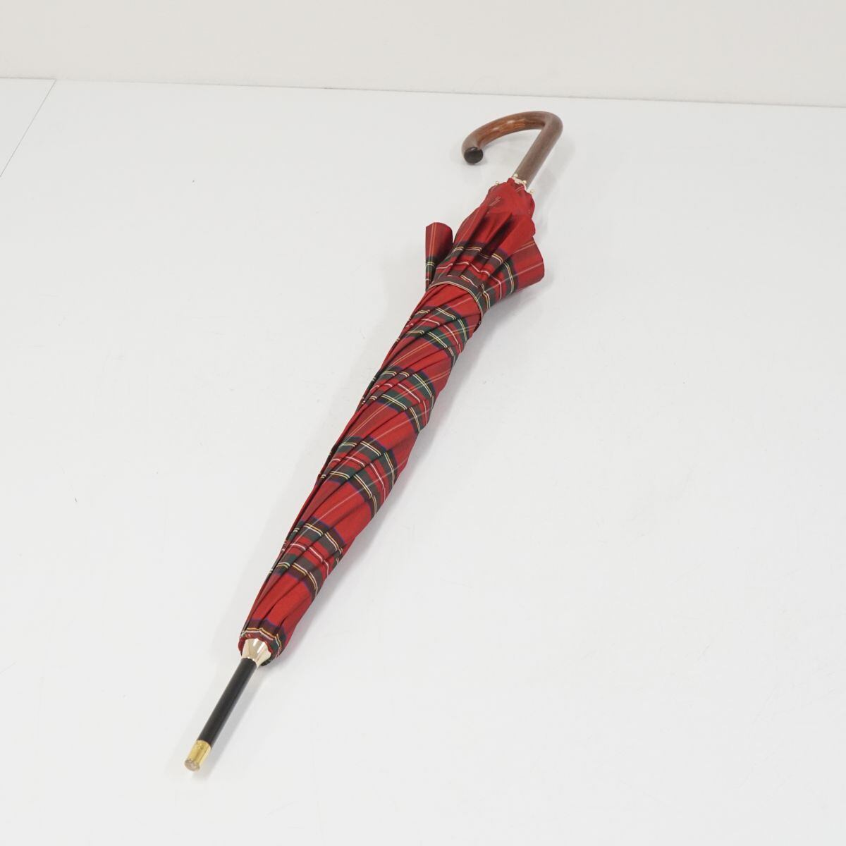 傘 Aquascutum アクアスキュータム USED美品 レッド チェック グラスファイバーフレーム ジャンプ 60cm A1042