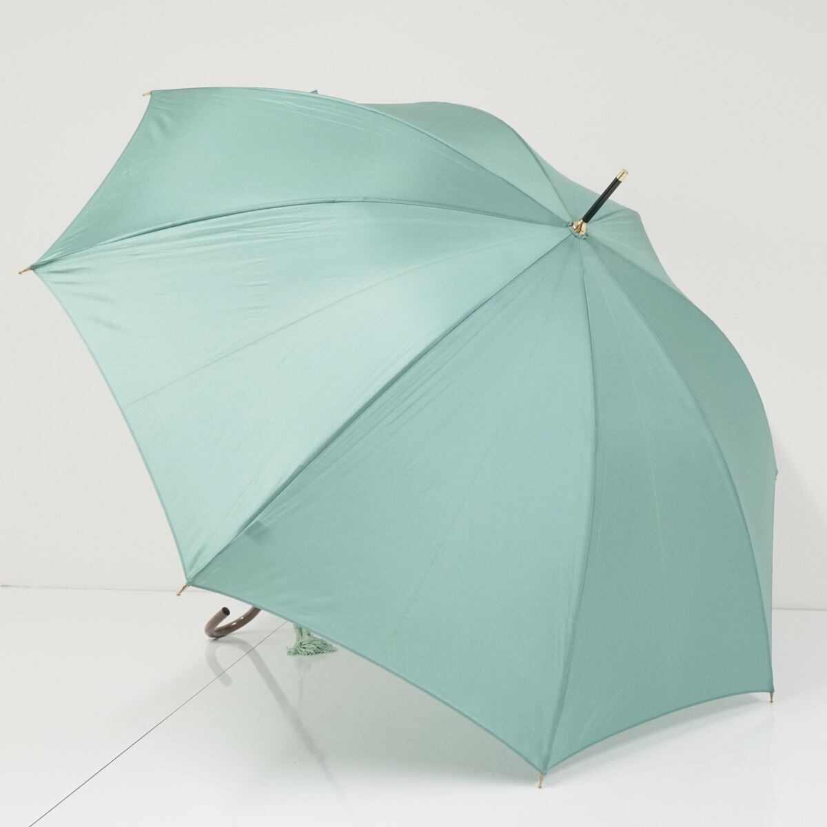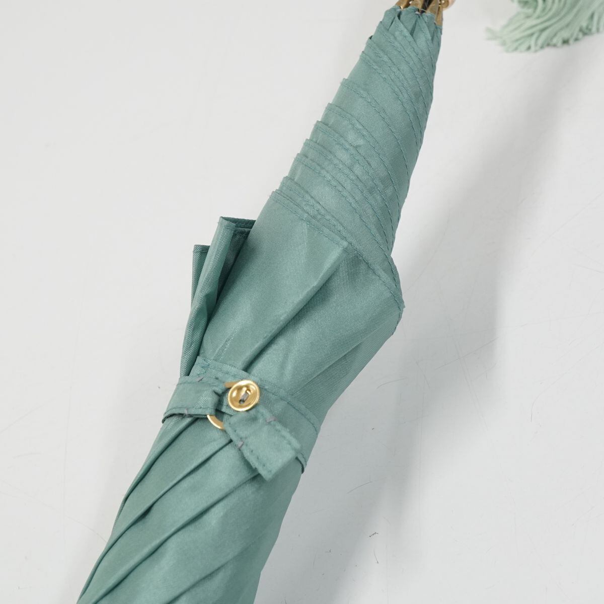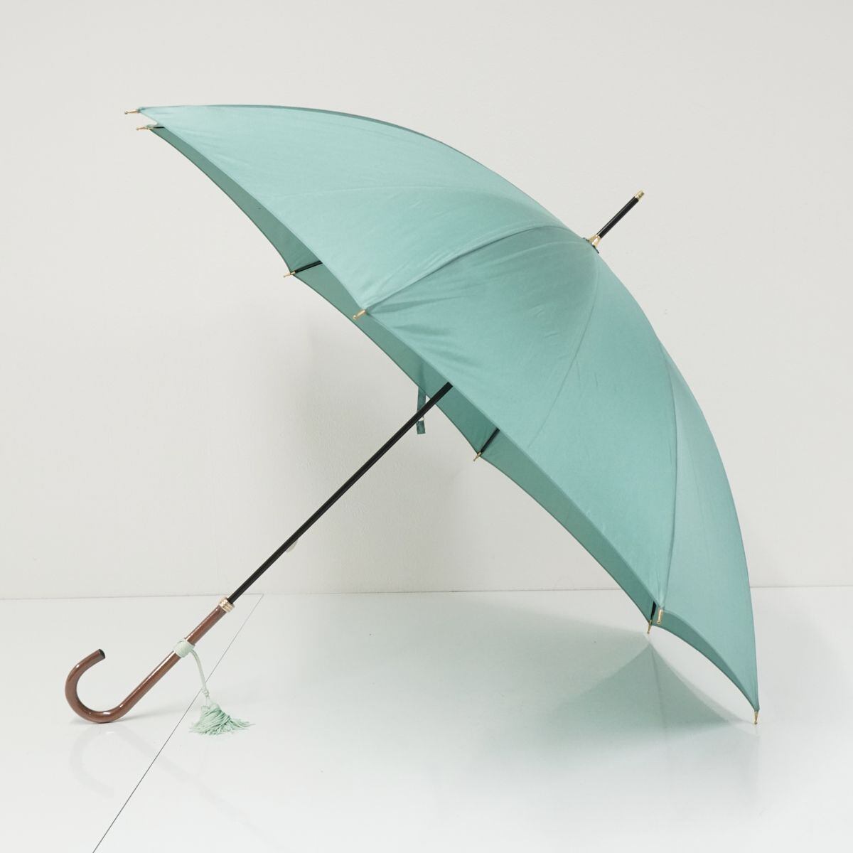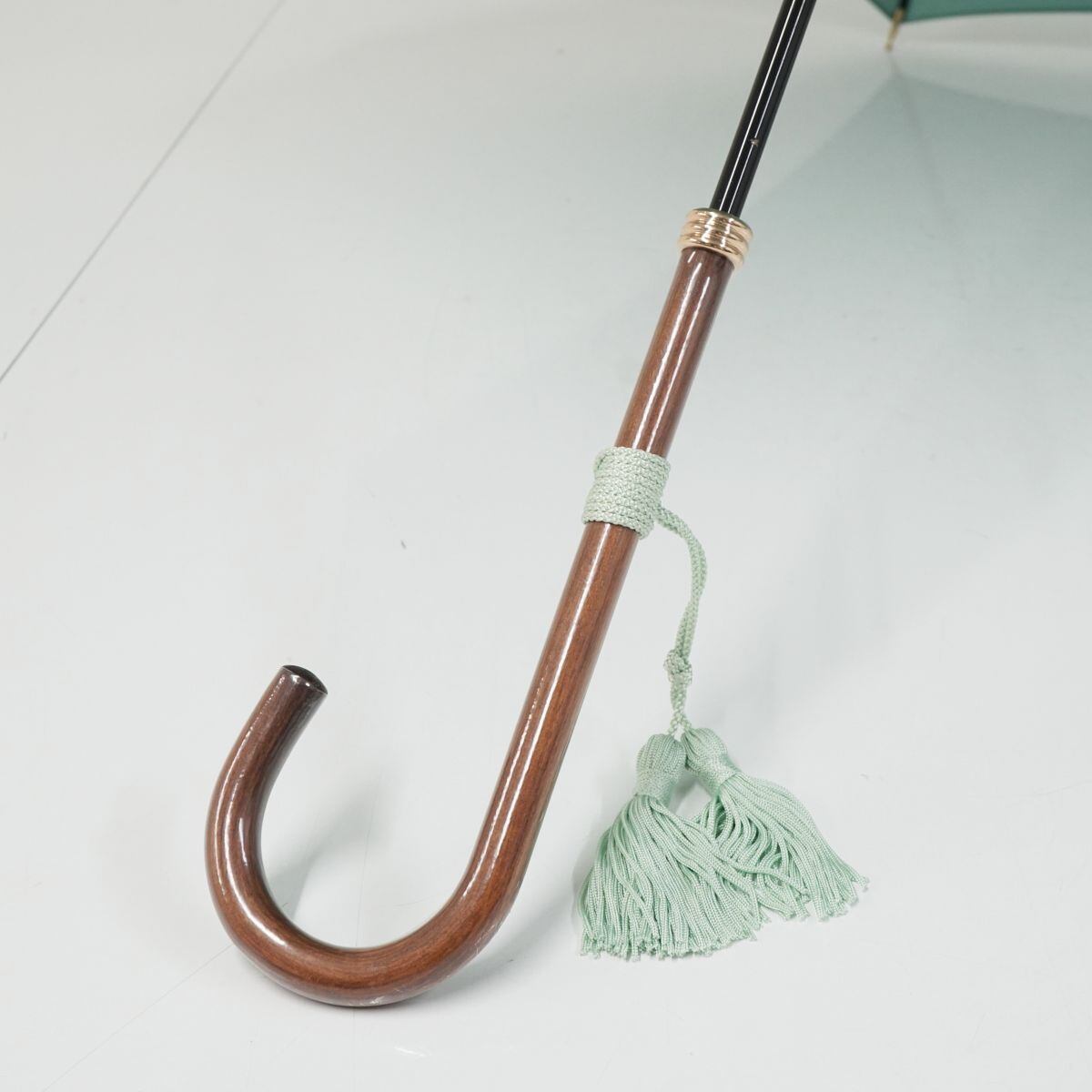 傘 WAKAO ワカオ USED美品 シンプル ペールグリーン 無地 高級 日本製 富士絹 55cm A1043