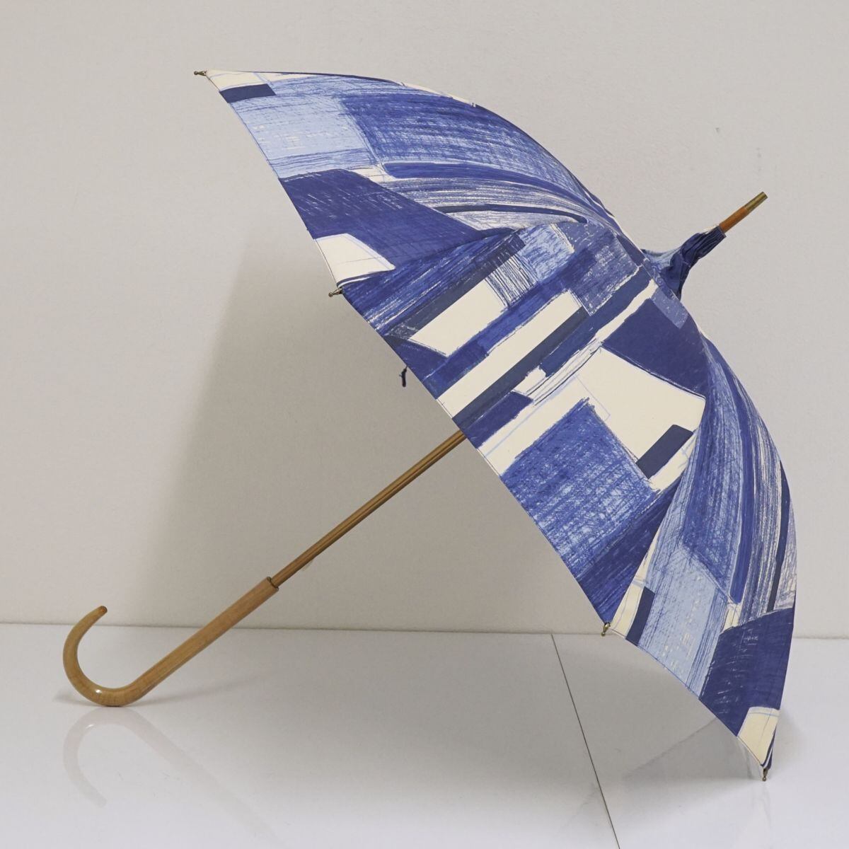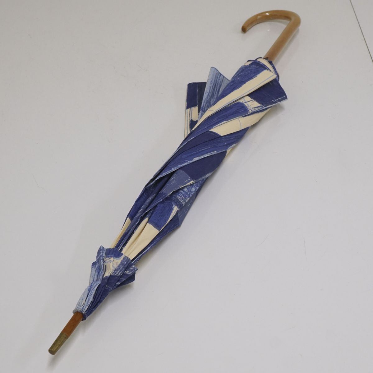 estaa X KESHIKI designby YUMI YOSHIMOTO 日傘 USED美品 ブルー 木製手元 個性的 おしゃれ 47cm S1054
