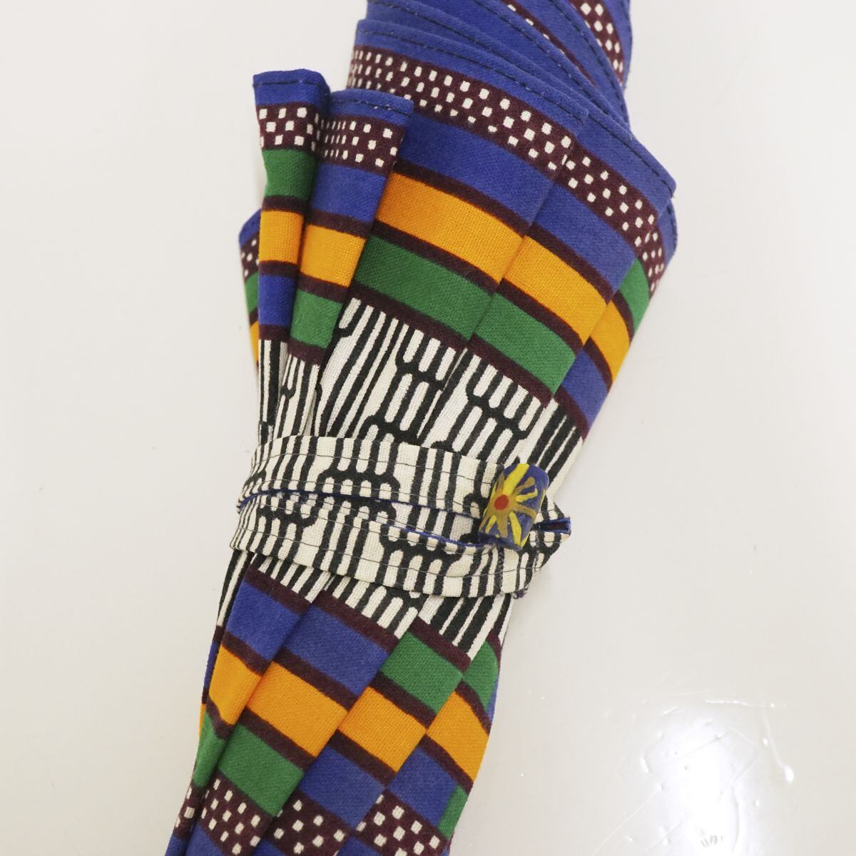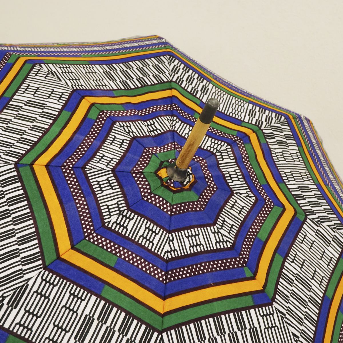 鮮やかなカラーと個性あふれる柄を描いたアフリカンバティックのパラソルです。