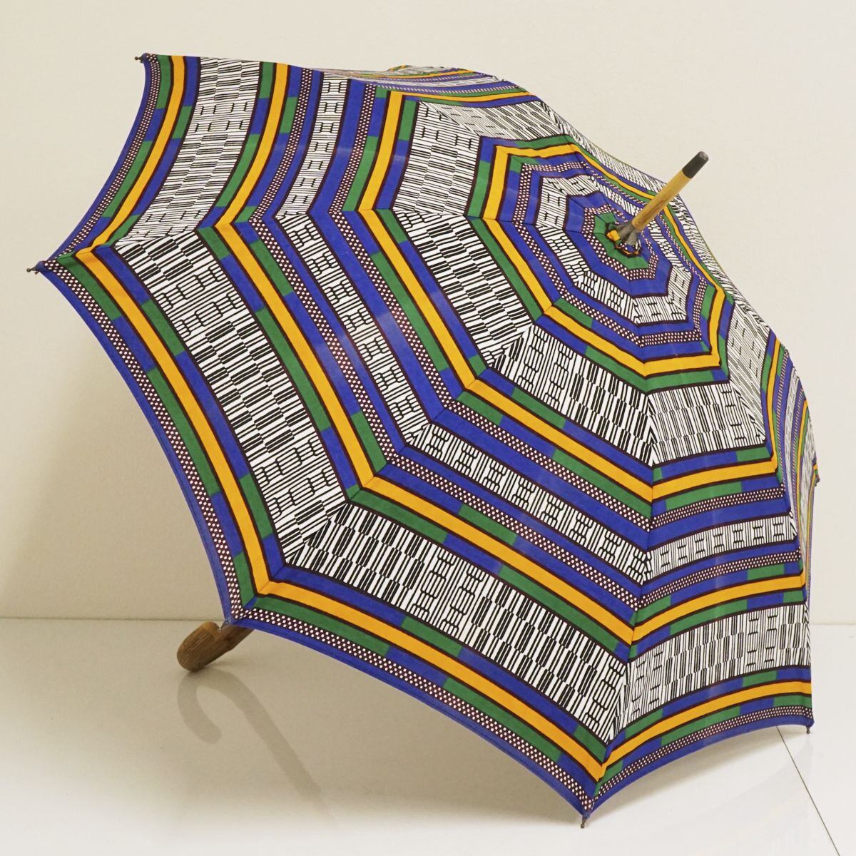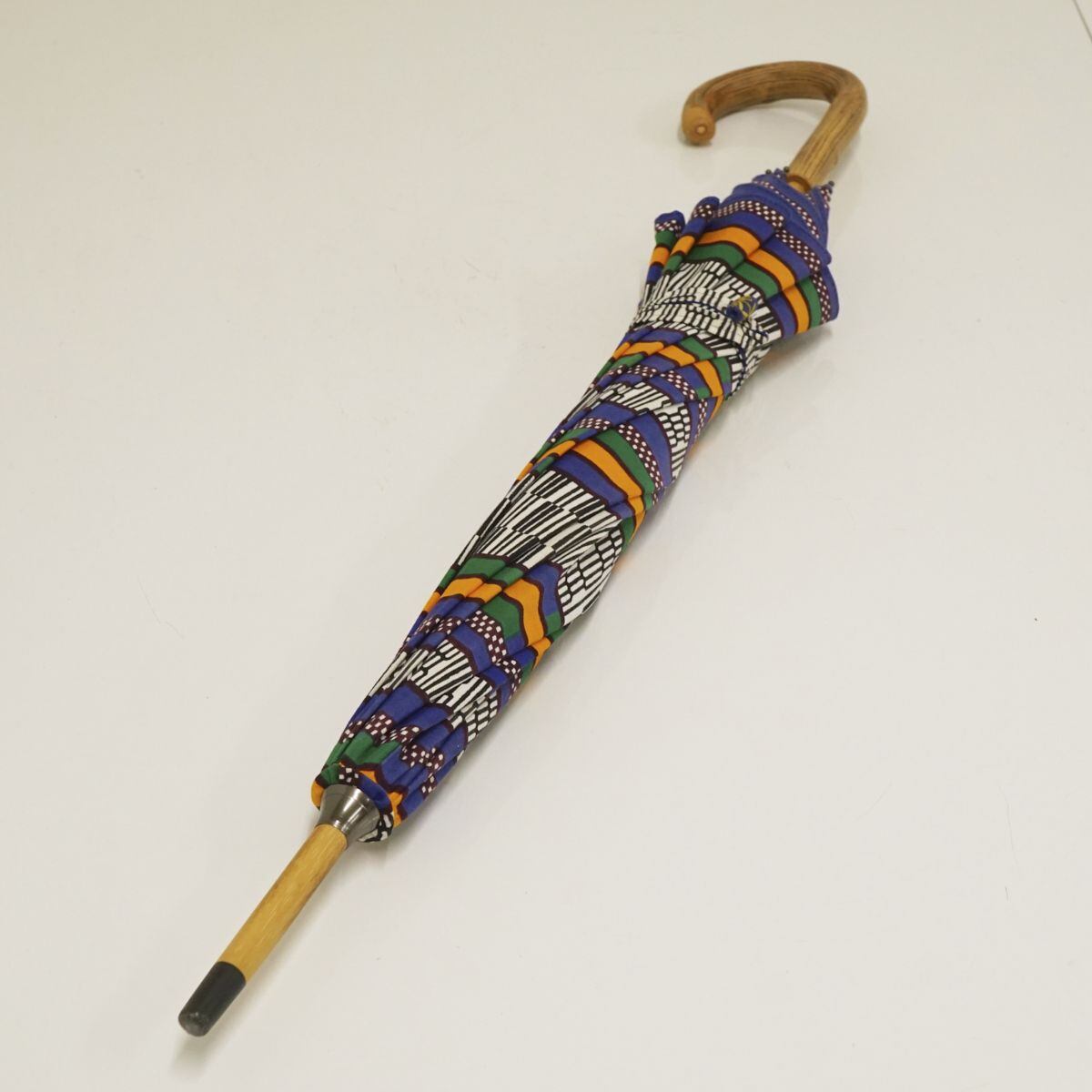 日傘 USED美品 アフリカンバティック 個性的 木製手元 おしゃれ 47cm S1055