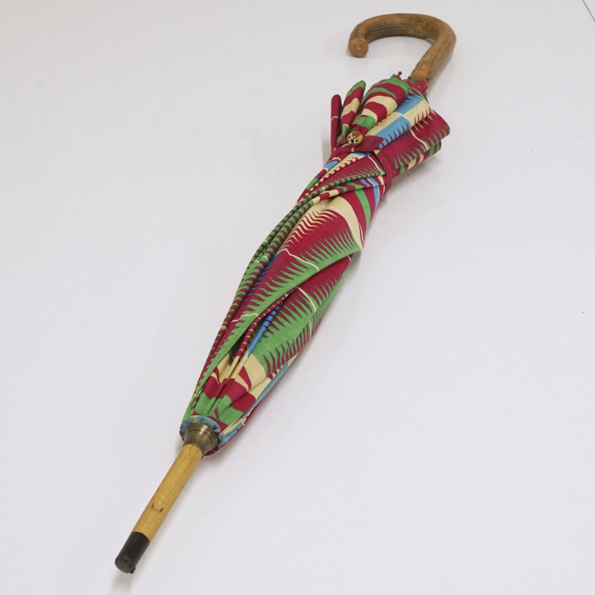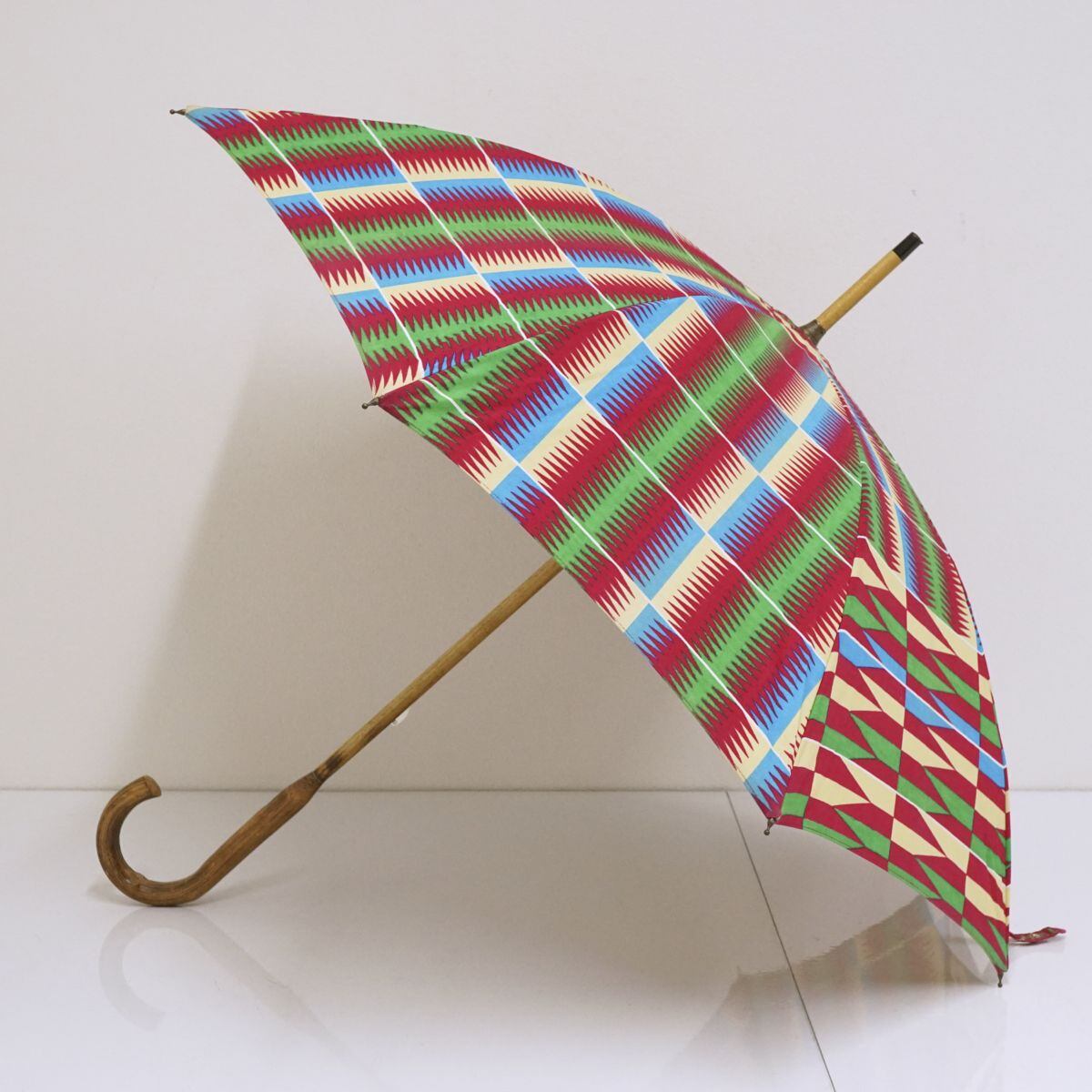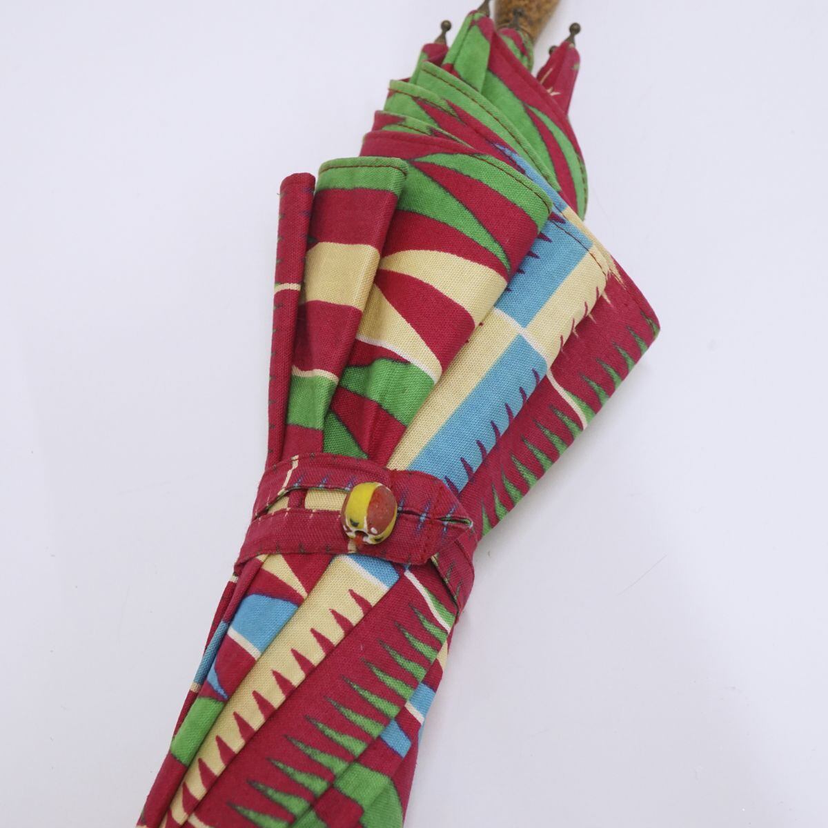 日傘 USED美品 アフリカンバティック パーニュ日傘 個性的 木製手元 おしゃれ 47cm S1057