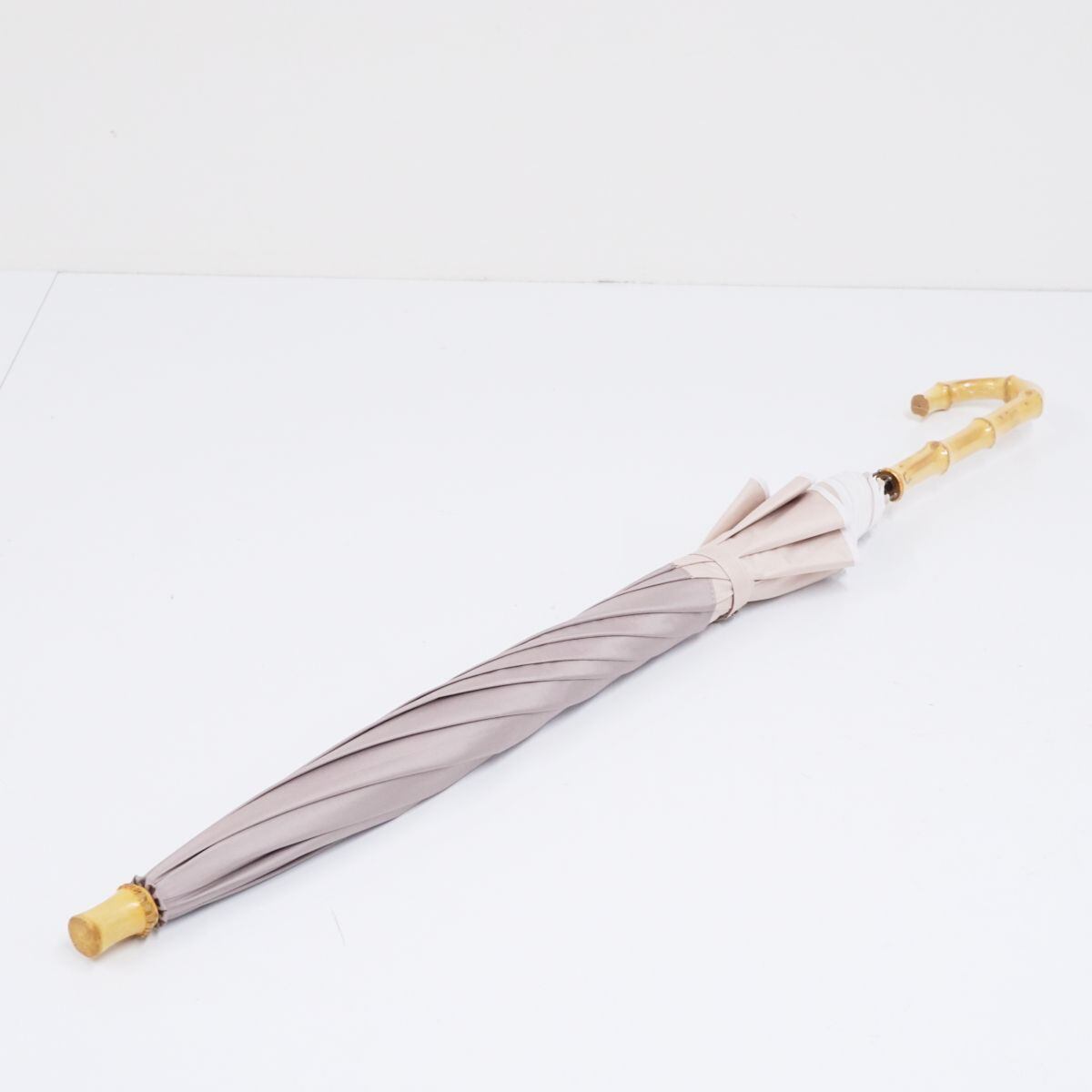 日傘 (株)ソレイユ 晴雨兼用 傘 USED美品 バイカラー 前衛的 遮光 刺繍 ベージュ系 58cm UV BT0848
