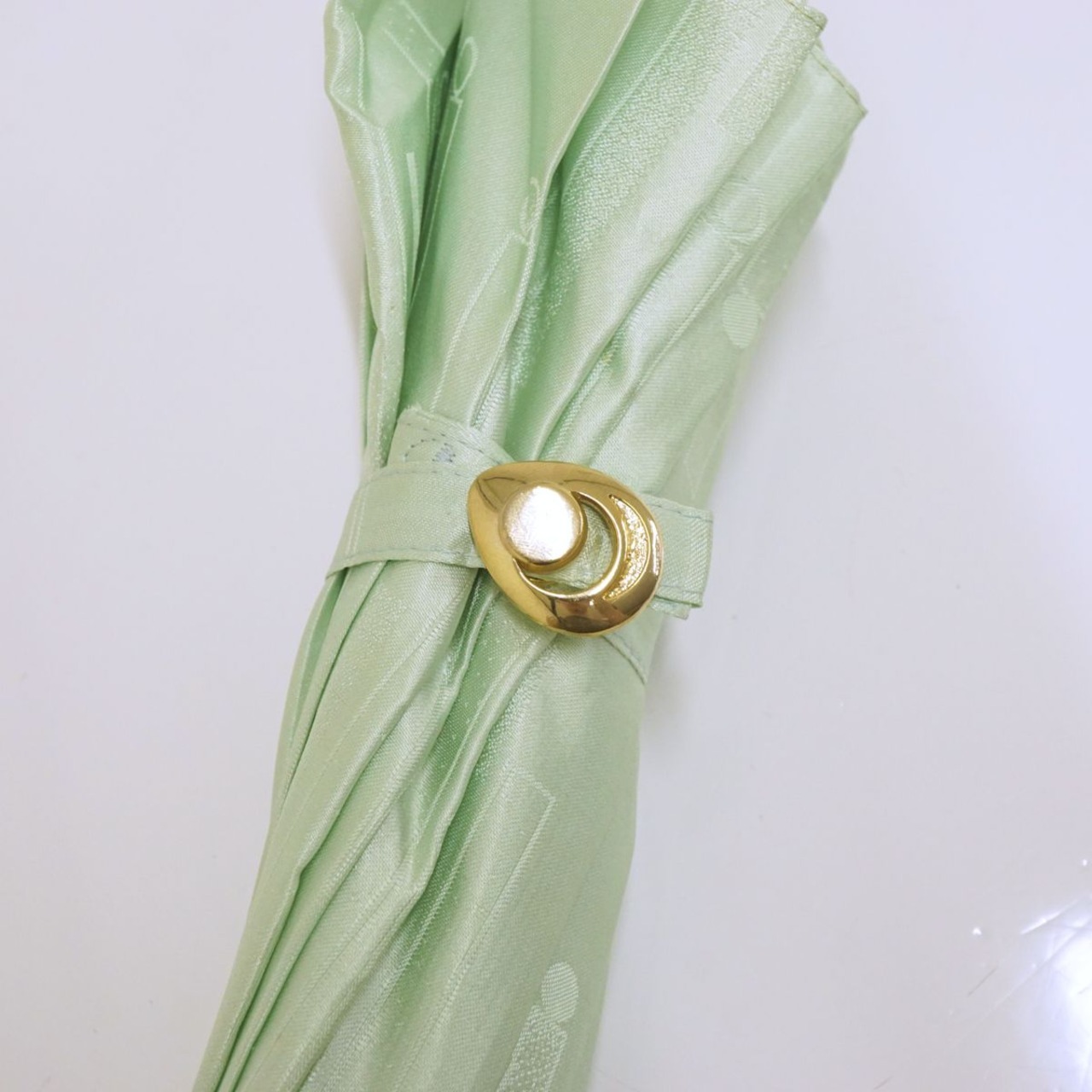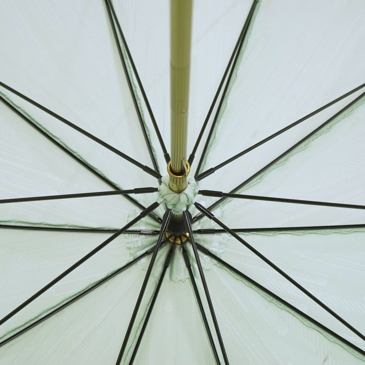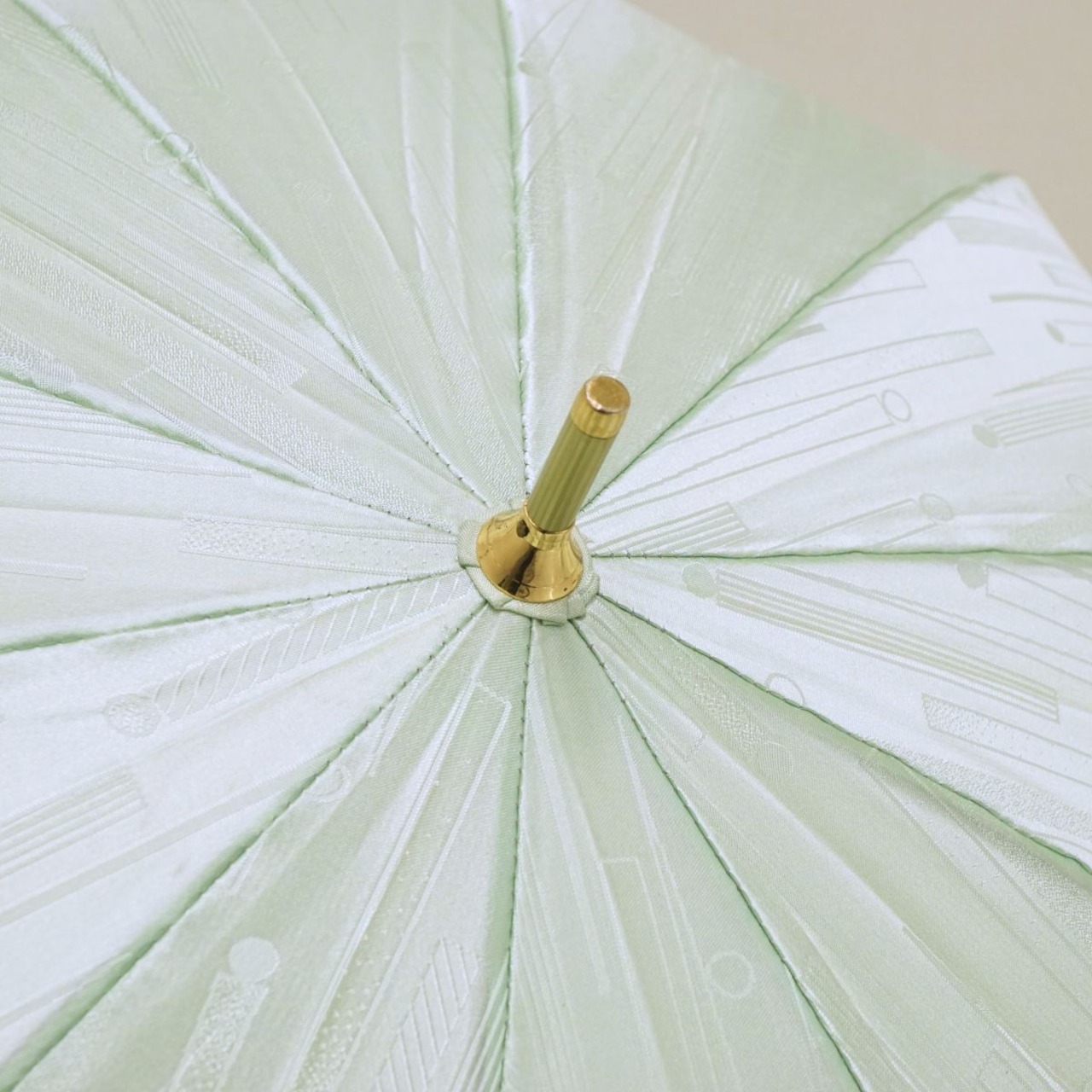 ミントグリーンの生地に柄が織り込まれた爽やかなデザインです。