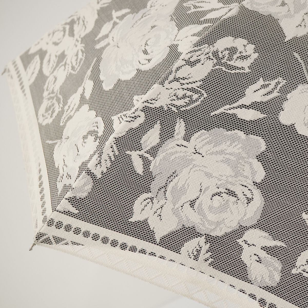 ブラックの遮光生地に、アイボリーのフラワーレースヴェールを重ねたデザインです。