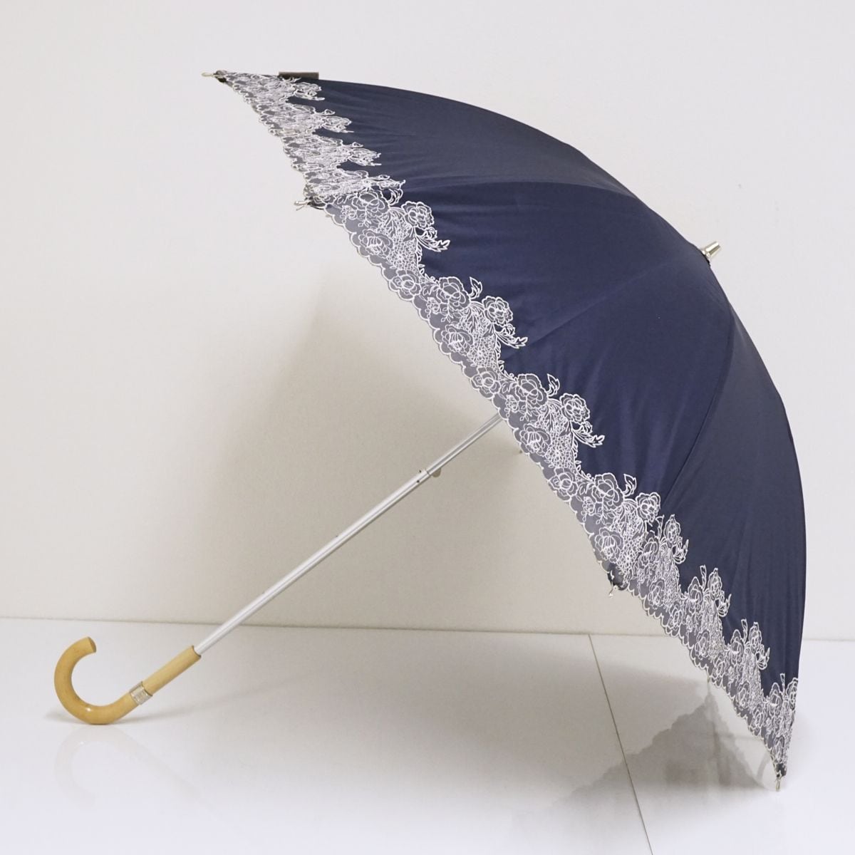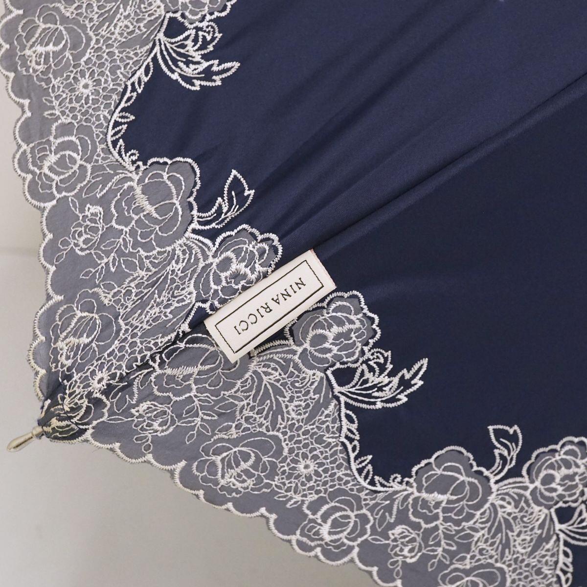 日傘 NINA RICCI ニナリッチ USED美品 サマーシールドLi 晴雨兼用 刺繍 ネイビー フラワー UV 遮光 遮熱 グラス骨 50cm S1071
