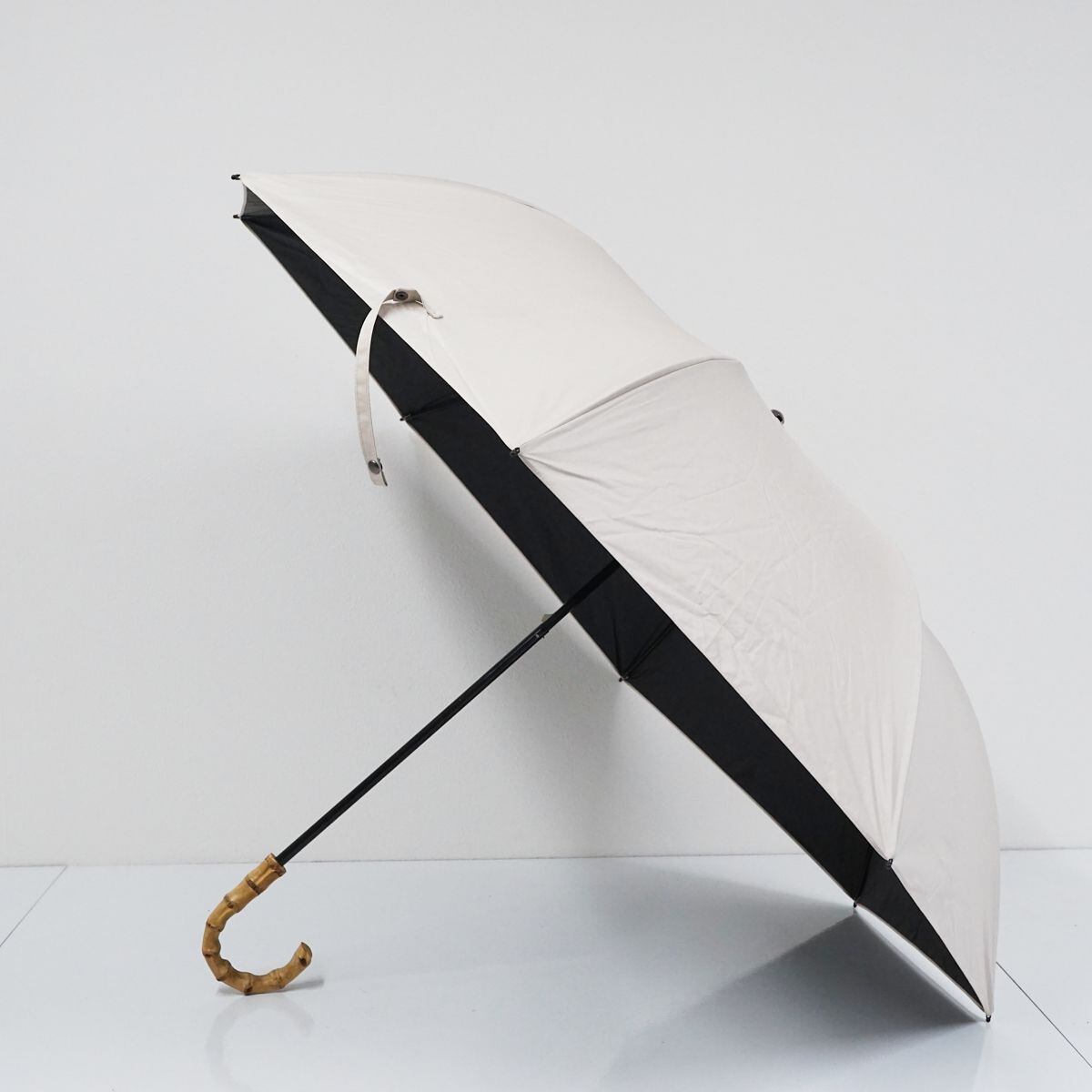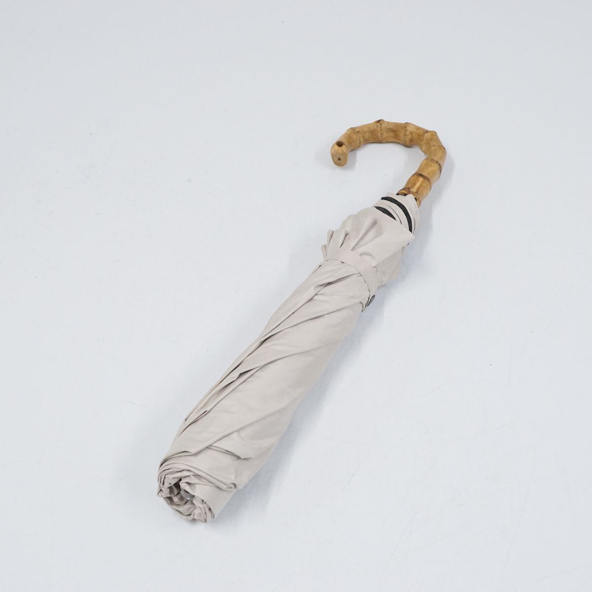 折りたたみ日傘 utatane ウタタネ USED品 一級遮光 晴雨兼用 無地 バンブーハンドル ライトベージュ シンプル UV 遮熱 55cm FA8496