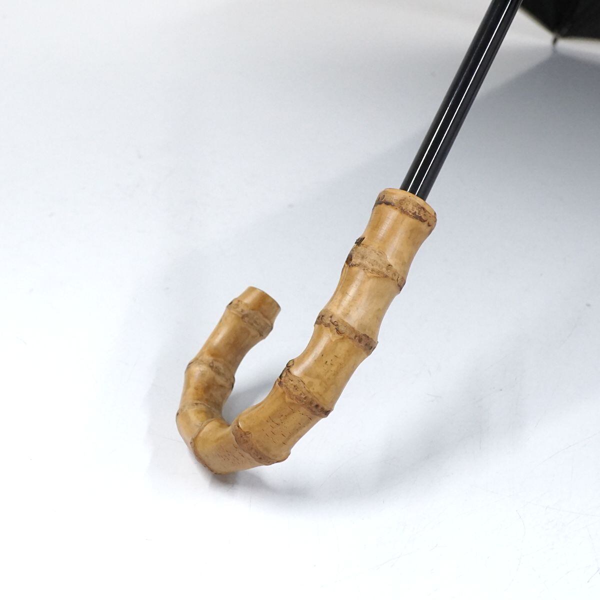 シンプルな無地の生地と、バンブーハンドルの組み合わせがおしゃれなデザインです。