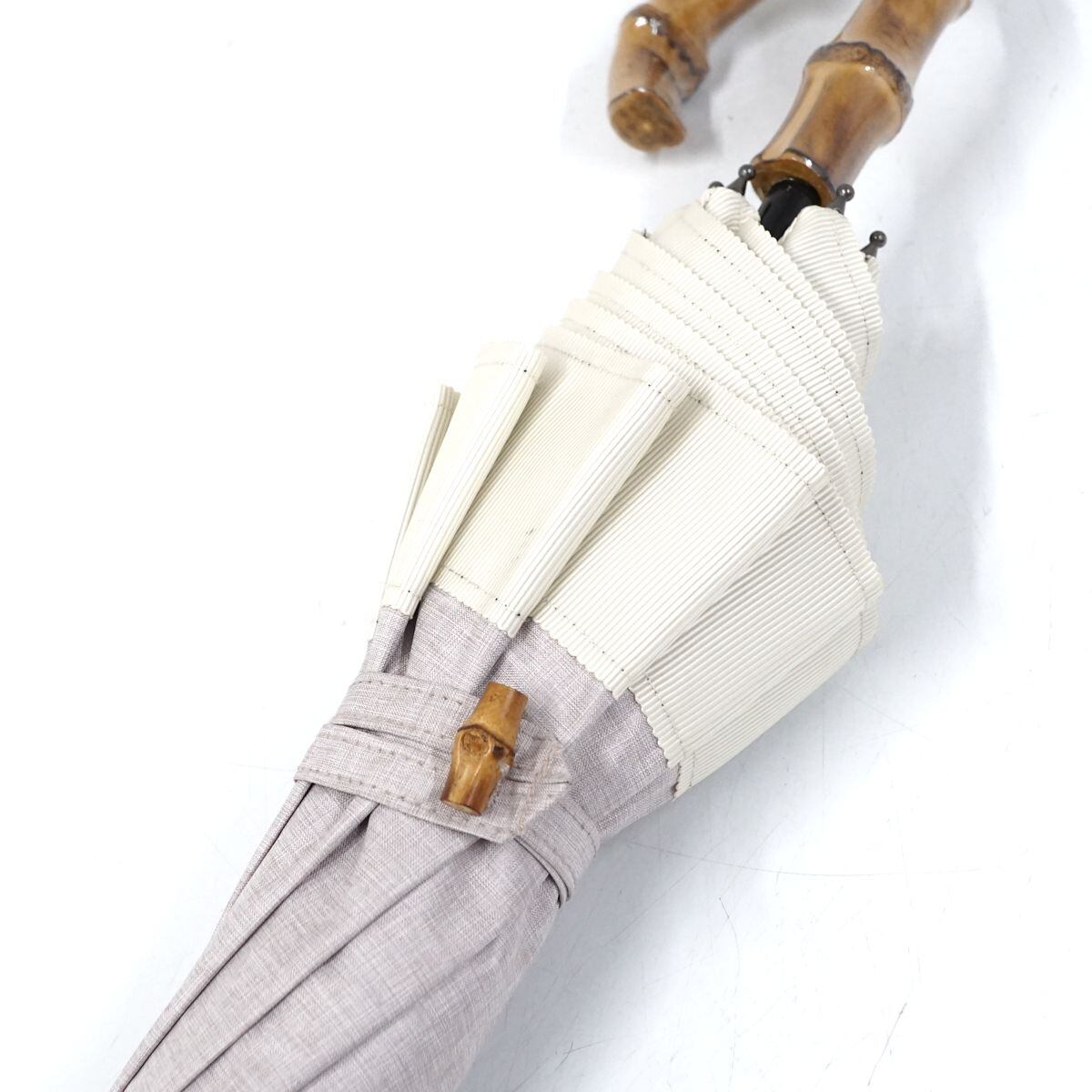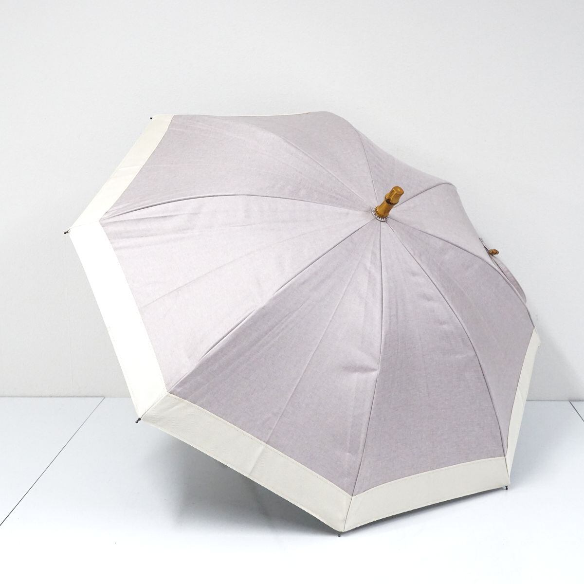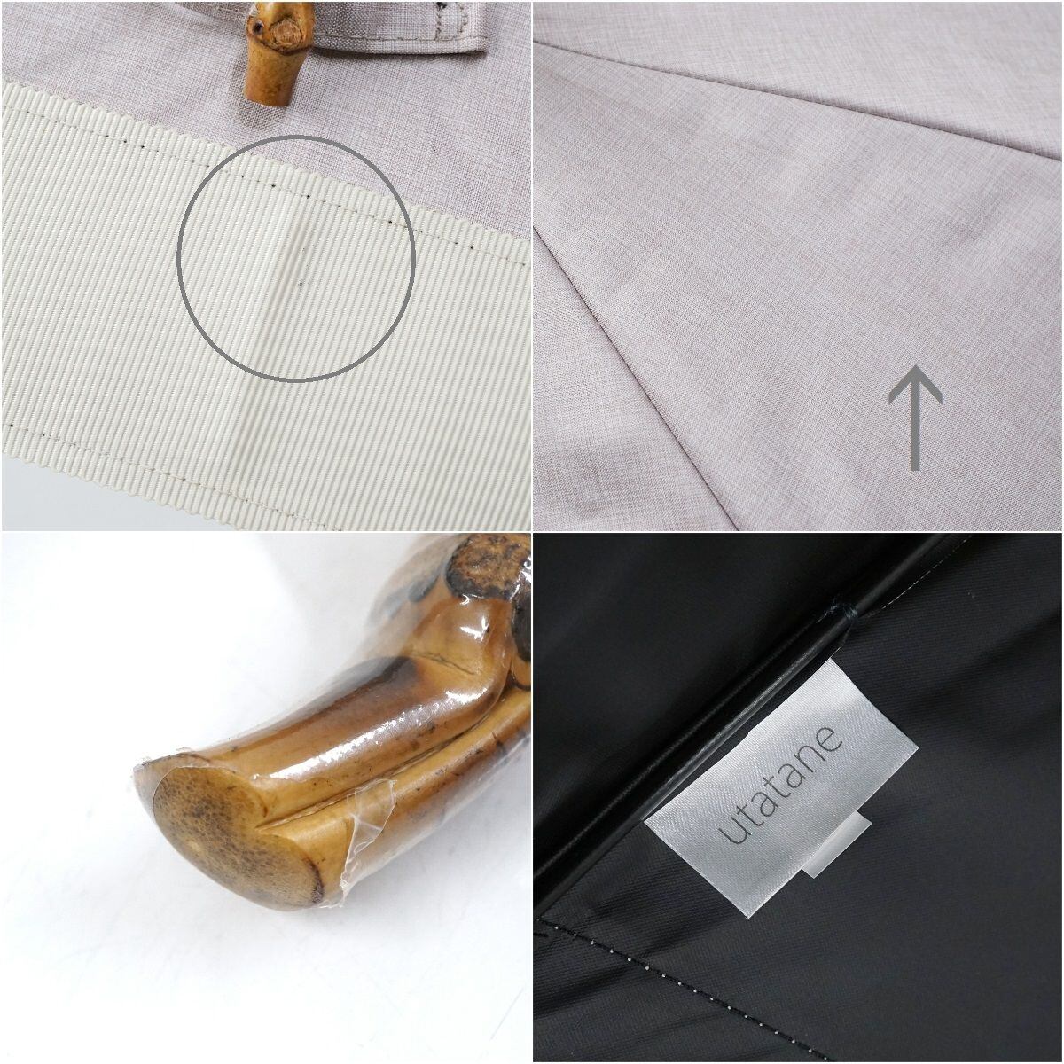 晴雨兼用日傘 utatane ウタタネ USED美品 一級遮光 バイカラー グログランリボン バンブーハンドル アッシュブラウン UV 遮熱 47cm A1074