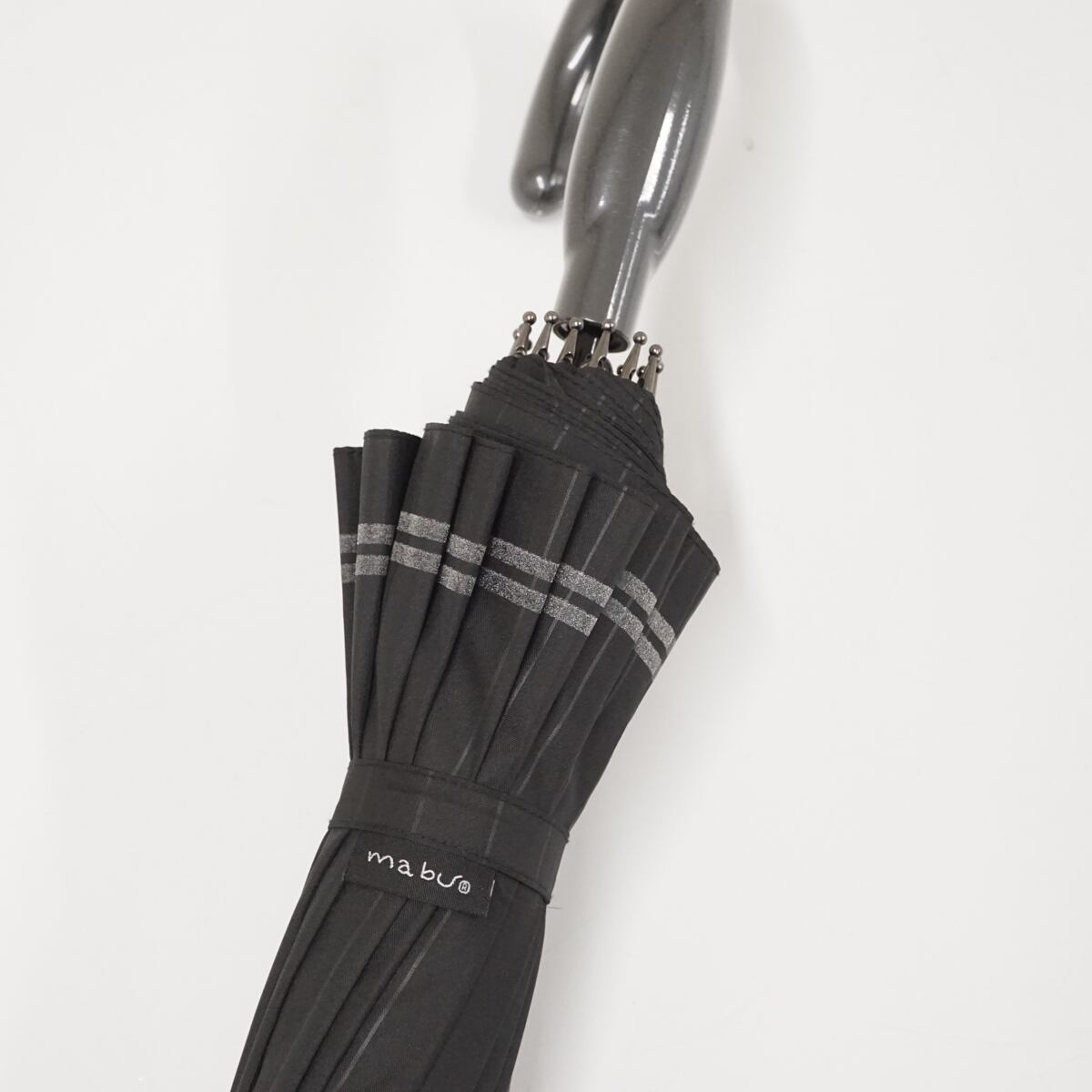 mabu マブ 16本骨傘 USED超美品 ブラック ベーシックジャンプ16 ノワールピンストライプ 大判 65cm A1755