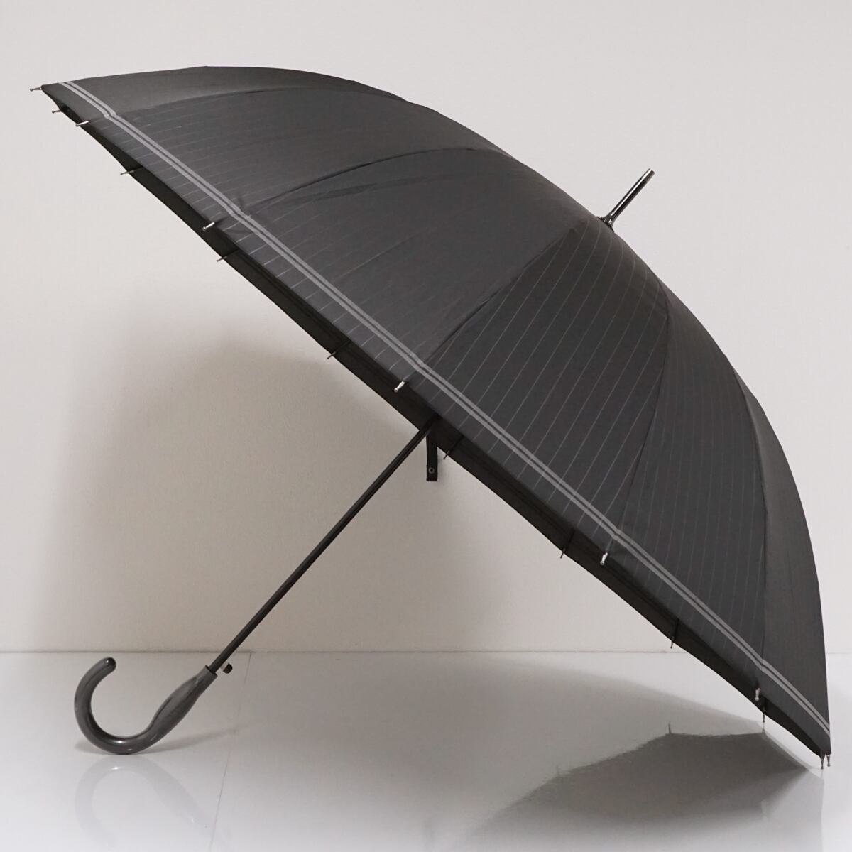多間傘ならではの余裕のあるサイズ感、大きな傘でも支えやすいオリジナル手元、リフレクター仕様のラインなど、デザイン性と機能性を追求した傘です。