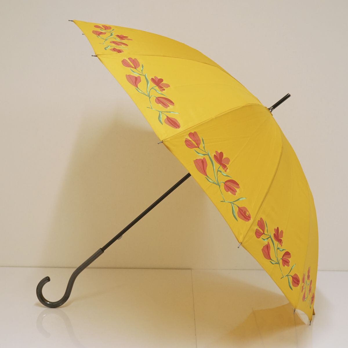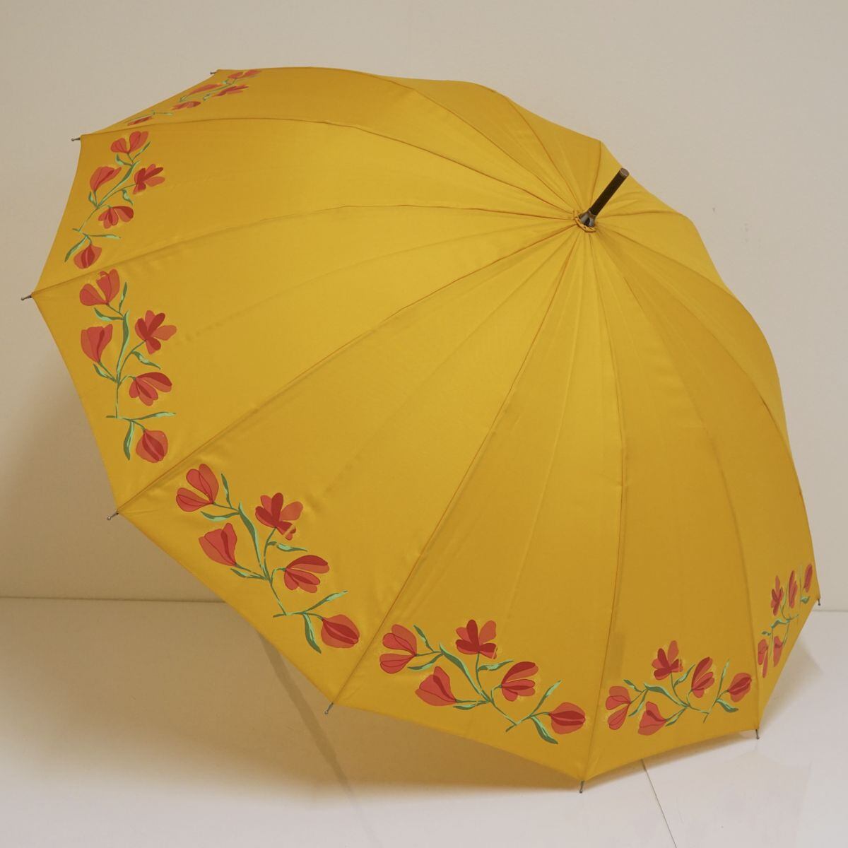 傘 Sybilla シビラ USED美品 アートフラワー 山吹色 12本骨 多間 グラスファイバーフレーム 55cm A1095