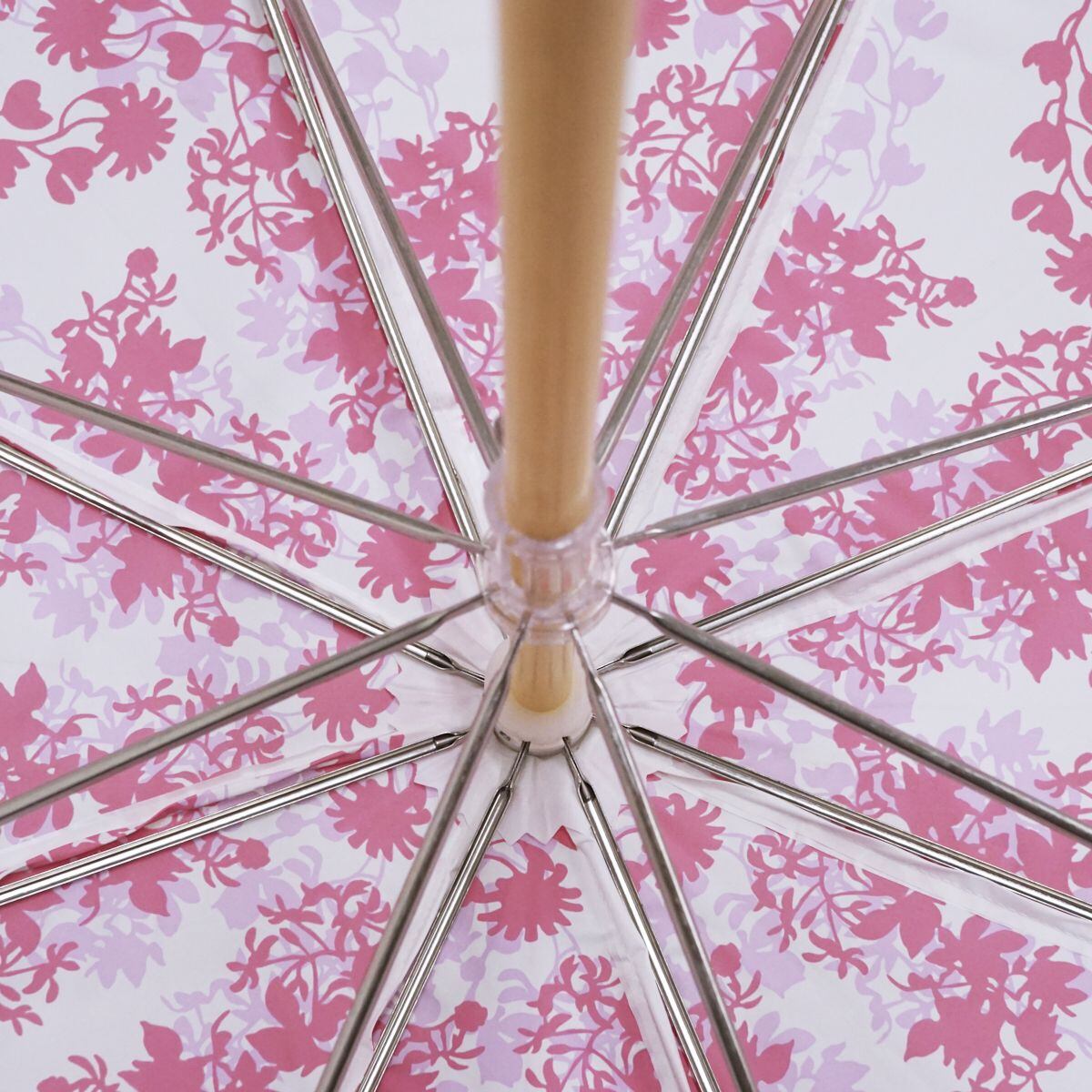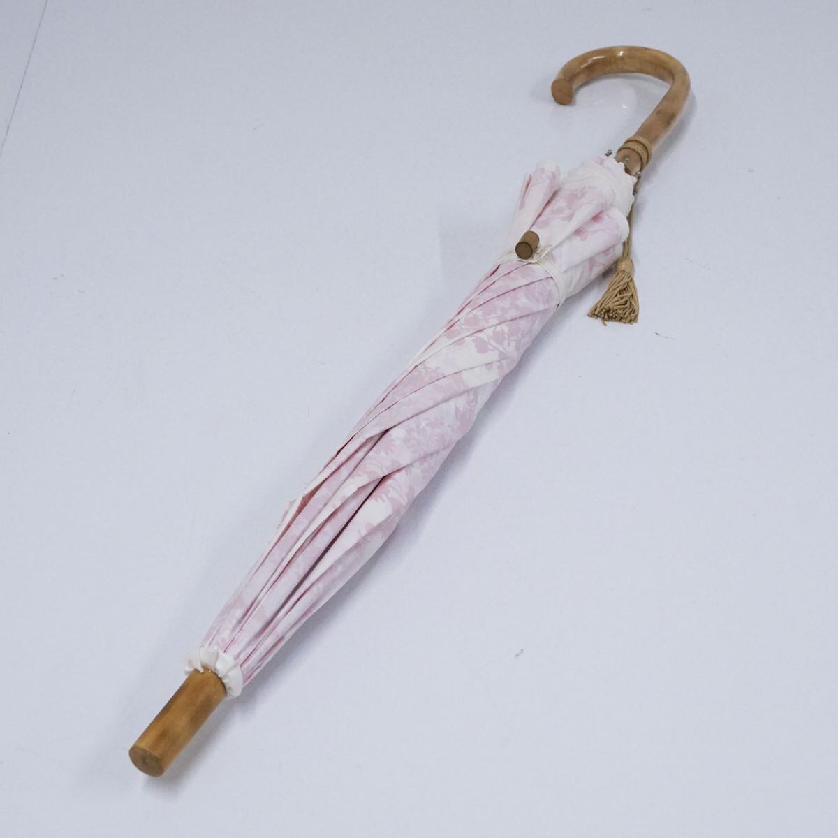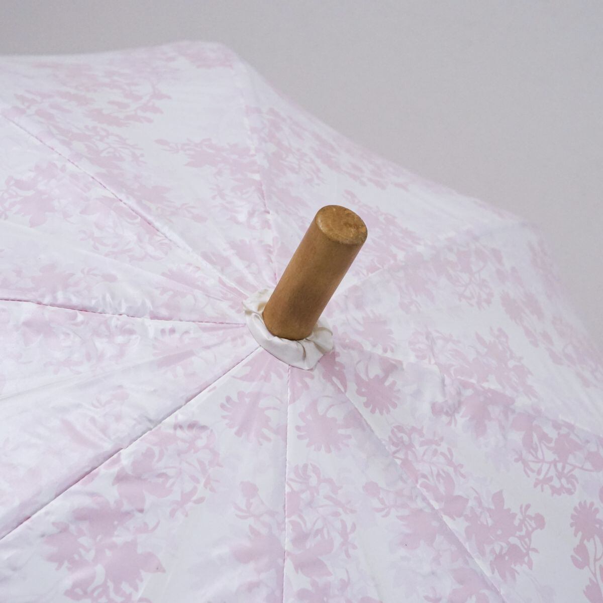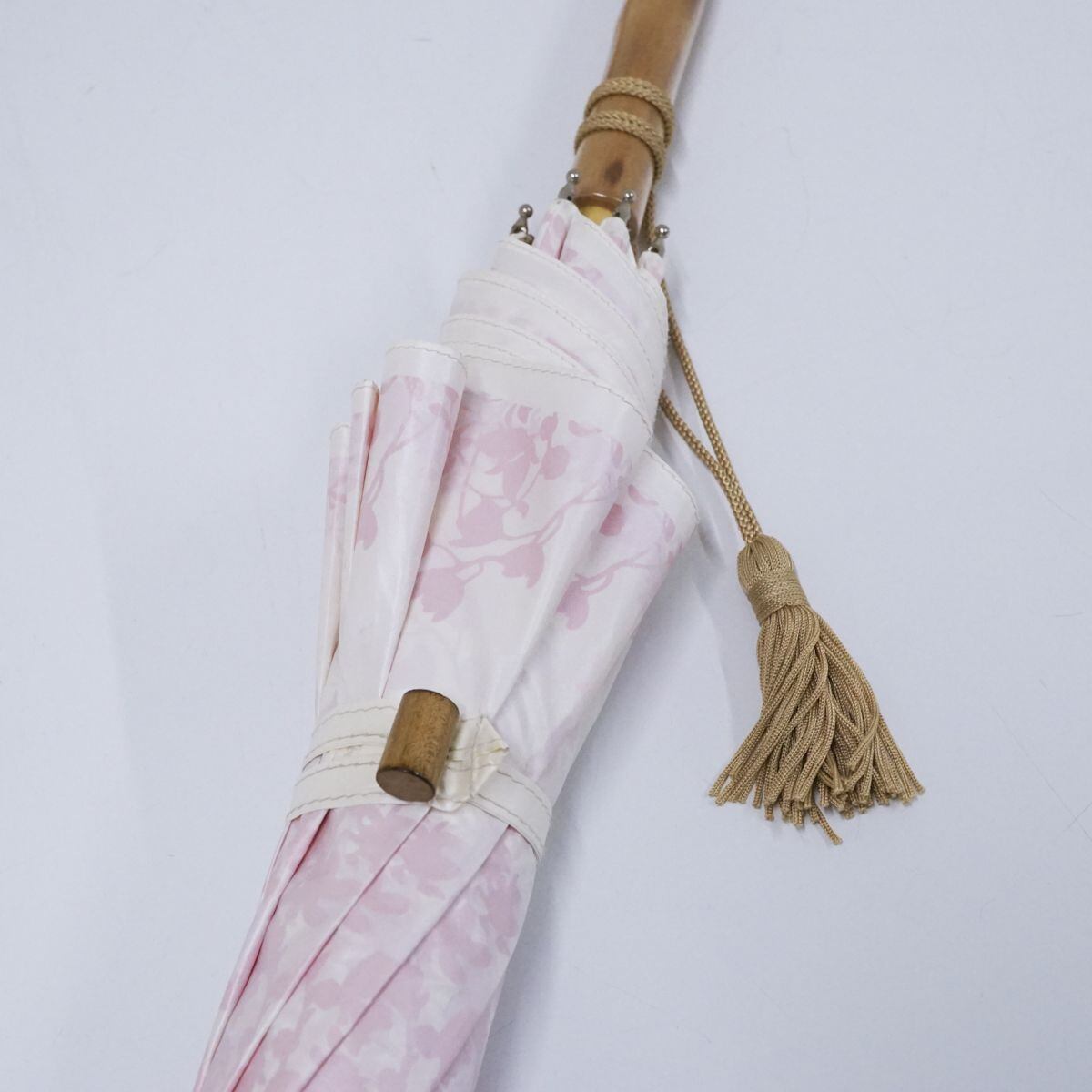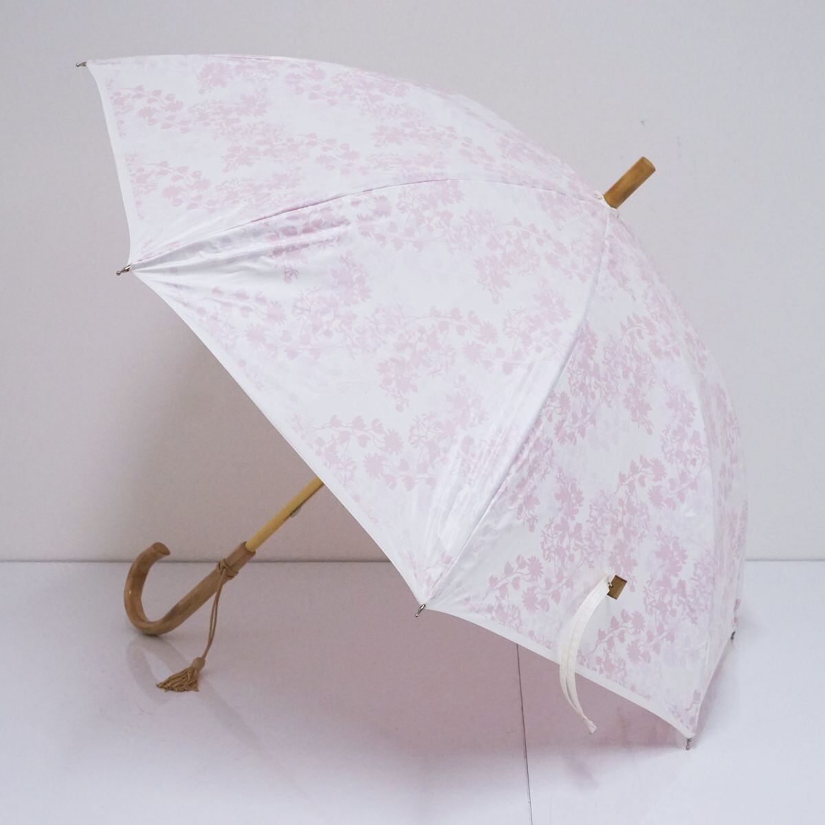 日傘 UVION ユビオン USED美品 日本製 プレミアムホワイト ディアフラワー柄 寒竹手元 晴雨兼用 遮熱 UV 50cm S1109