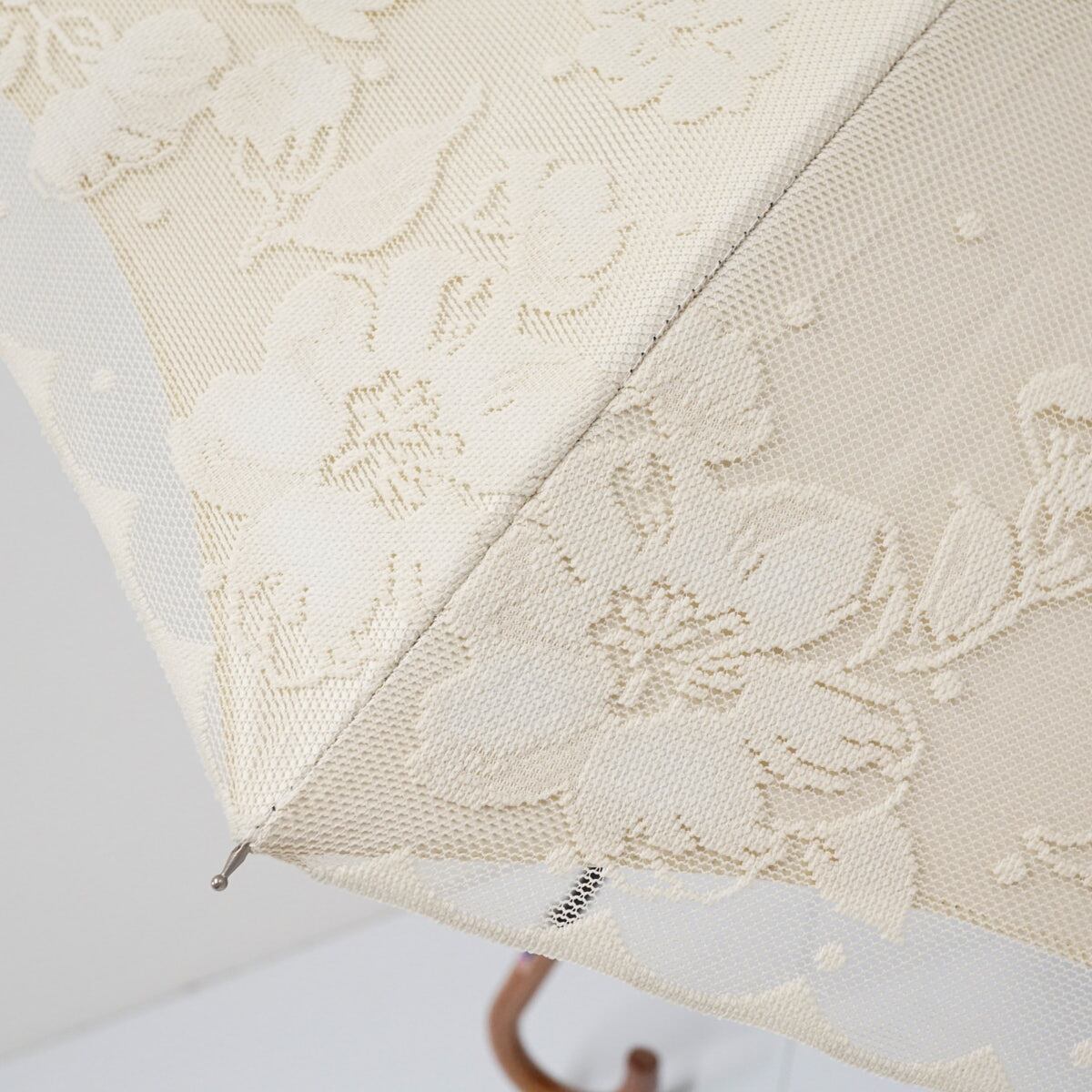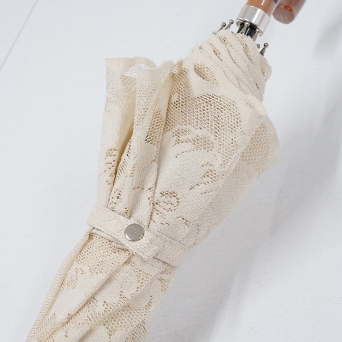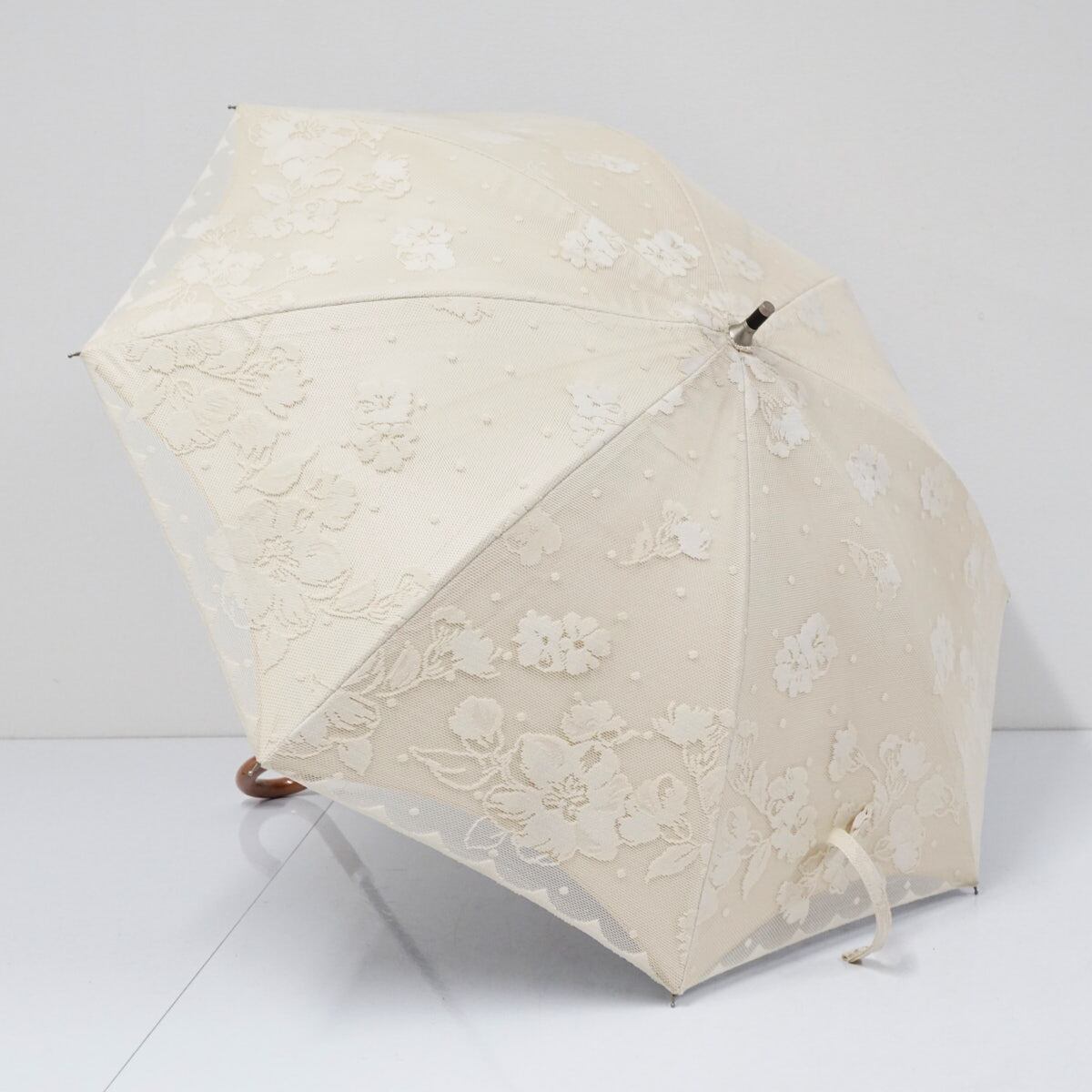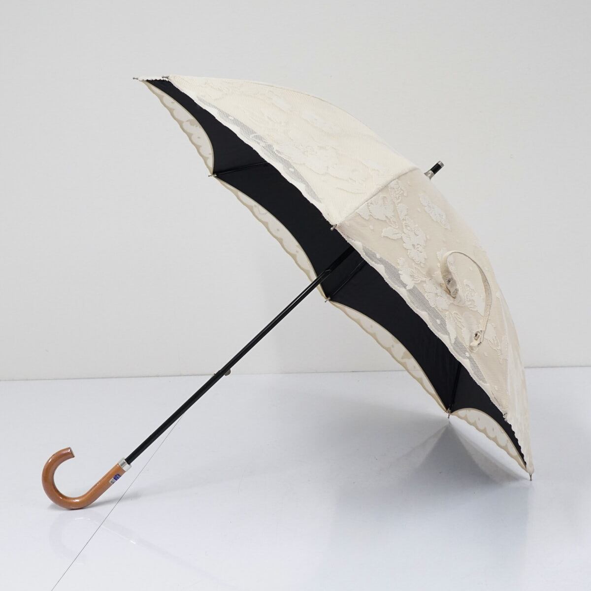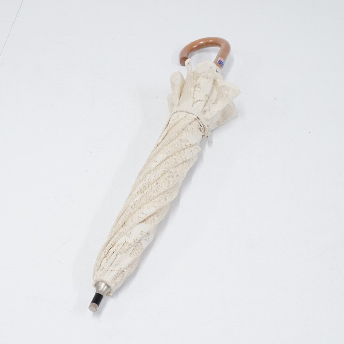 日傘 ブロンズ USED美品 レース フラワー ベージュ × ベージュ 晴雨兼用 UV 木製手元 二重張り 45cm A2873
