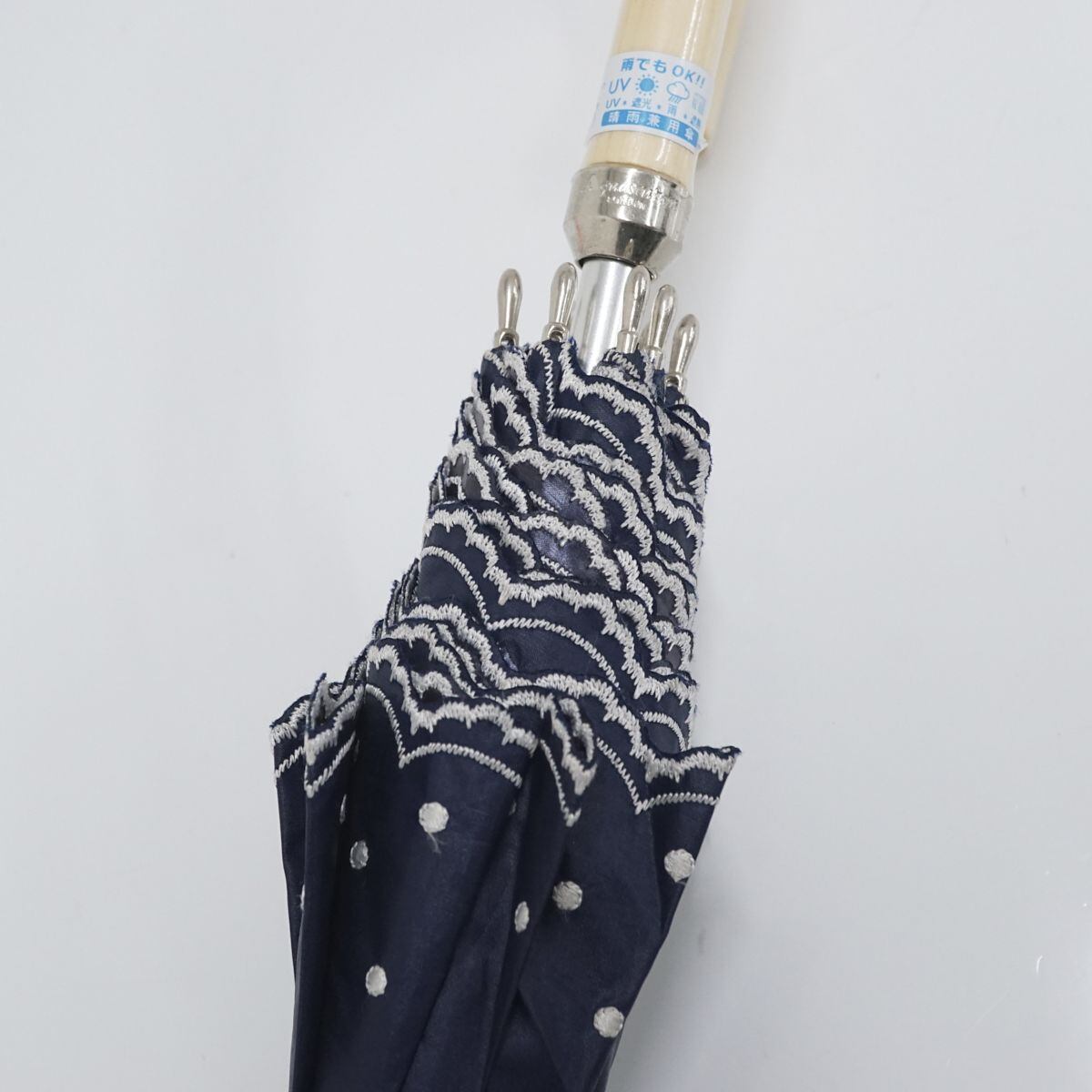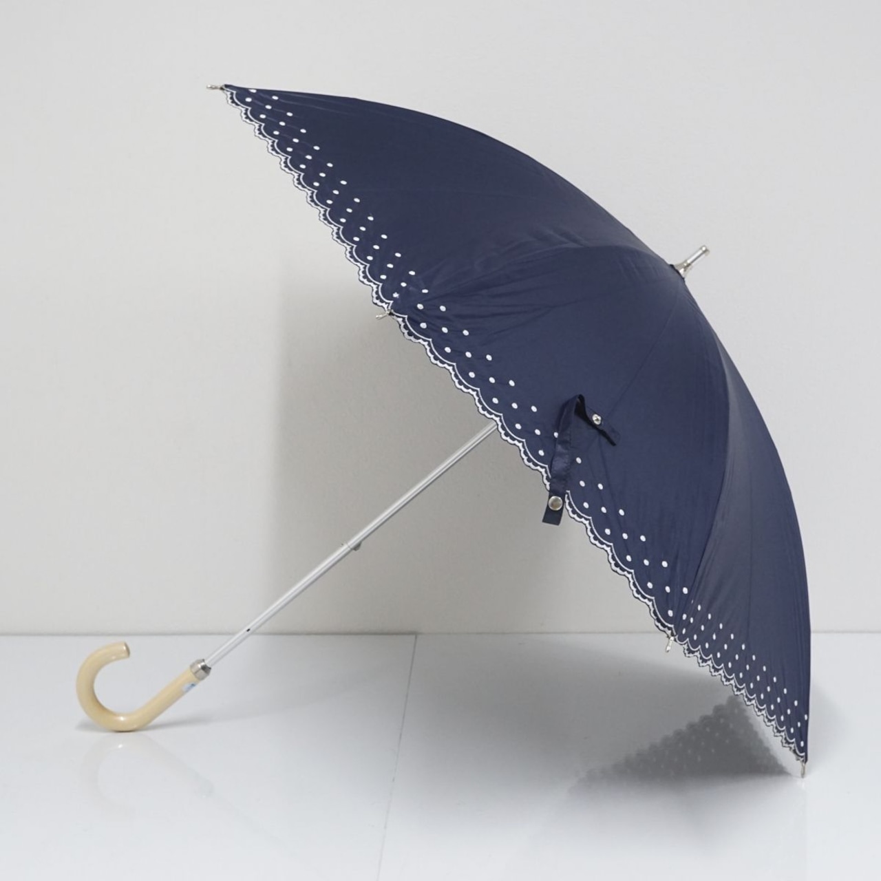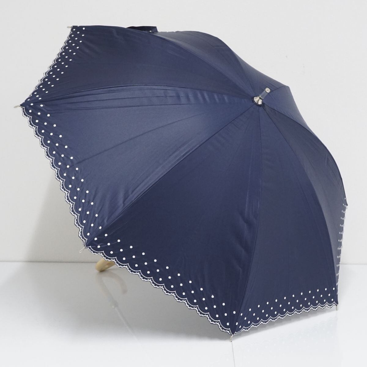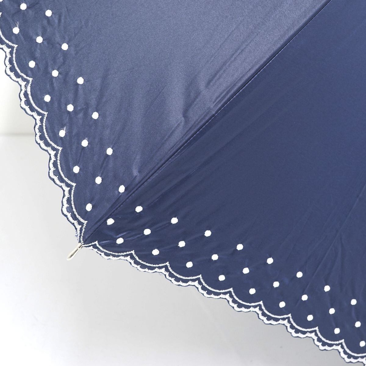 日傘 Aquascutum アクアスキュータム USED美品 イギリス ネイビー ドット 刺繍 UV 遮光 晴雨兼用 47cm A1108