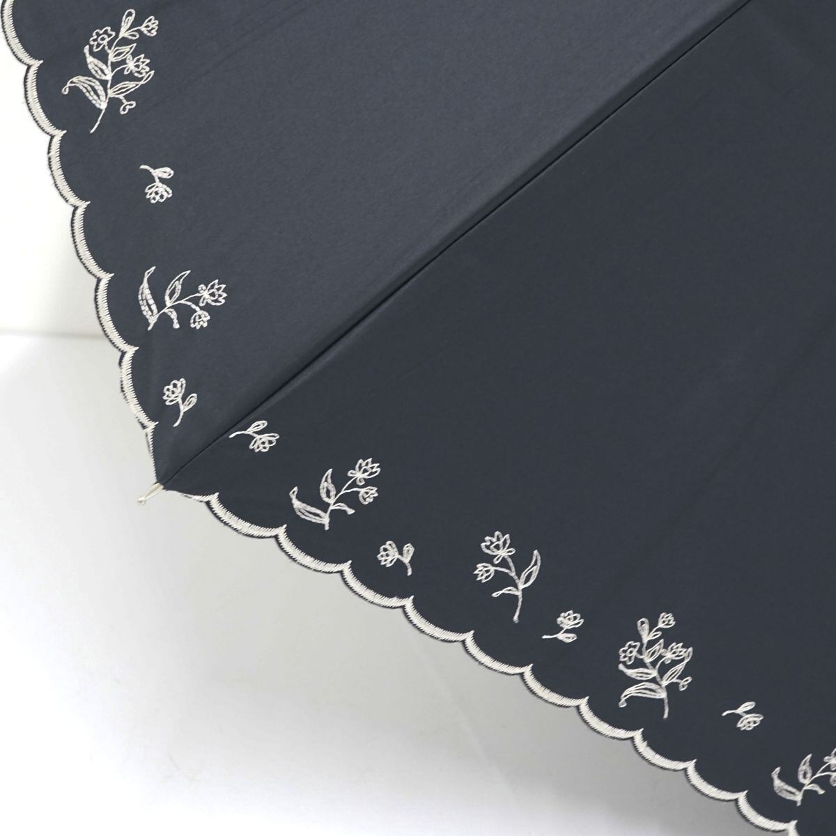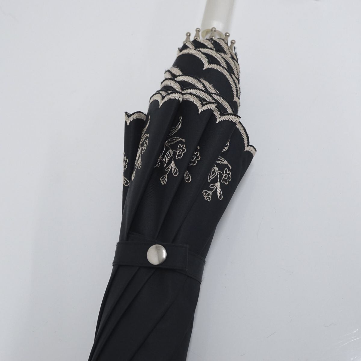 晴雨兼用日傘 AURORA オーロラ(株) USED美品 東レサマーシールド ブラック 花柄刺繍 遮光 遮熱 UV 47cm A1110