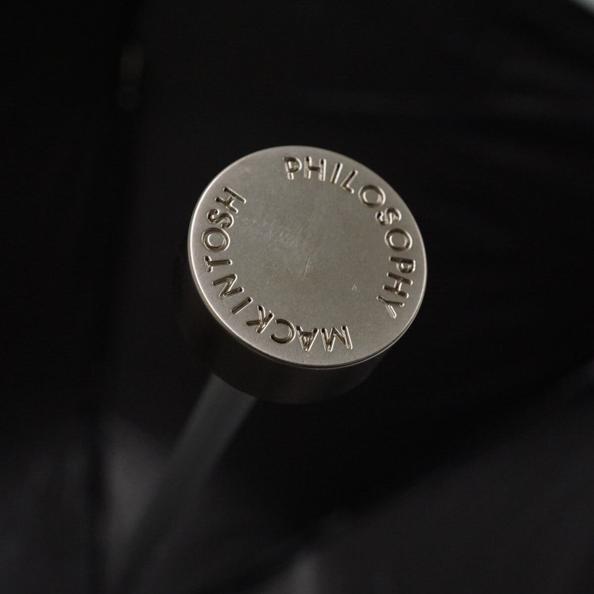 手元の刻印と生地のロゴプリントがさりげなくブランドをアピールしています。