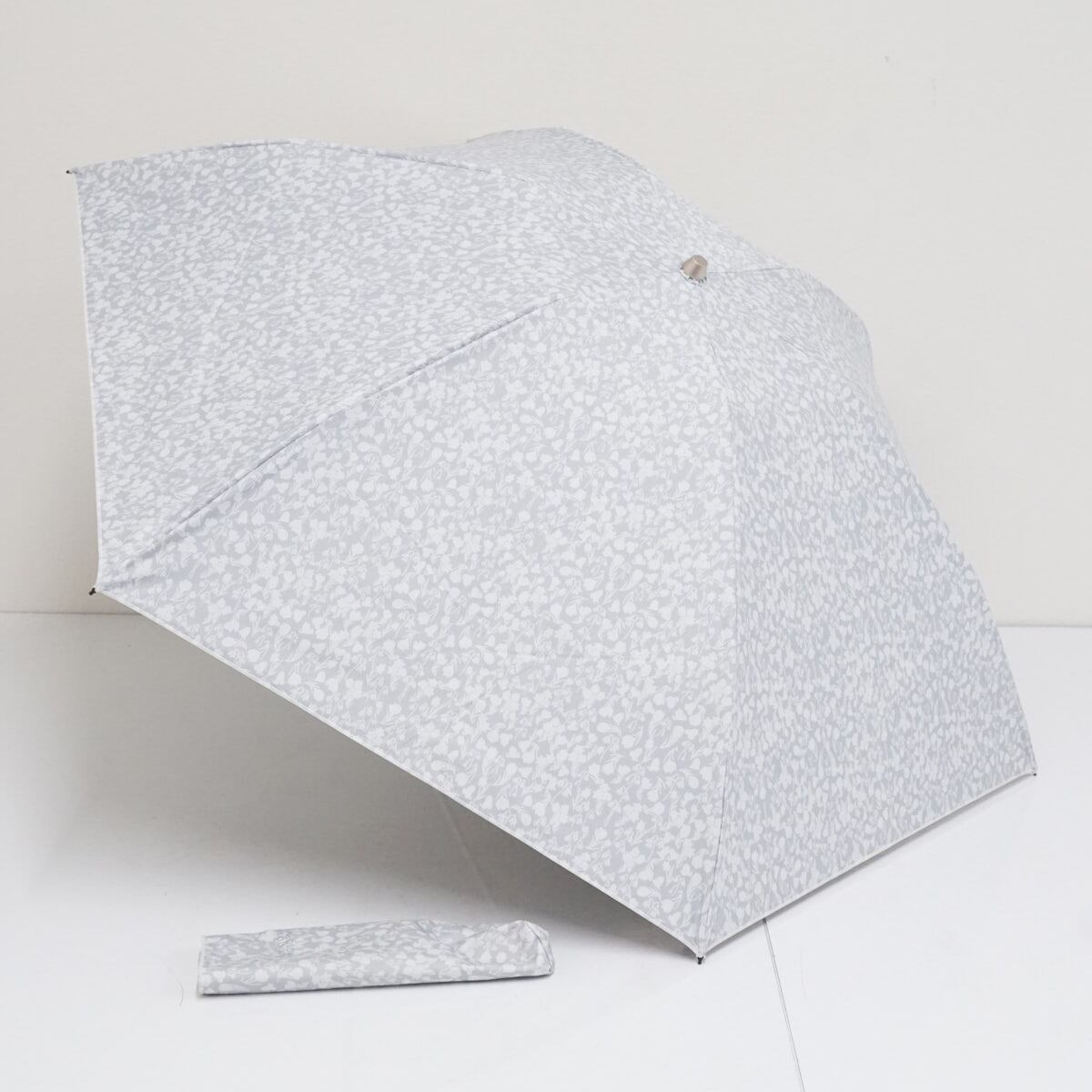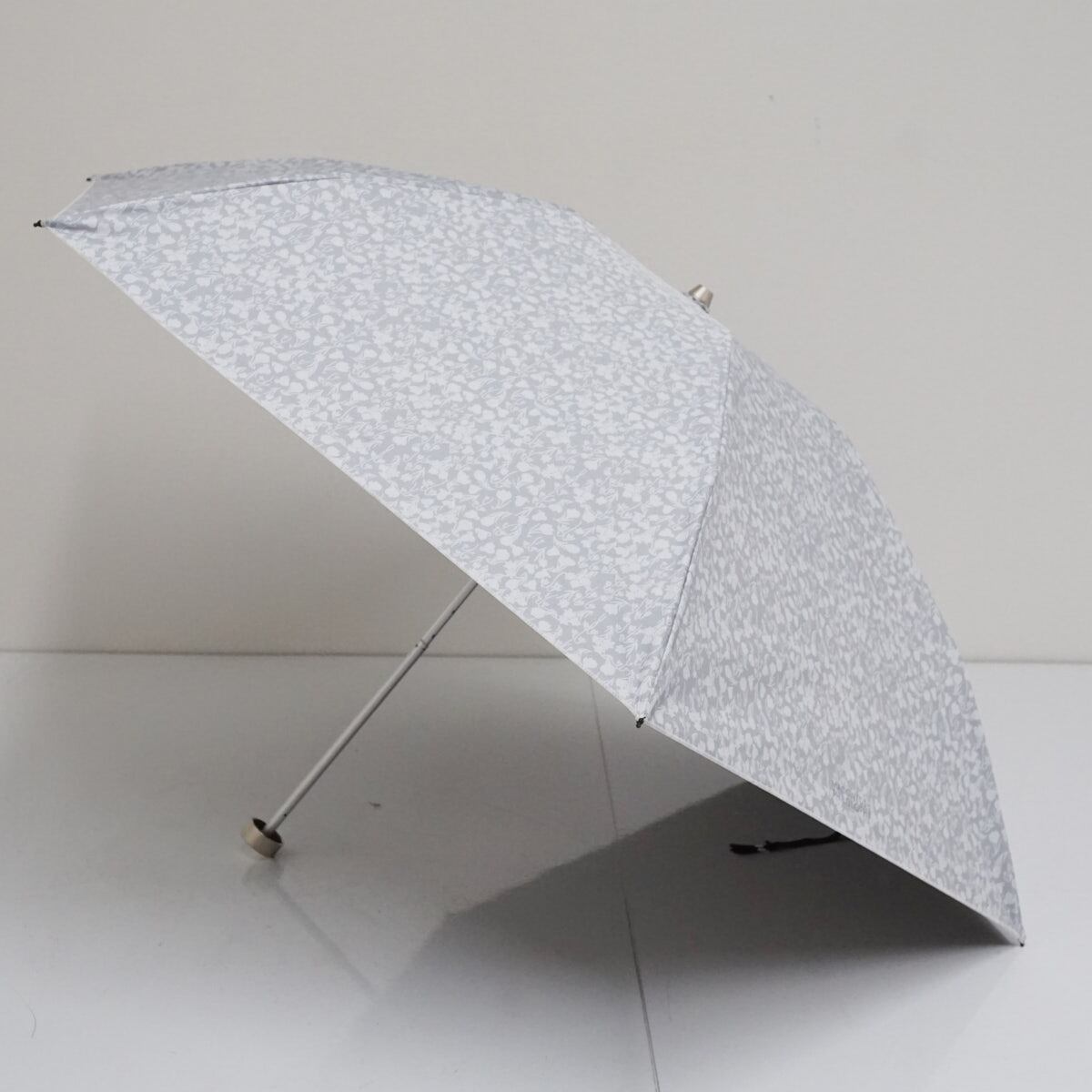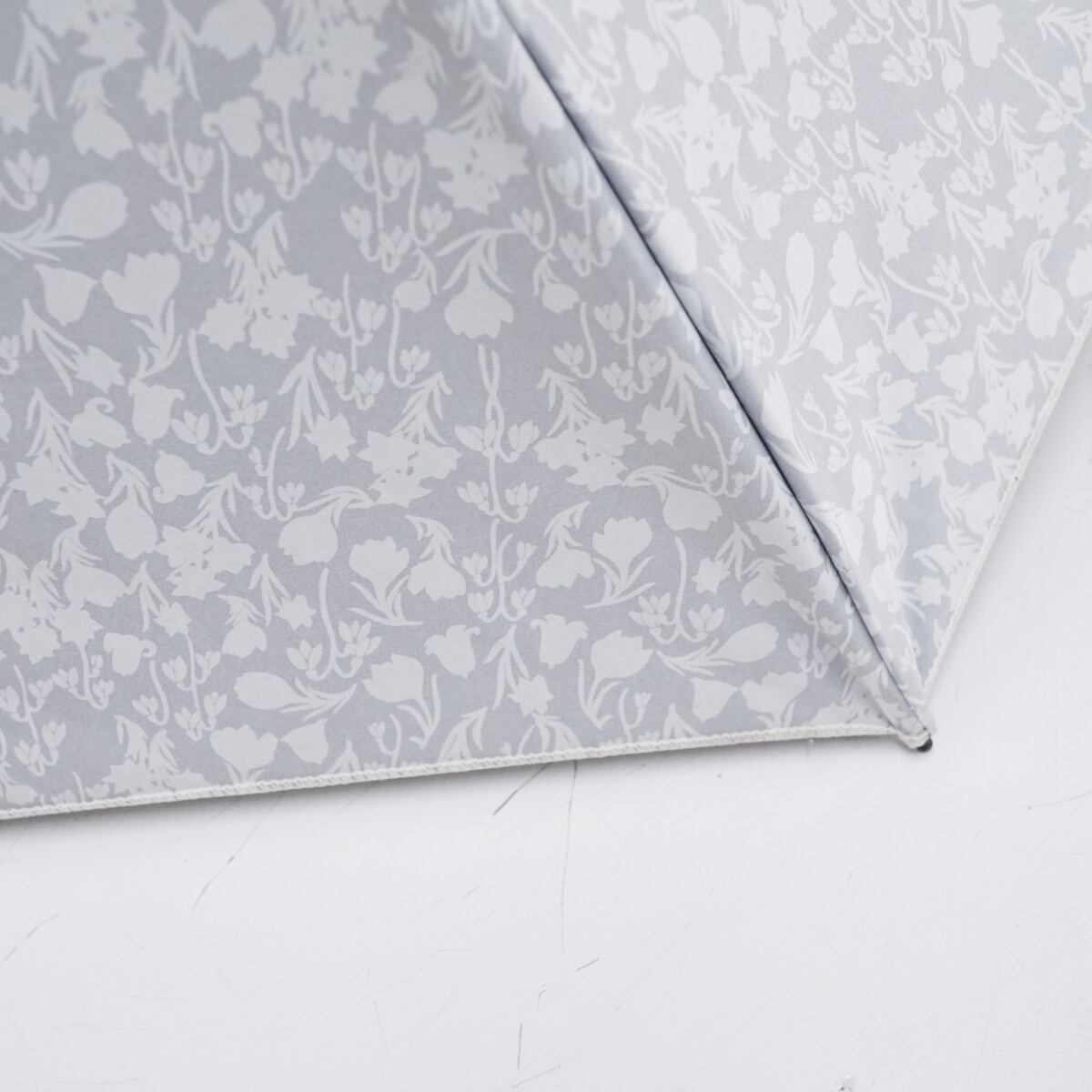 ライトグレーをベースにシルエットフラワーを描いた華やかな雰囲気のパラソルです。