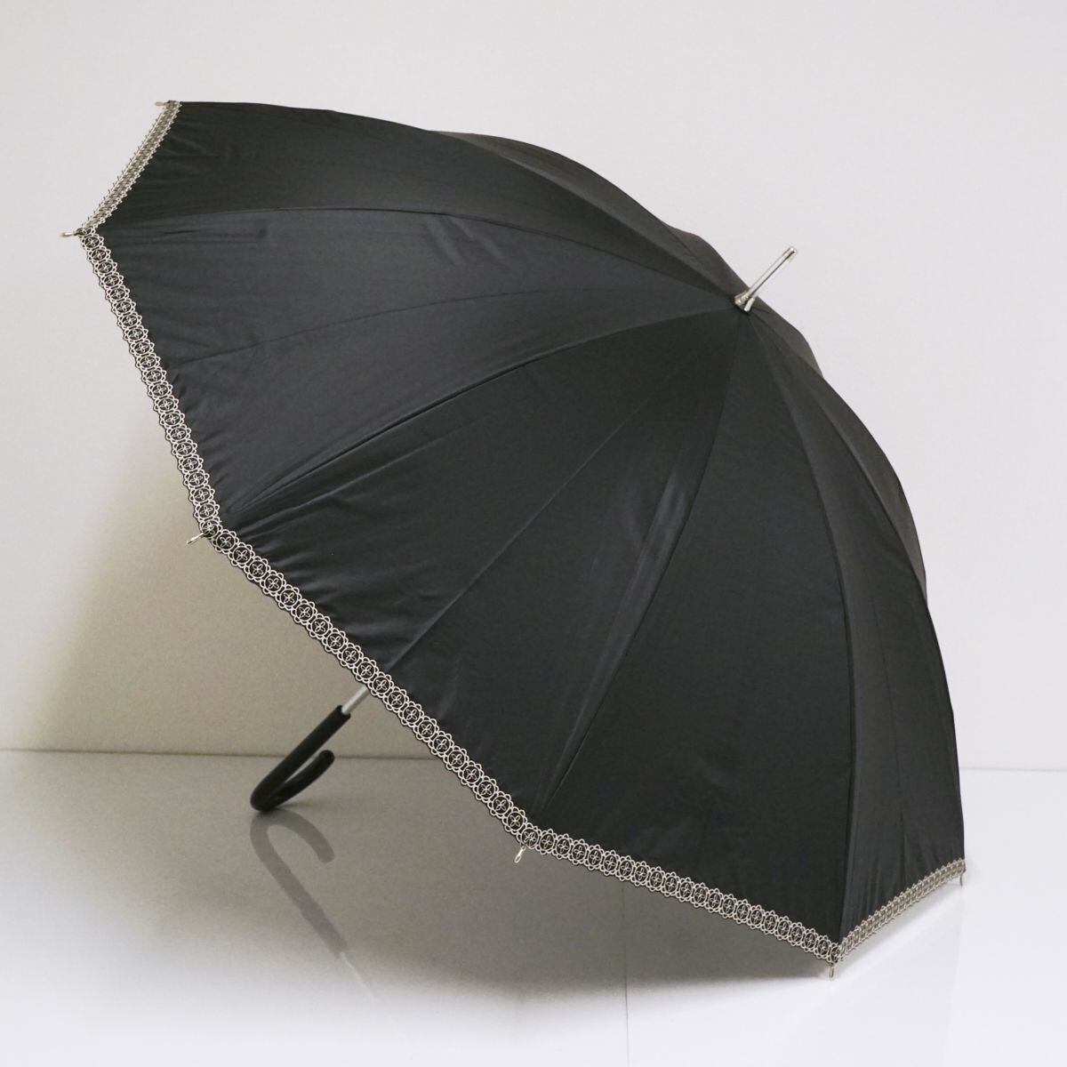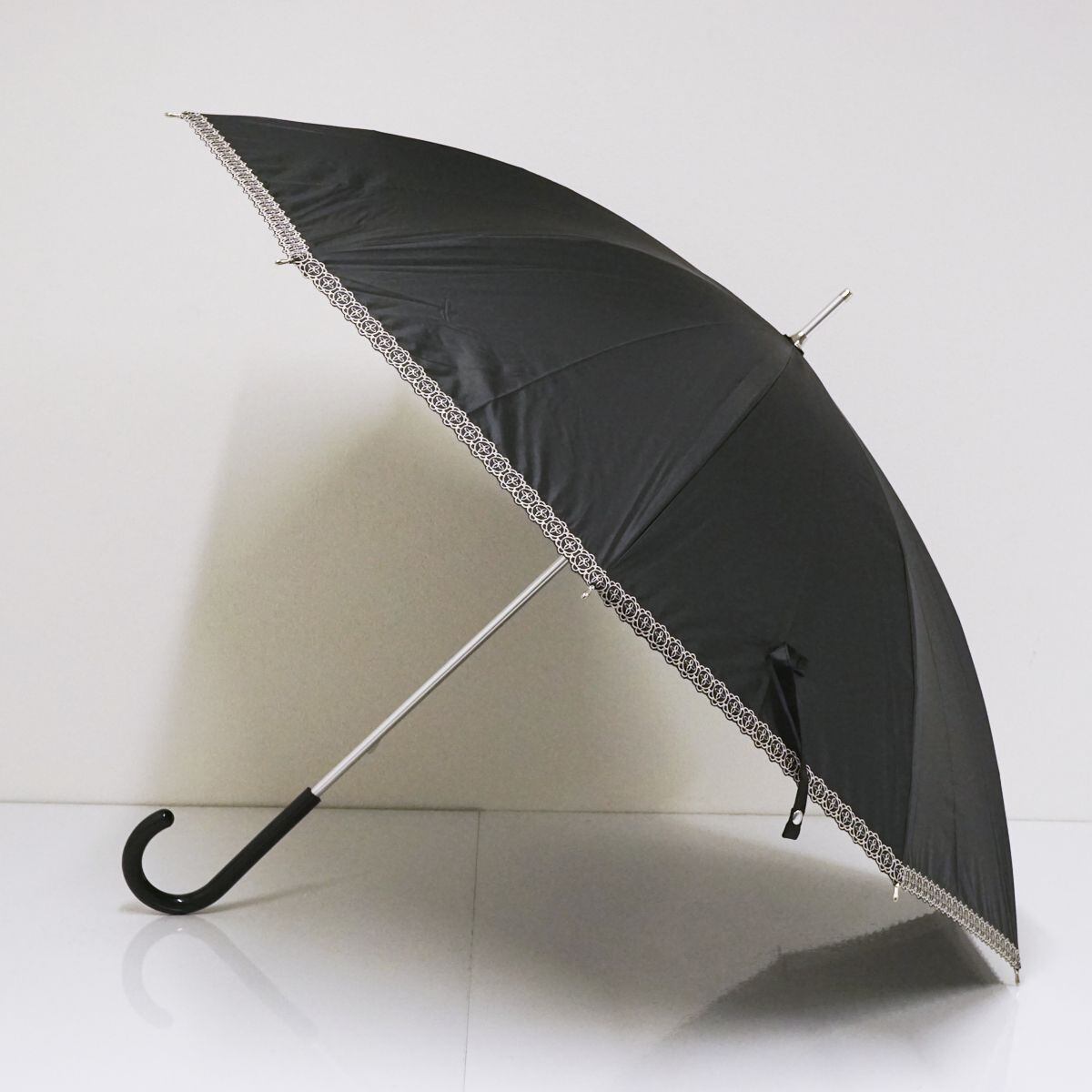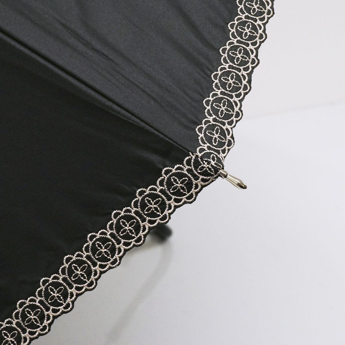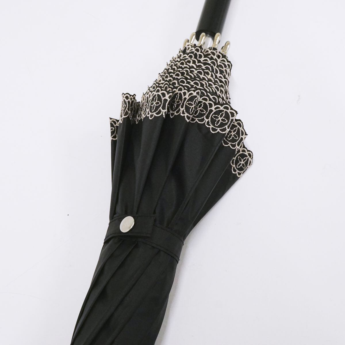 晴雨兼用日傘 AUROLA オーロラ USED美品 レディース 長傘 ブラック 刺繍 大判 58cm A1126