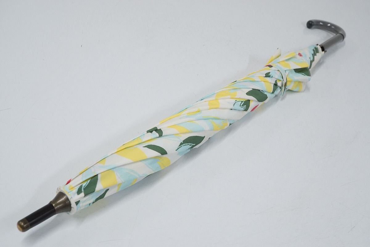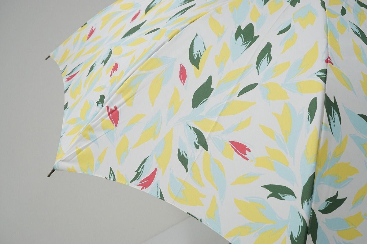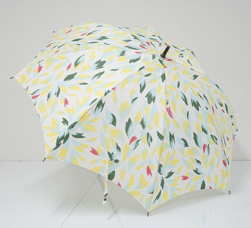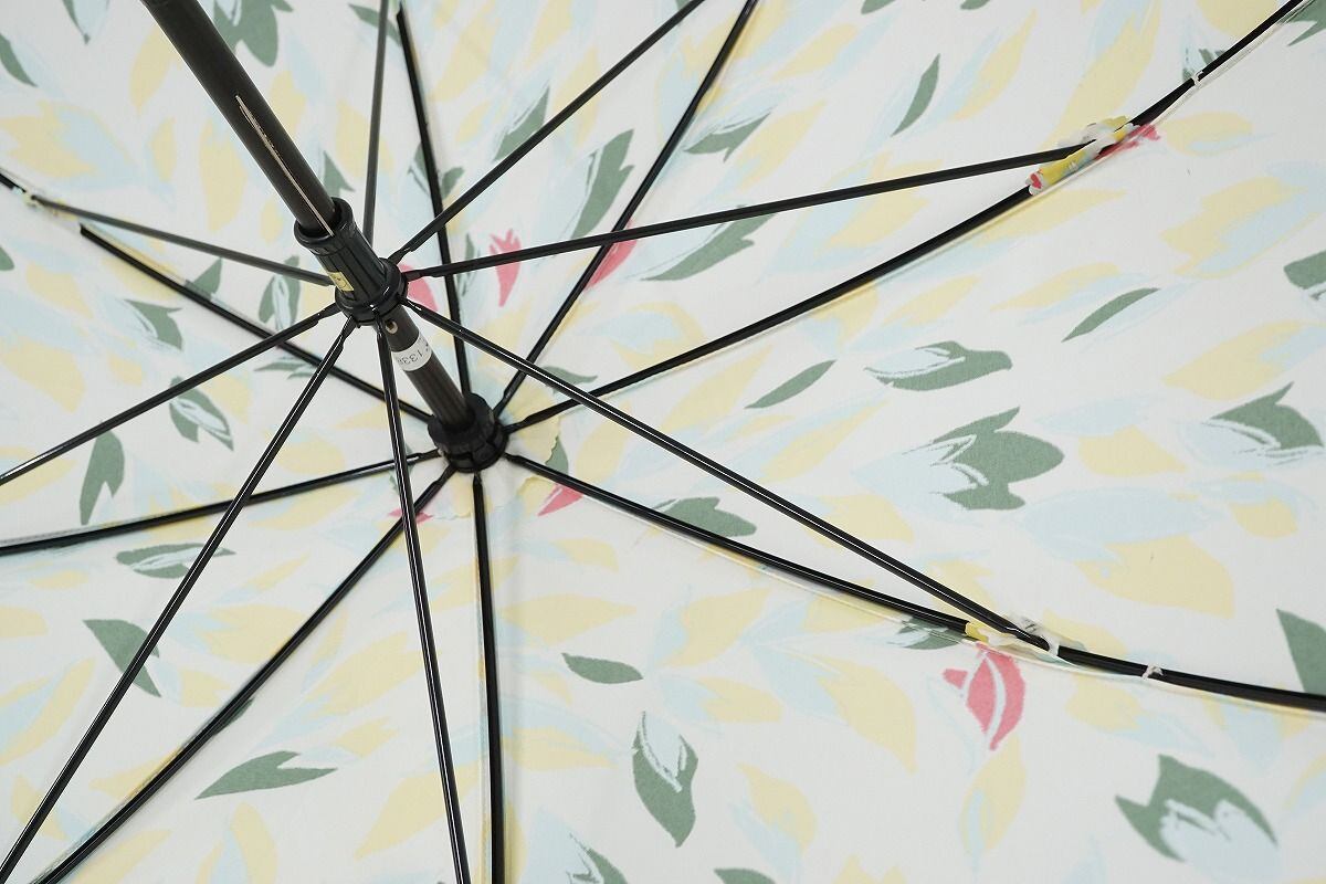 傘 cocca コッカ USED美品 ボタニカル柄 ホワイト×イエロー 55cm S1115
