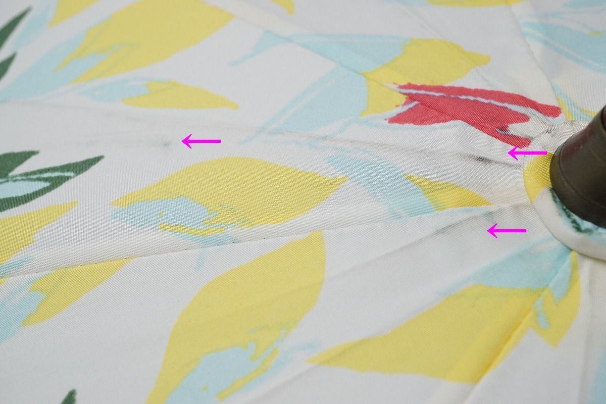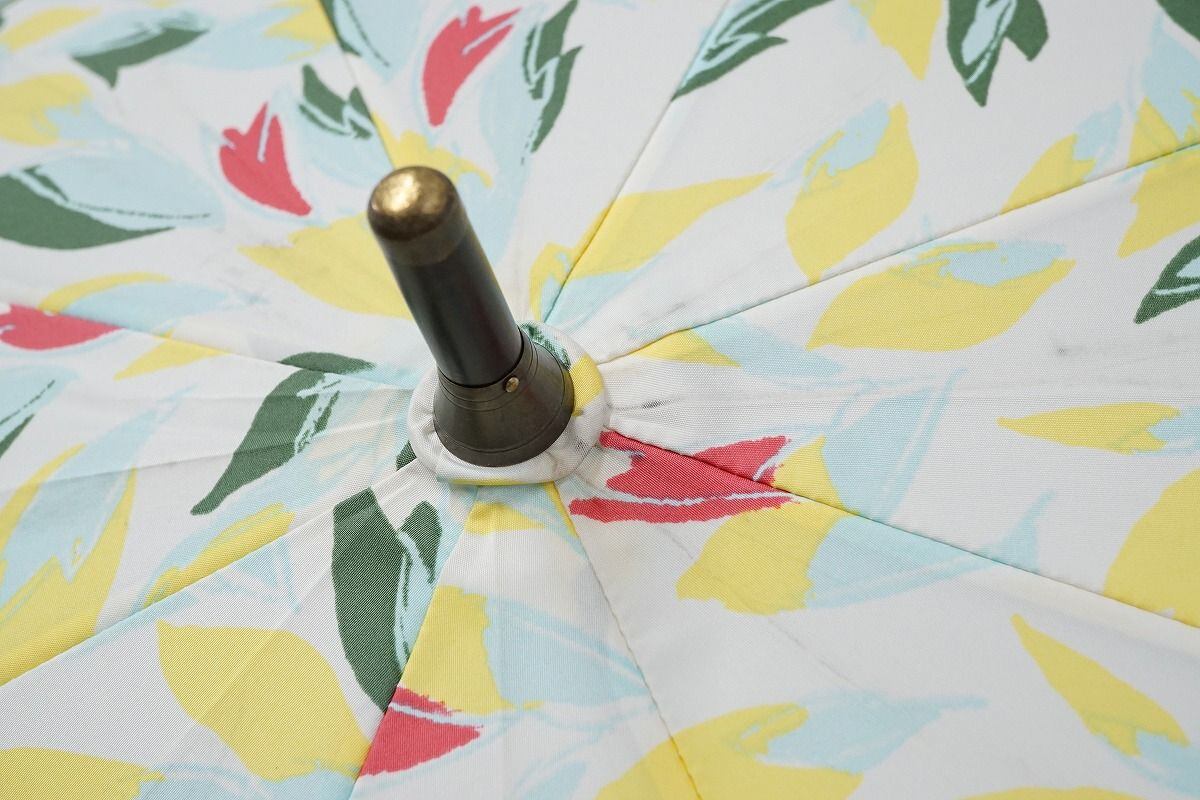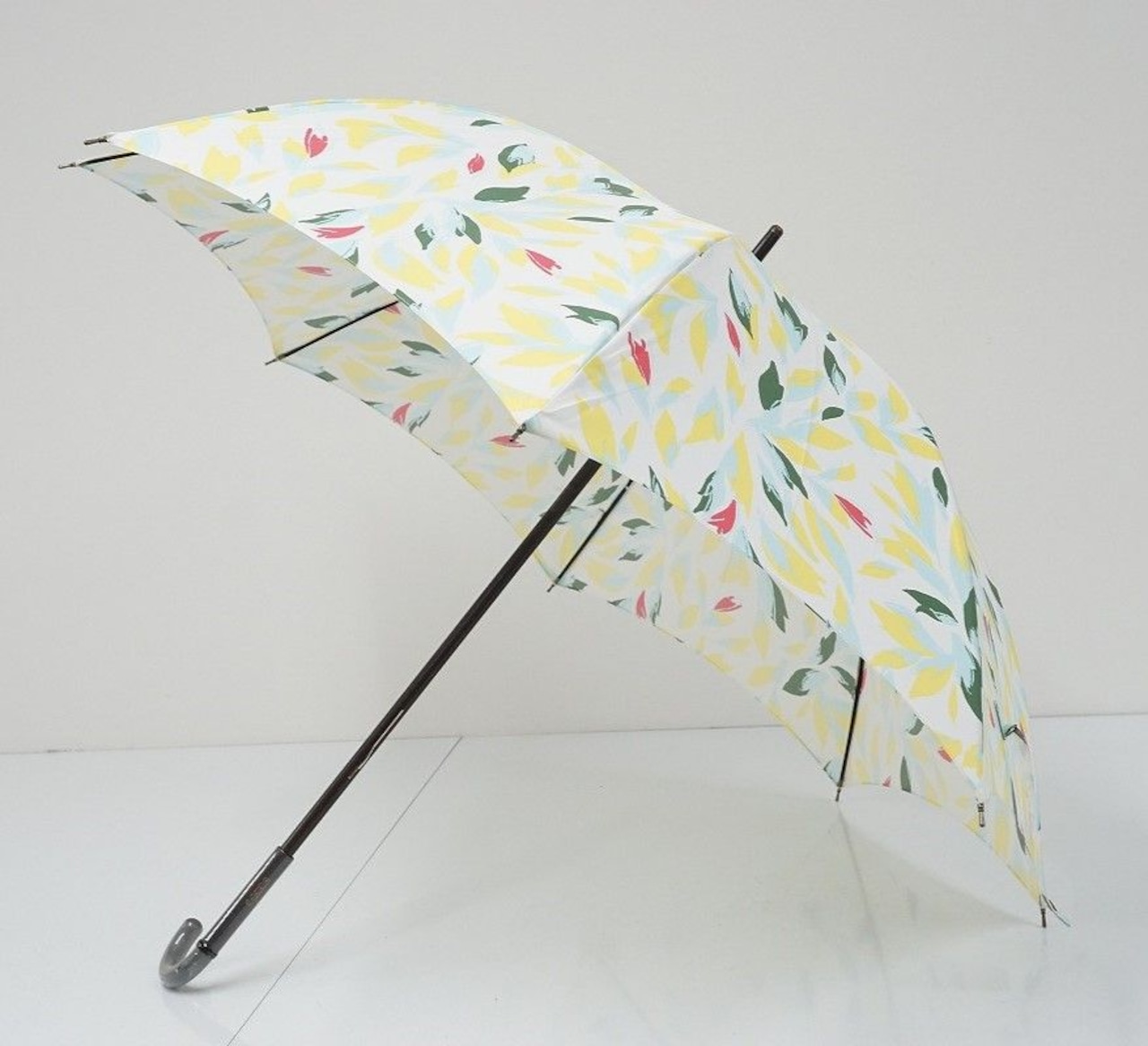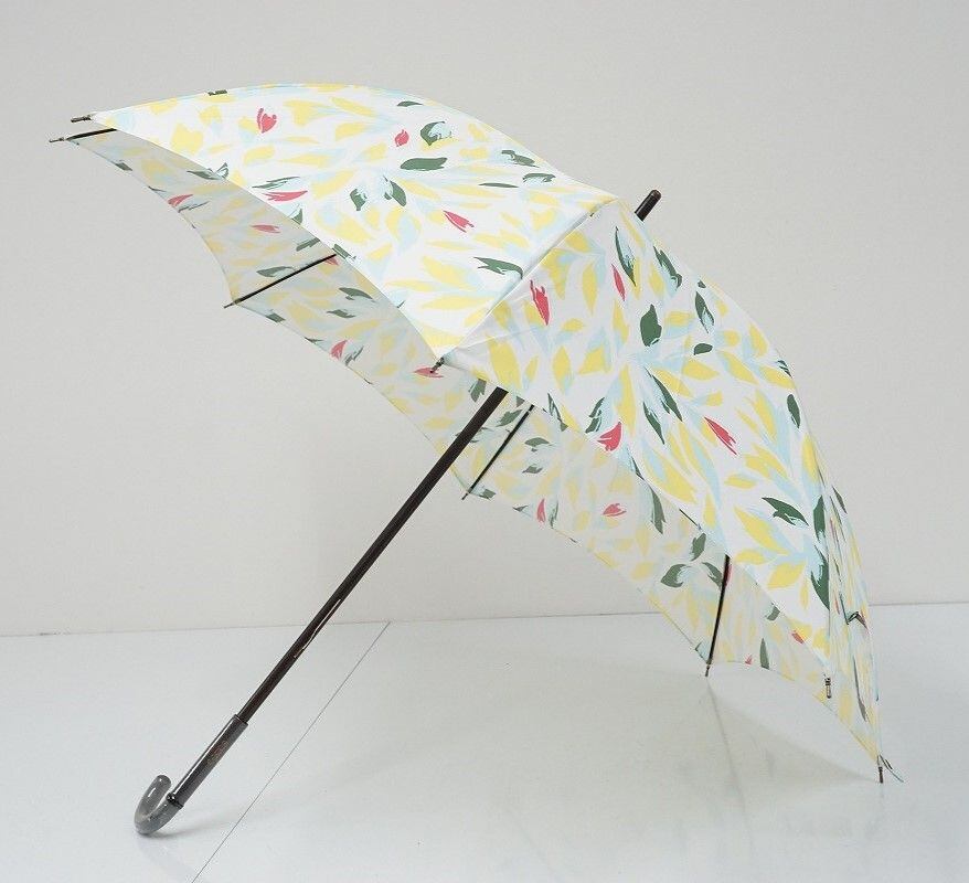 傘 cocca コッカ USED美品 ボタニカル柄 ホワイト×イエロー 55cm S1115