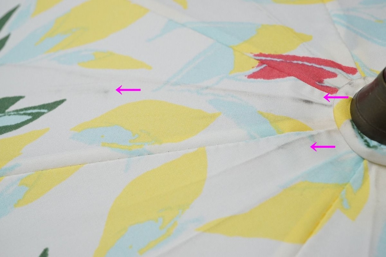 ※生地外側頂点部に黒ずみ汚れがややあります。(実物は若干気になりますが、一部画像にてご確認下さい。)