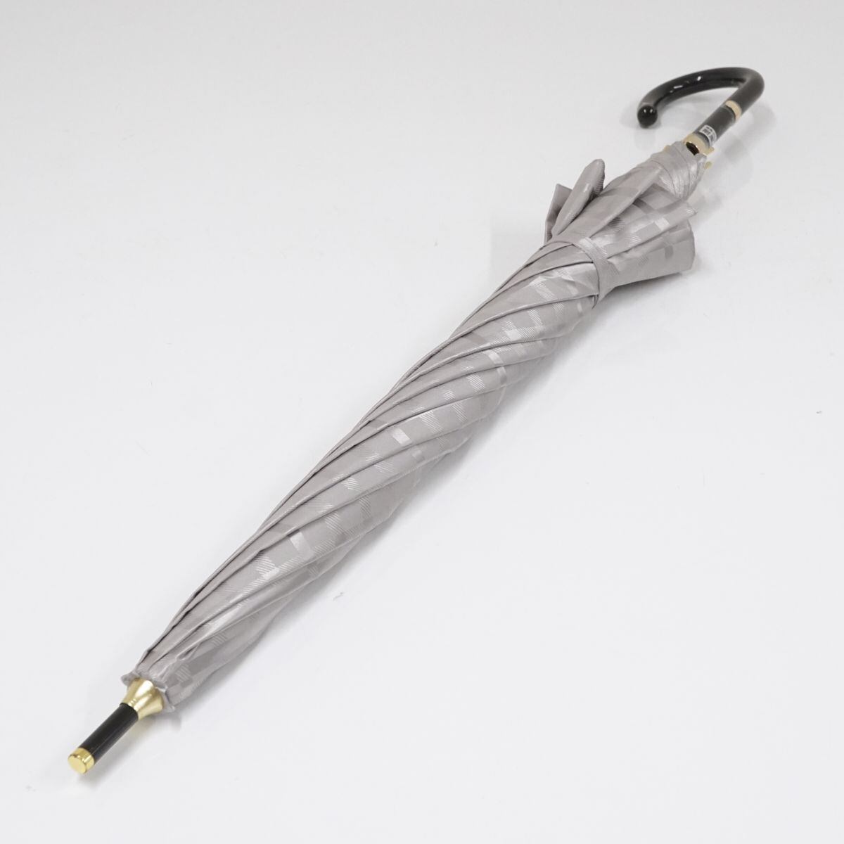 耐風傘 DAKS ダックス USED美品 シルバー ジャガード チェック 高級 ジャンプ 60cm S1138