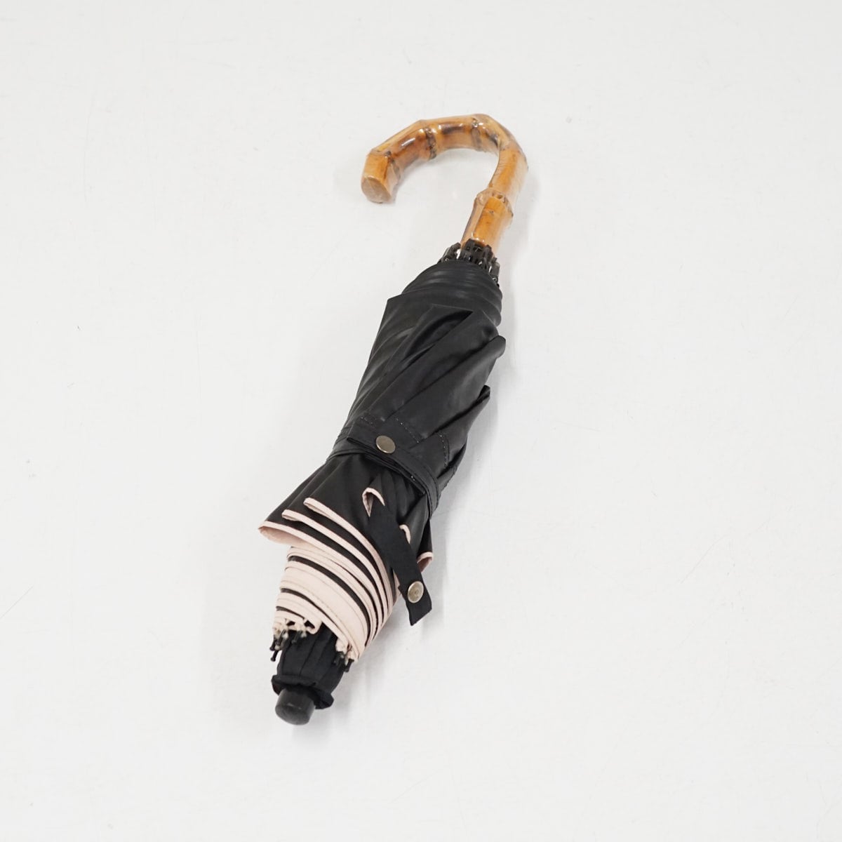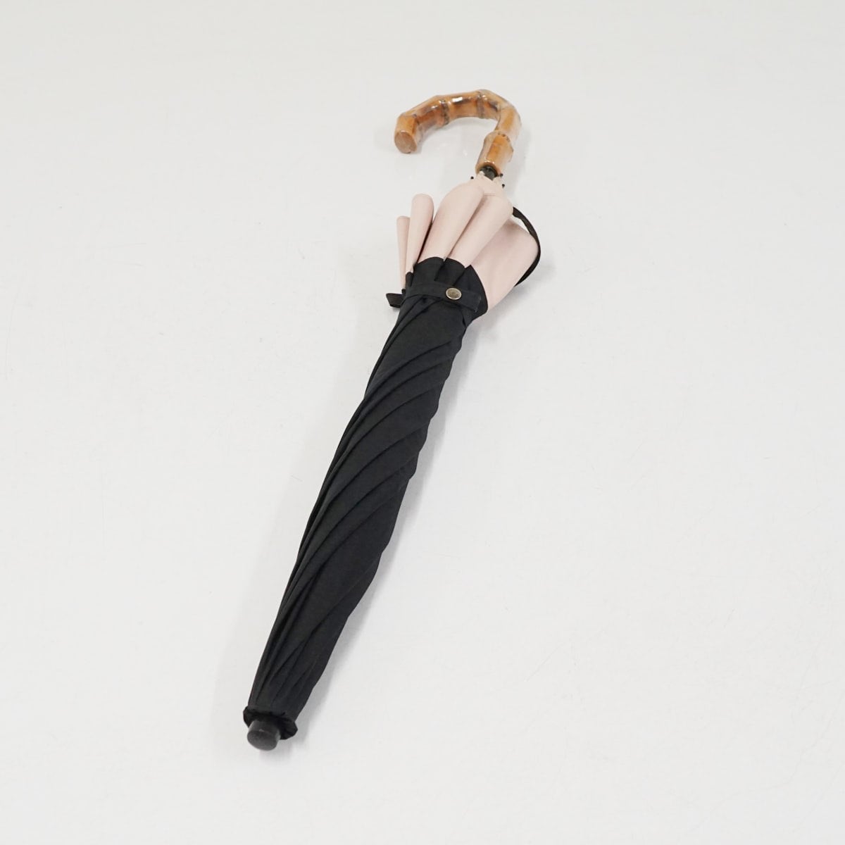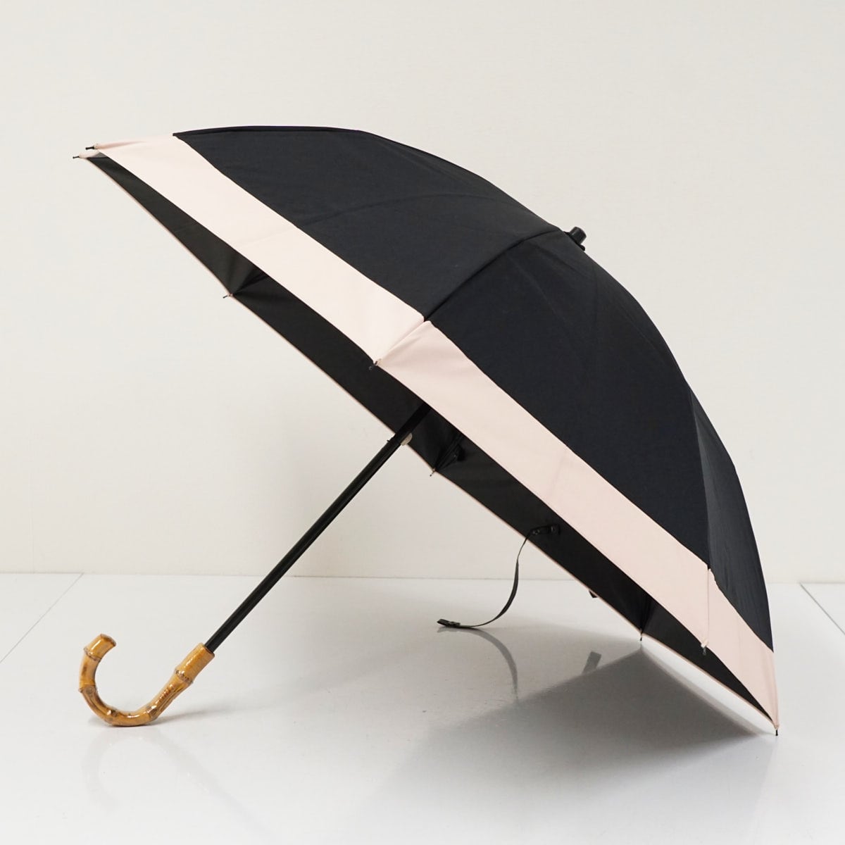 こちらはブラック×ピンクのコンビデザインで、畳みやすく使いやすい2段折タイプです。