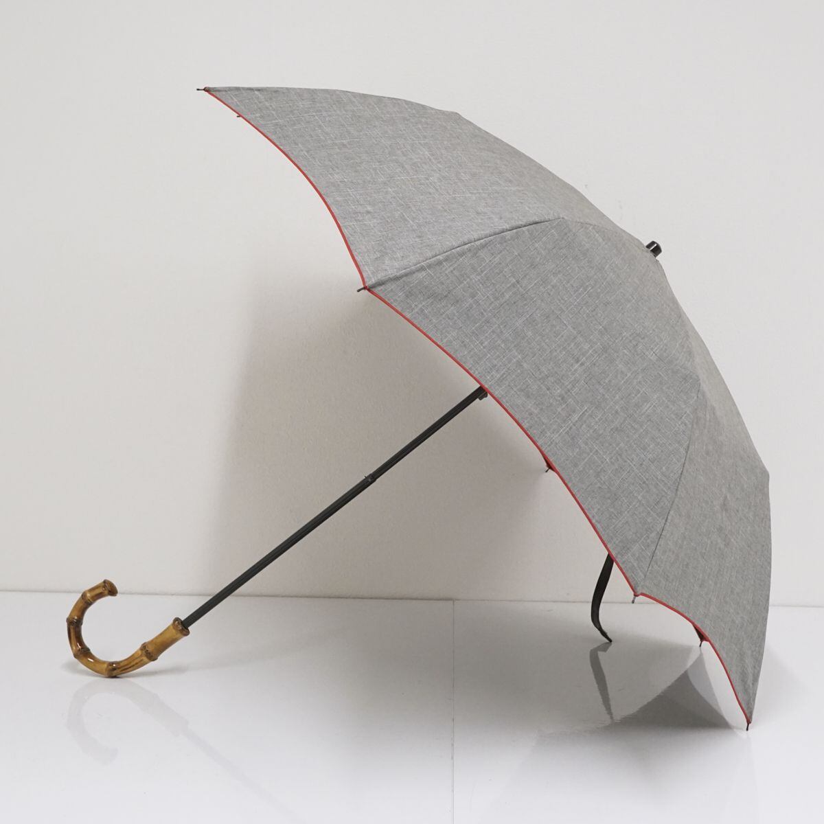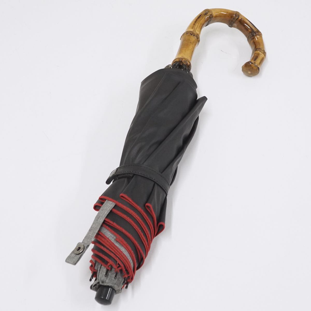 折日傘 芦屋ロサブラン 完全遮光折日傘 USED美品 2段折 ダンガリーグレーXレッド 寒竹手元 UV 遮熱 折りたたみ 50cm FS8514