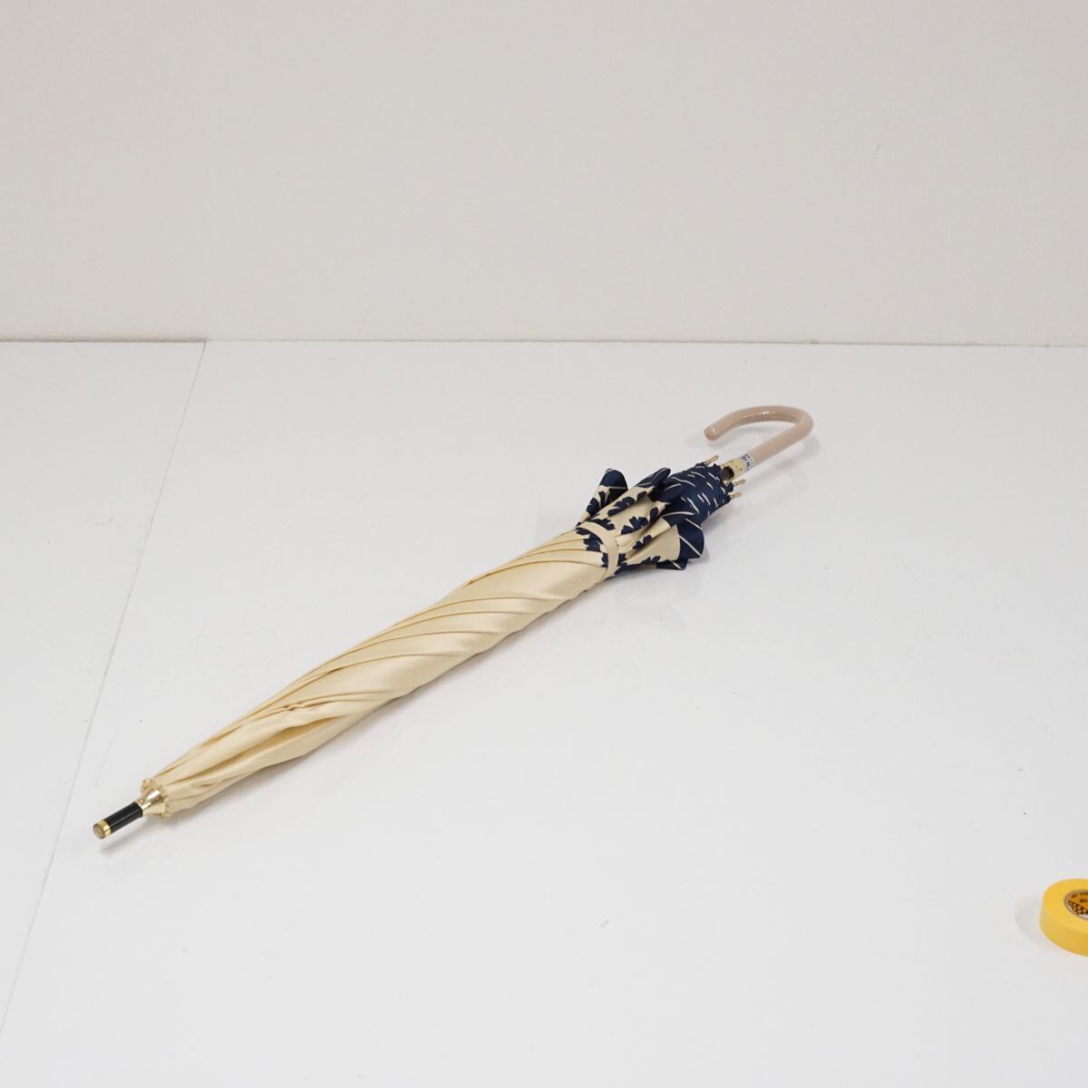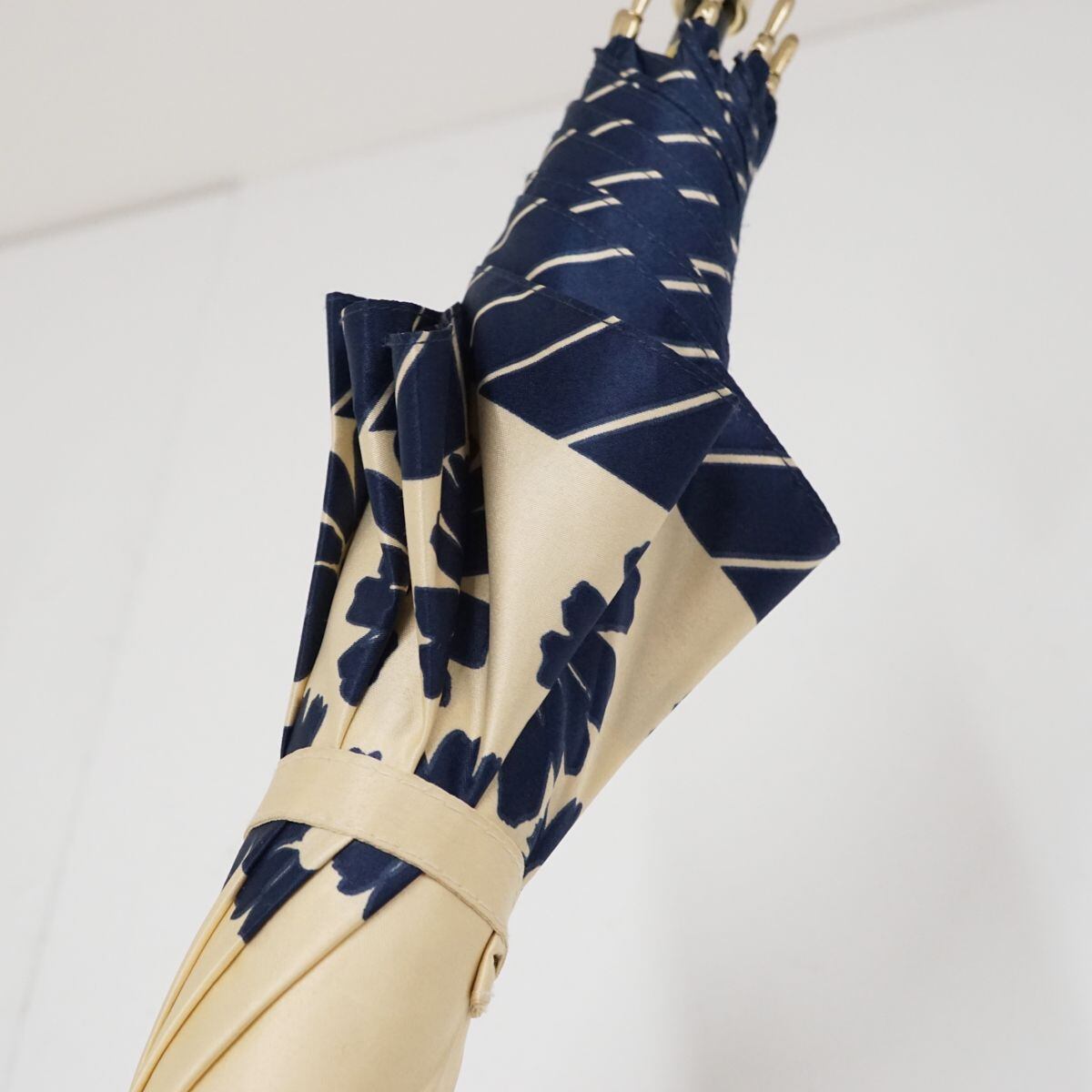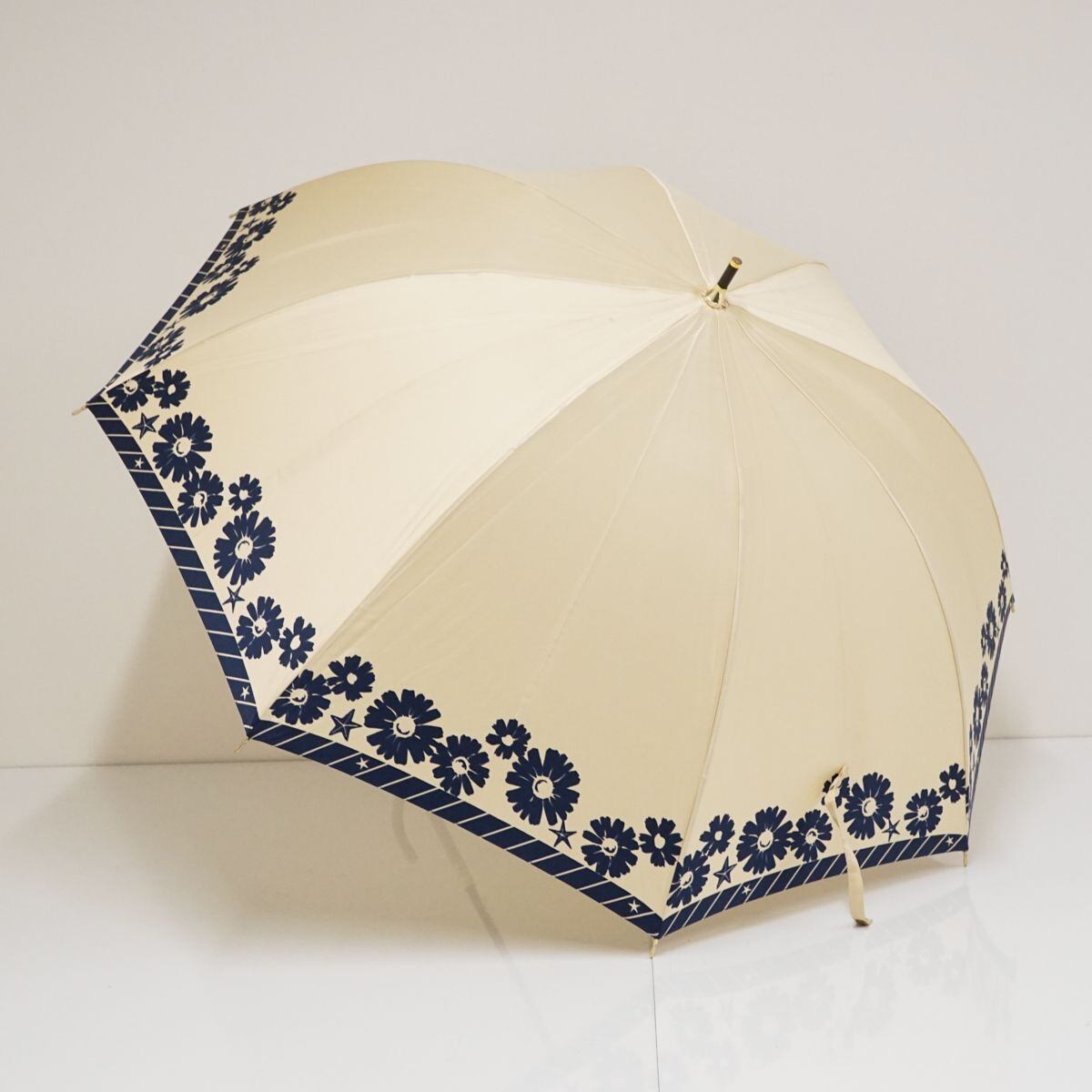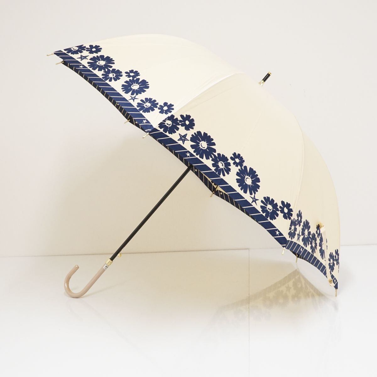 オフホワイト×ネイビーでフラワーシルエットをデザインした「ランバンオンブルー」のアンブレラです。