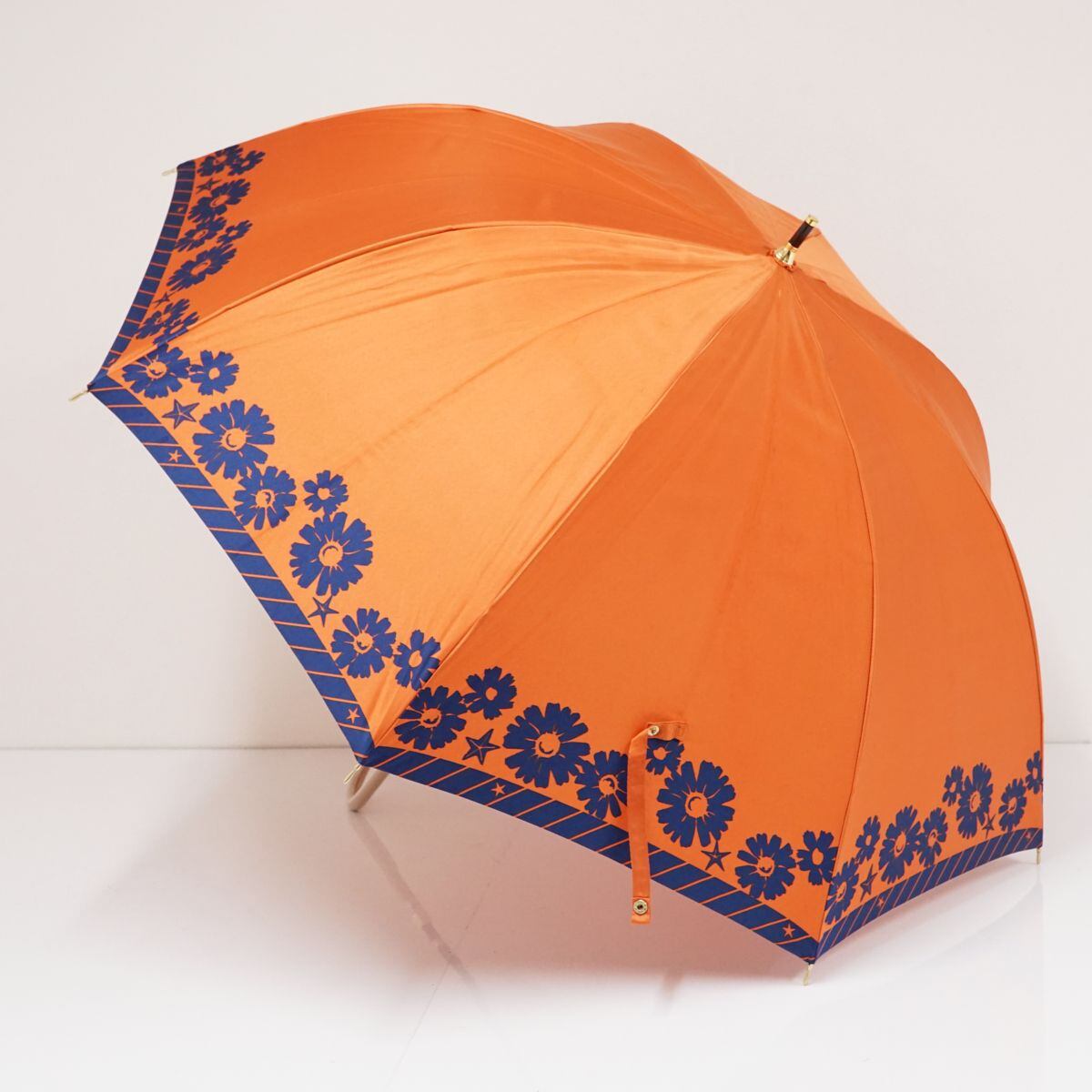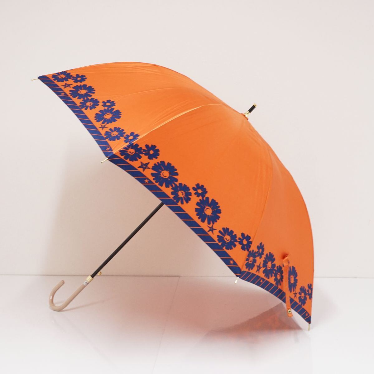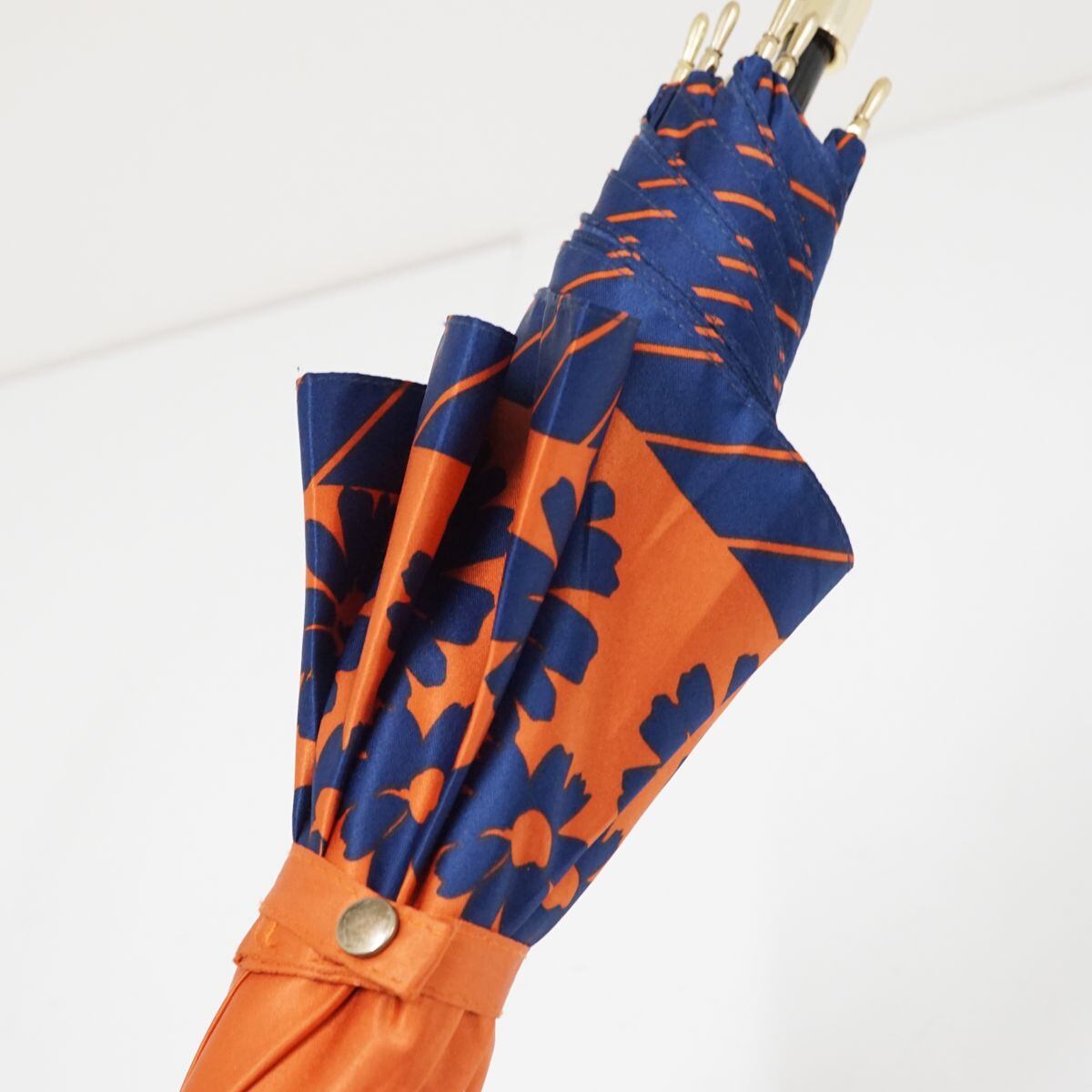オレンジ×ネイビーでフラワーシルエットをデザインした「ランバンオンブルー」のアンブレラです。