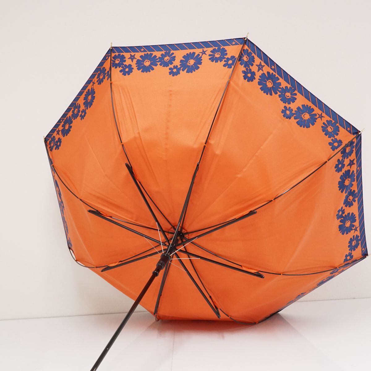 傘 LANVIN en Bleu ランバンオンブルー USED美品 フラワー エレガント オレンジ×ネイビー 耐風 ジャンプ 60cm A1144