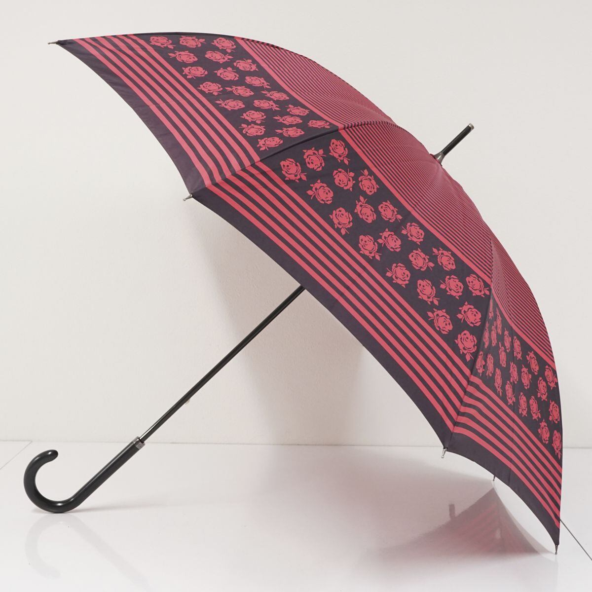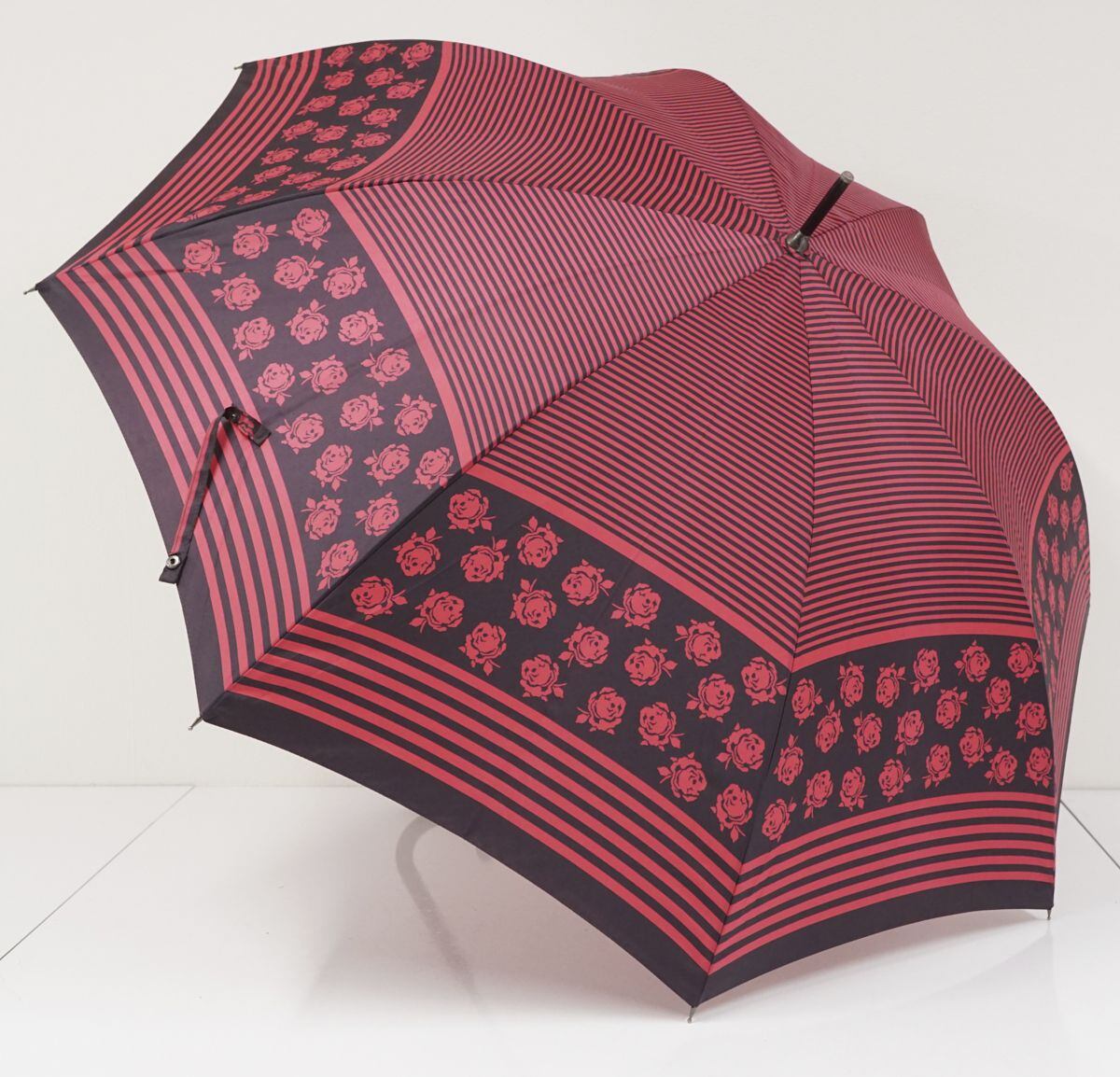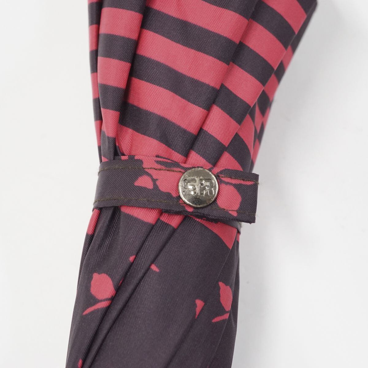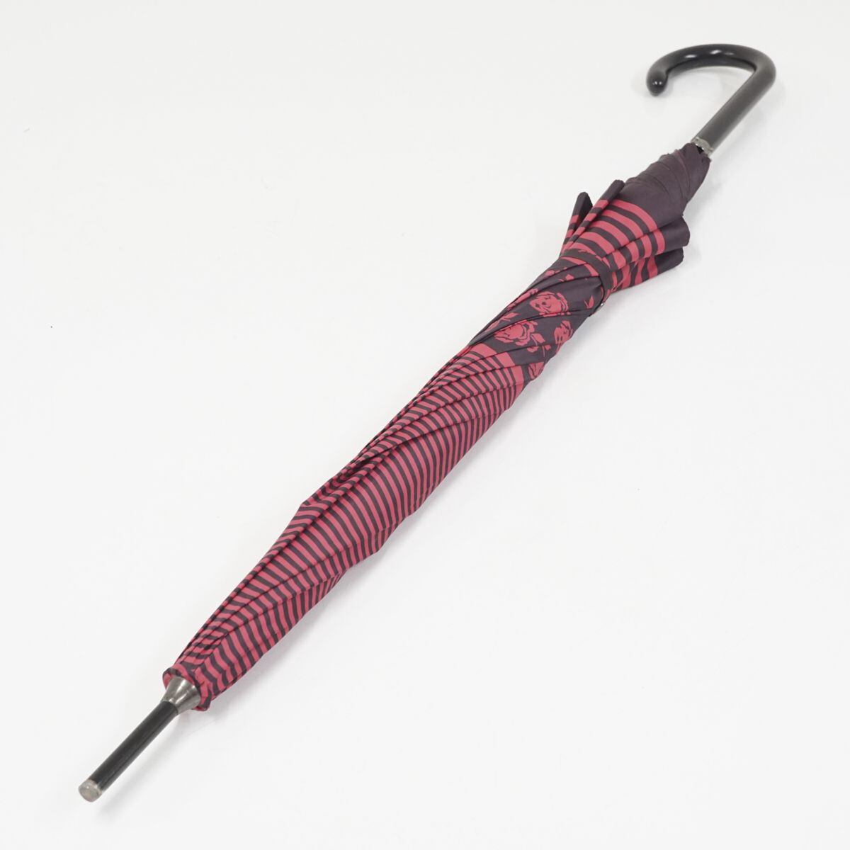 傘 SONIA RYKIEL ソニアリキエル USED美品 マゼンタ ボーダー ローズ グラス骨 60cm A1139