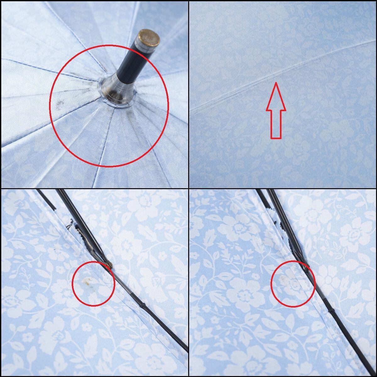 耐風傘 NINA RICCI ニナリッチ USED品 フラワープリント 花 グラスファイバーフレーム 水色 ジャンプ傘 60cm A1158