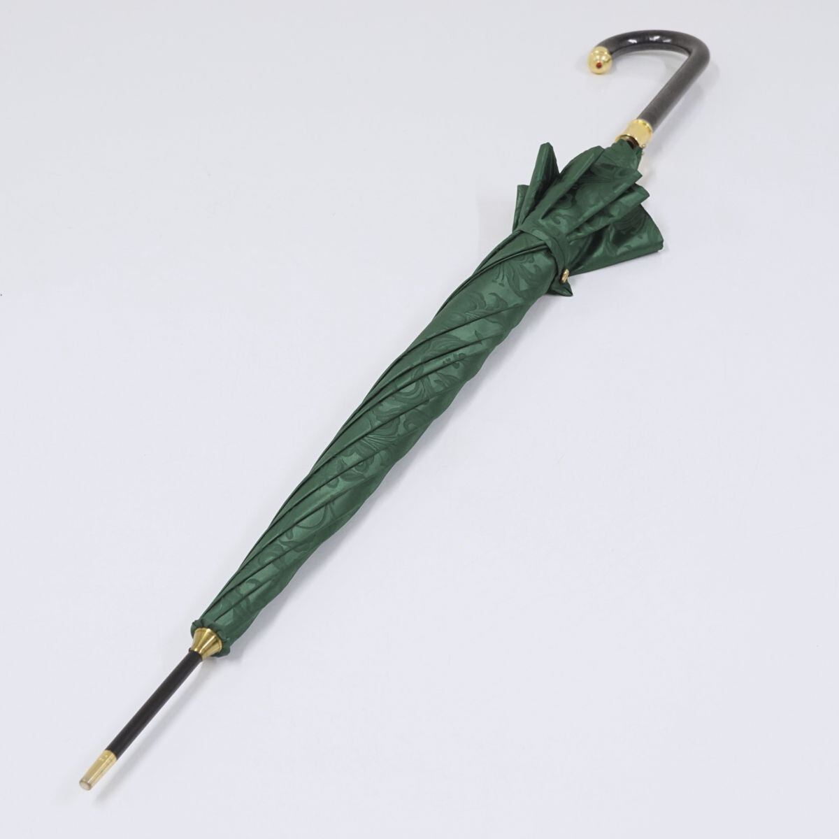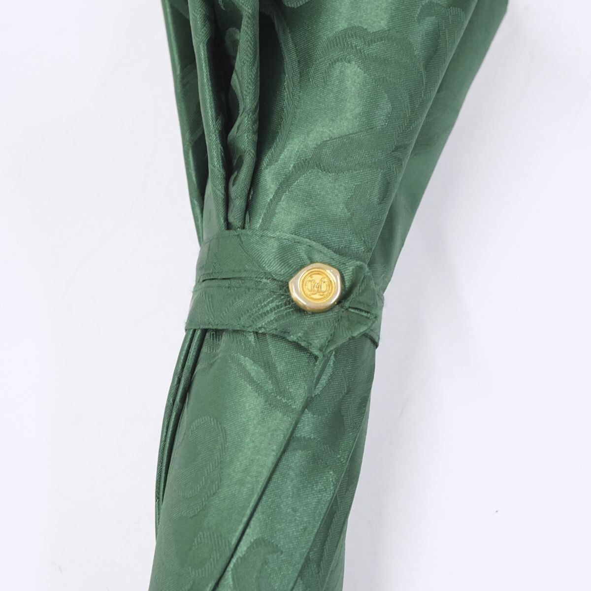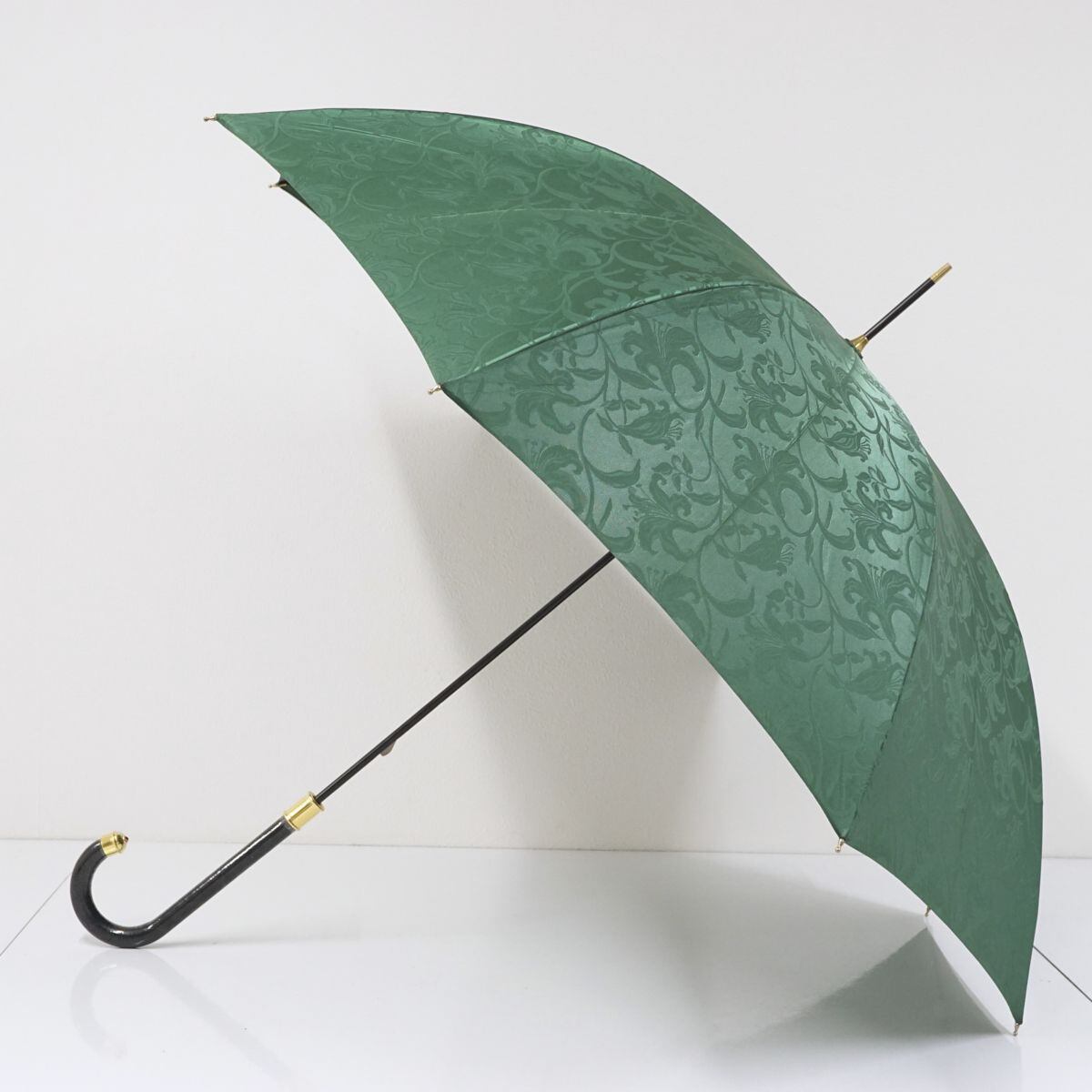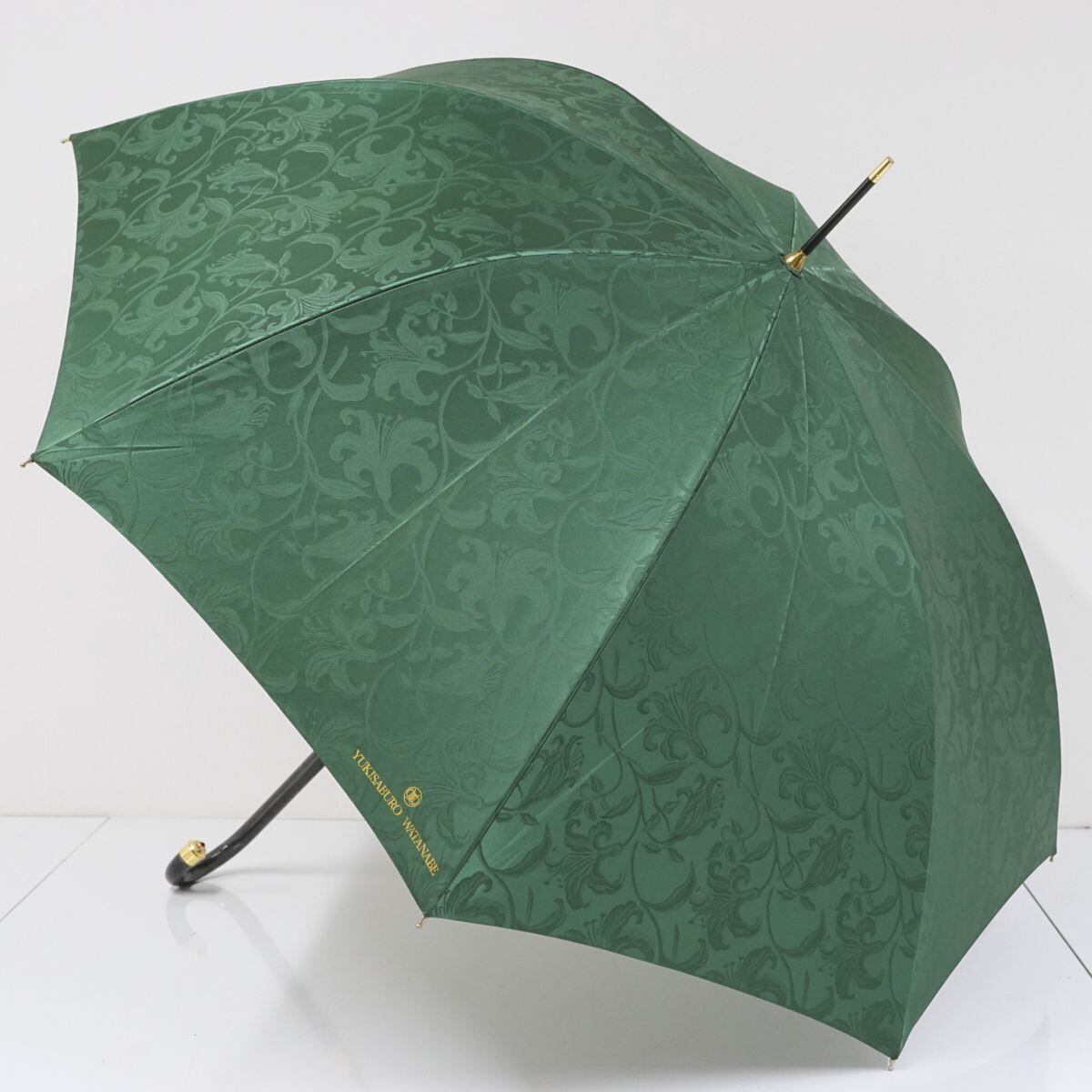 傘 YUKISABURO WATANABE 渡辺雪三郎 USED美品 ジャカード グリーン 花 ロゴ ブランド 60cm S1161