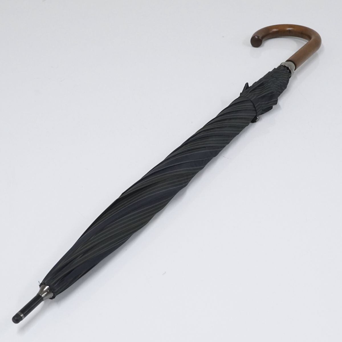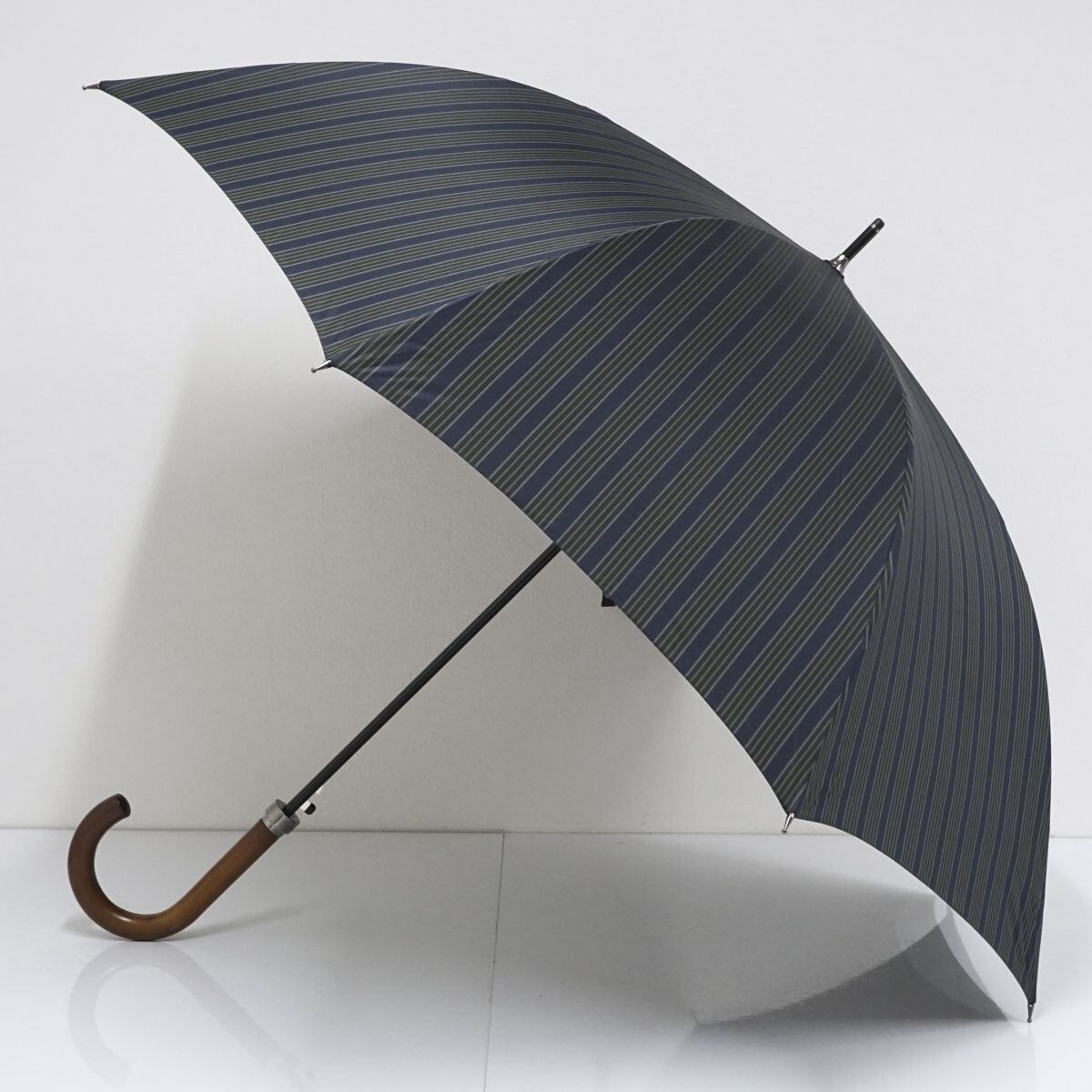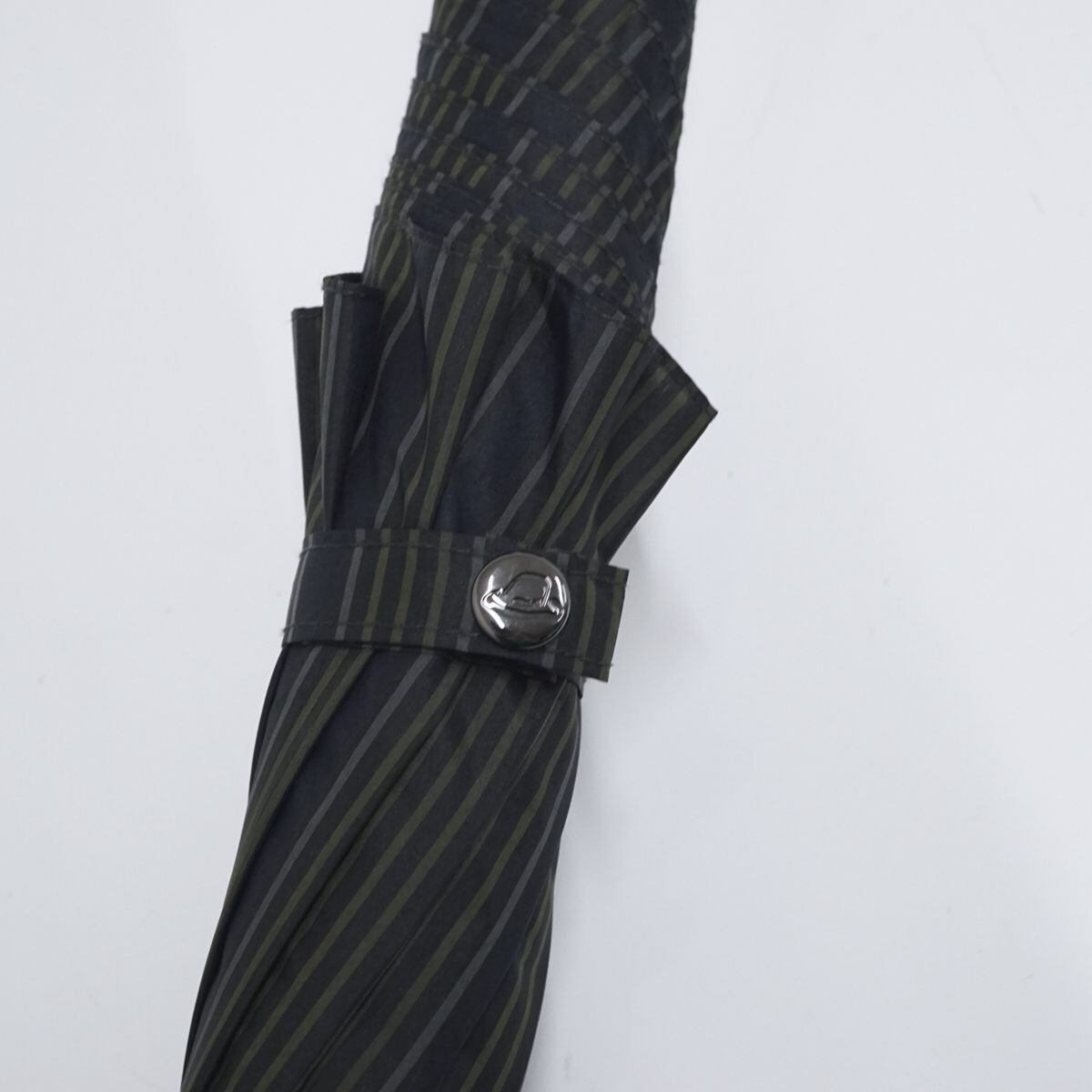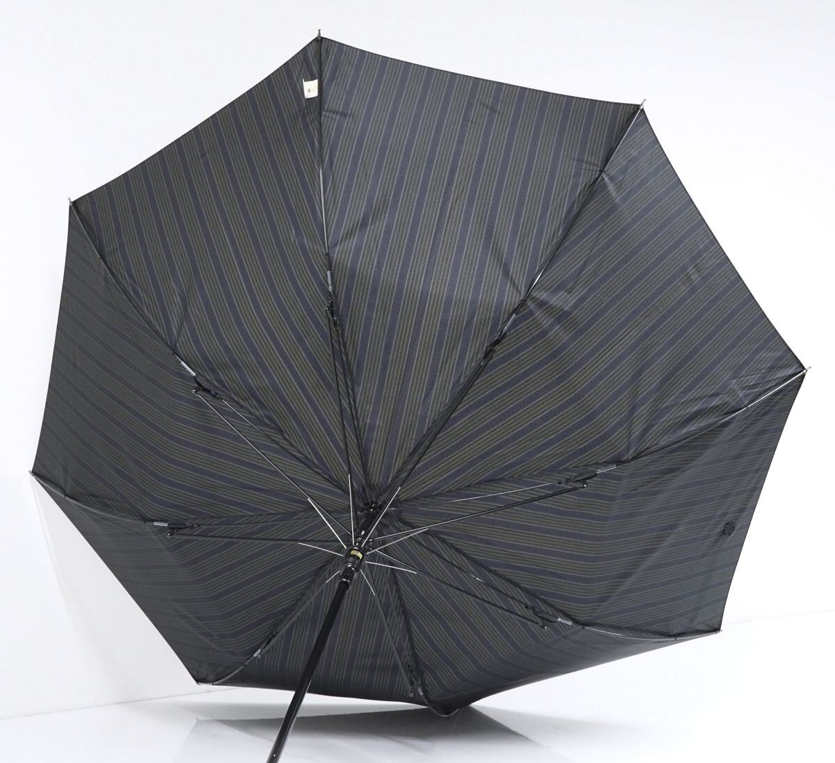 紳士傘 Borsalino ボルサリーノ USED美品 ブラック ストライプ グラス骨 大判 ブランド ジャンプ傘 65cm A1178
