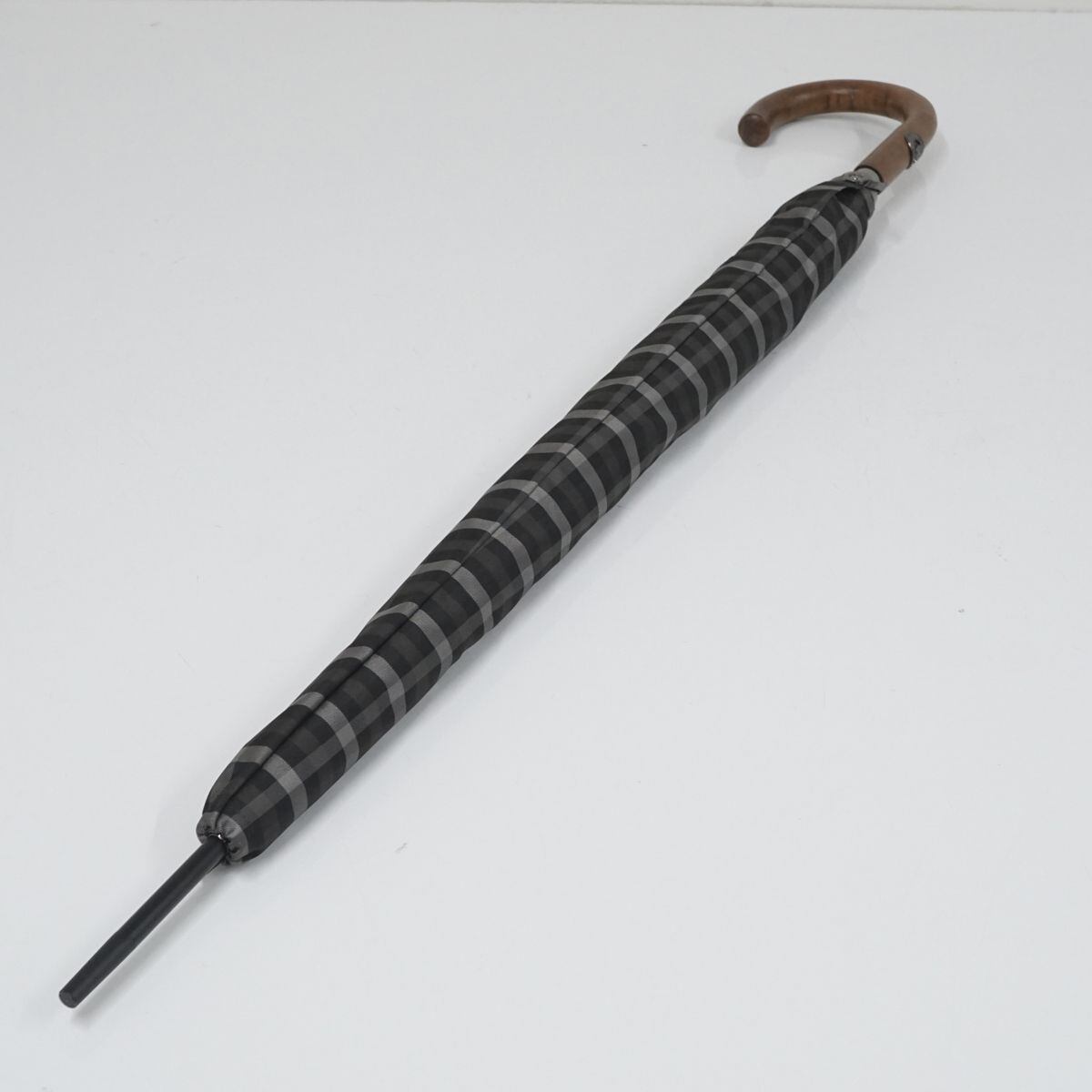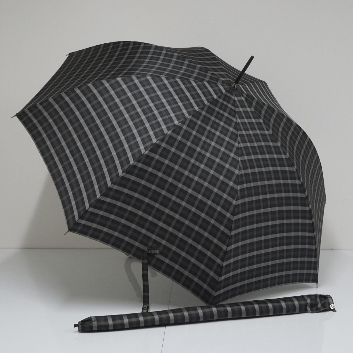 Aquascutum アクアスキュータム 傘 USED超美品 紳士傘 ブラック グレー チェック ジャンプ 大判 65cm A1173