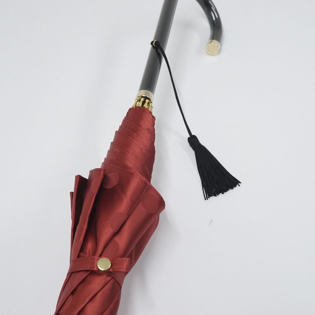 傘 AURORA オーロラ USED美品 日本製 レッド タッセル付き ドット 60cm A1174