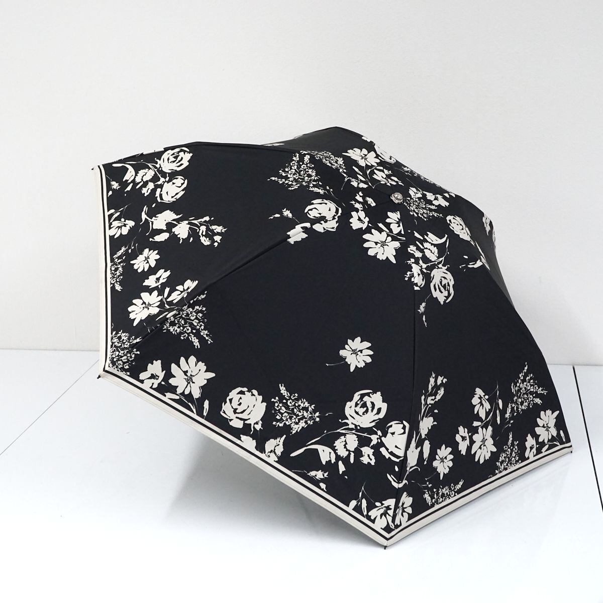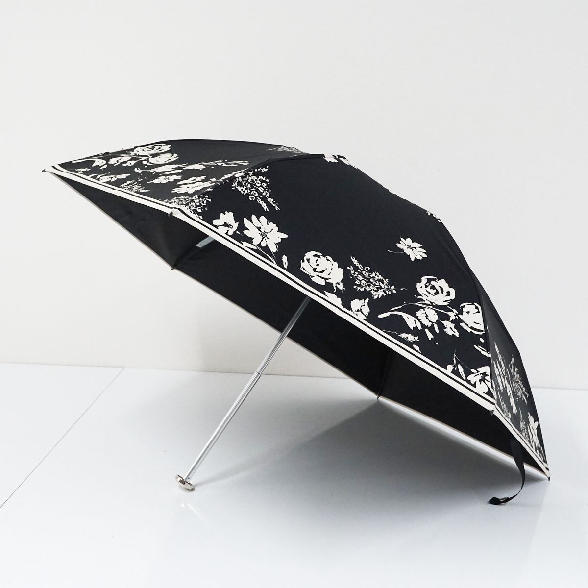 折りたたみ日傘 Aquascutum USED品 サマーシールドLi アクアスキュータム 遮光 遮熱 UV 高機能日傘 ブラック 花柄 50cm FA8530