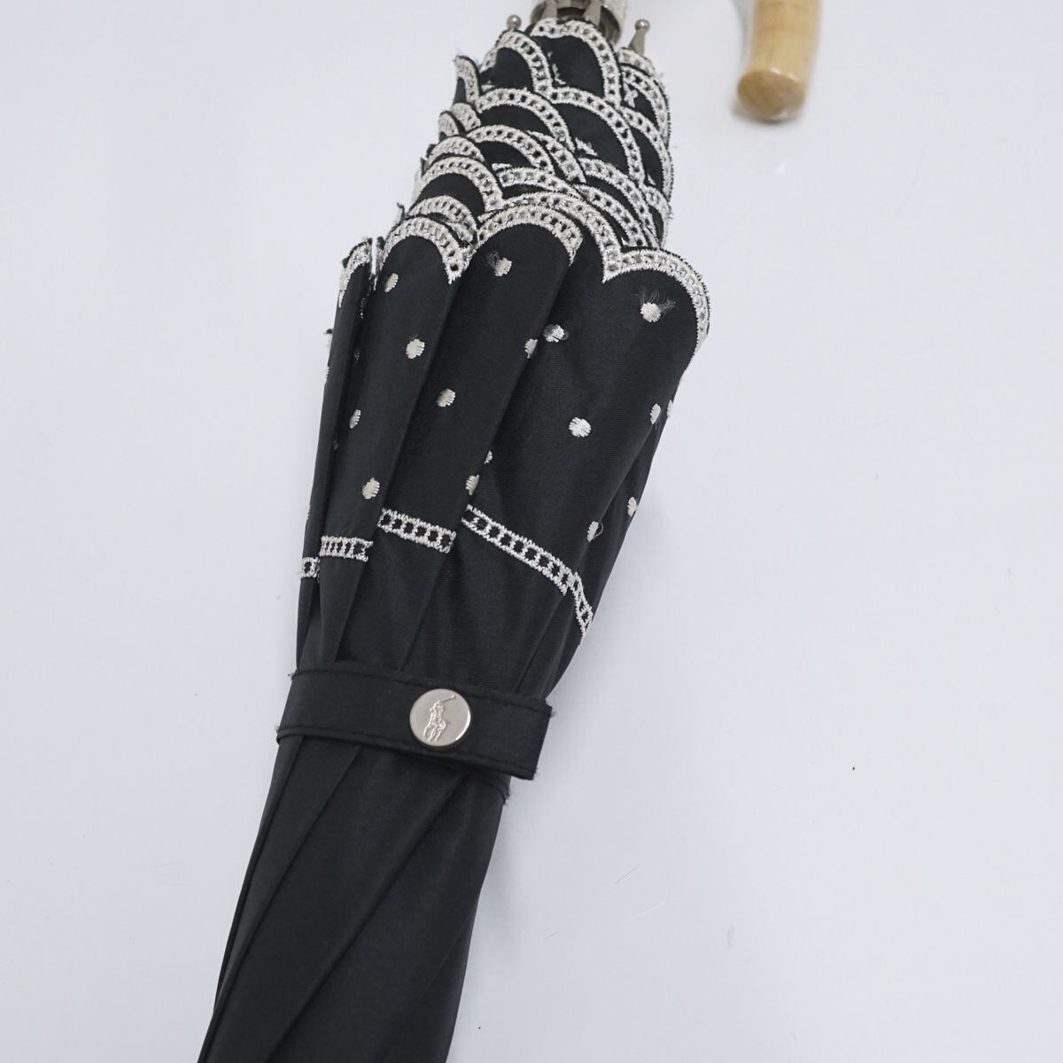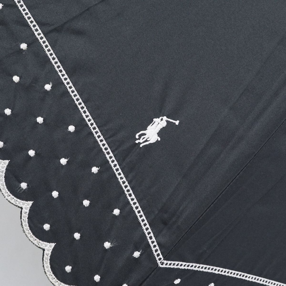 POLO RALPH LAUREN 晴雨兼用日傘 USED美品 ポロラルフローレン ポニー刺繍 スカラップ プチドット ブラック UV 遮光 47cm A1182
