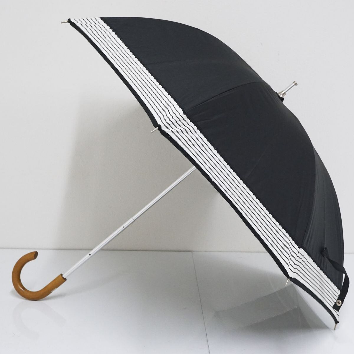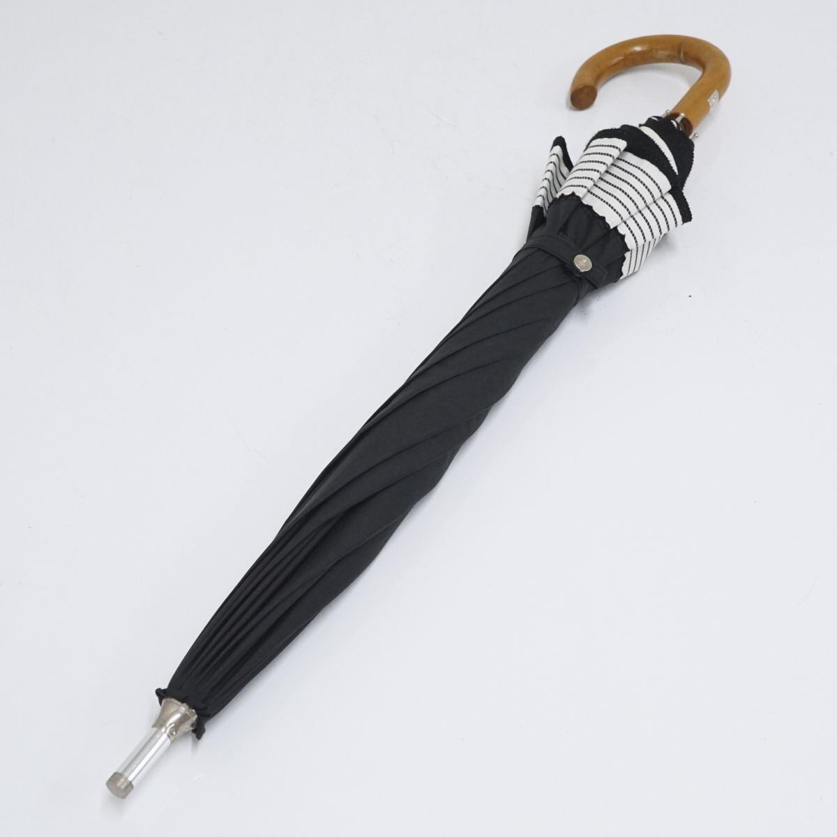 ブラックの生地に縁のボーダー生地がおしゃれなラルフローレンのパラソルです。