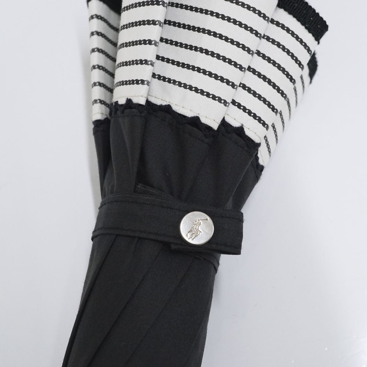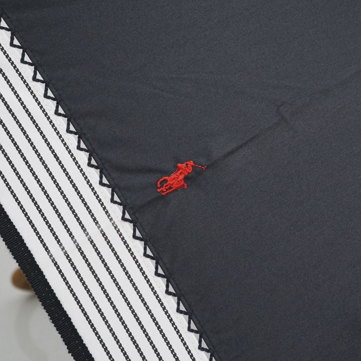 POLO RALPH LAUREN 晴雨兼用日傘 USED美品 ポロラルフローレン ポニー刺繍 ボーダー ブラック UV 遮光 47cm A1184