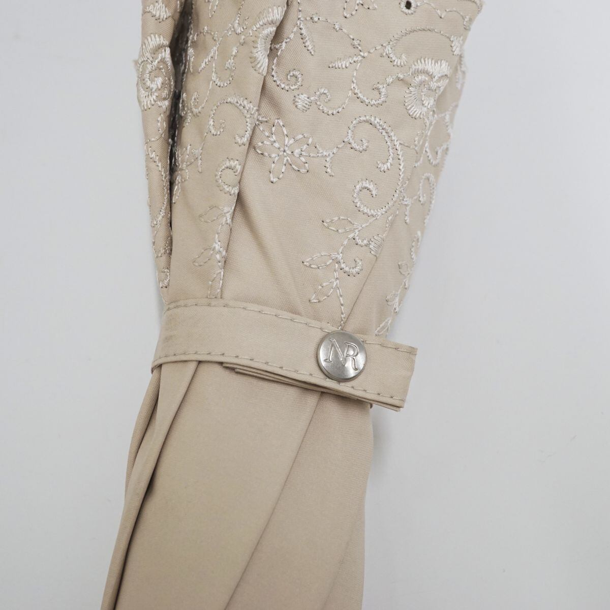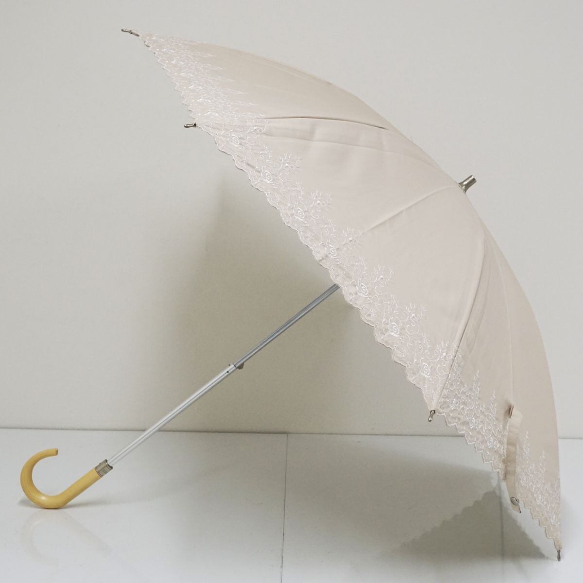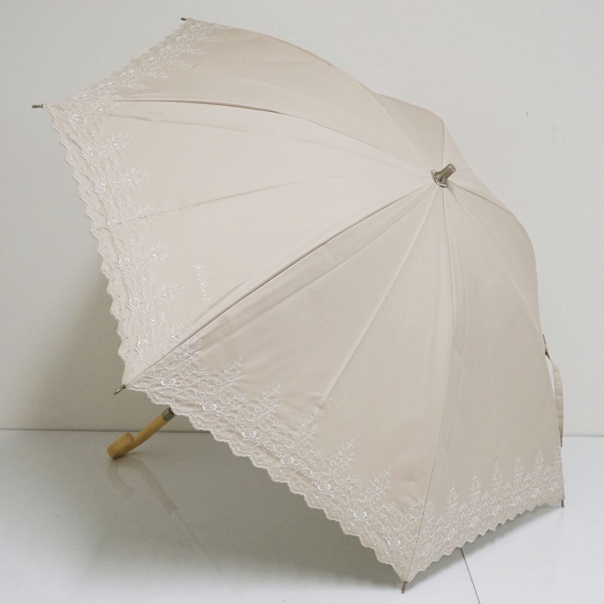 日傘 NINA RICCI ニナリッチ USED美品 ライトベージュ ロゴ すそ刺繍 遮光 遮熱 UV 晴雨兼用 50cm A1183